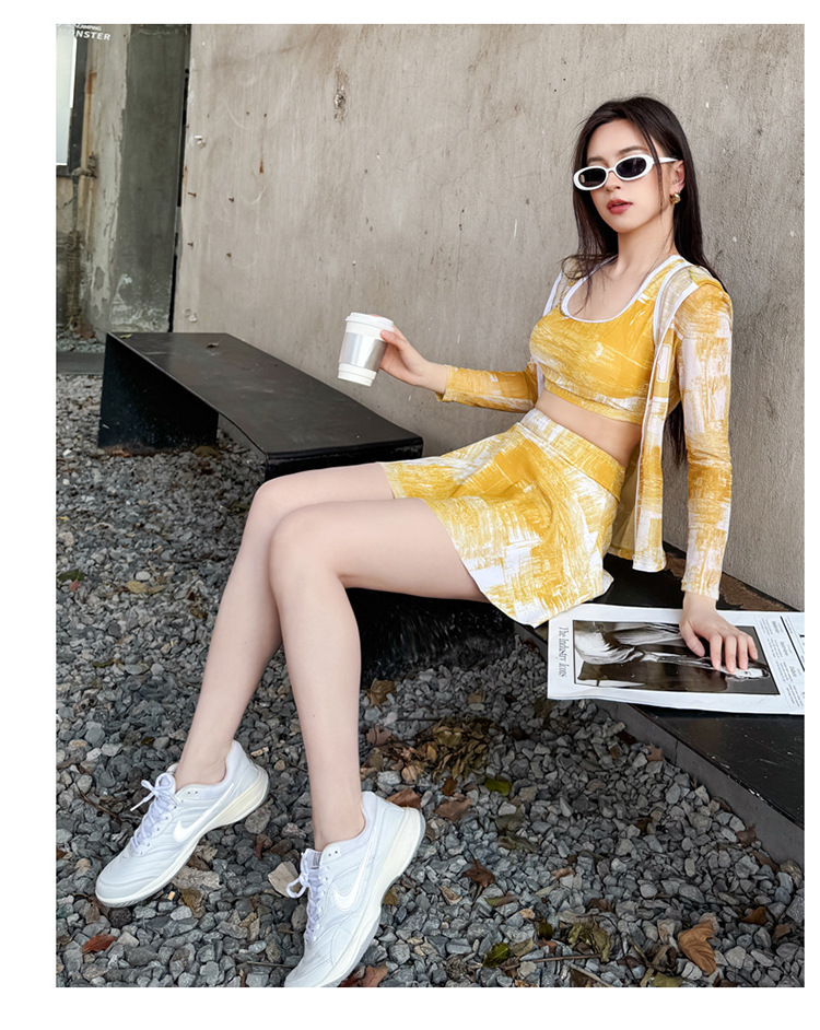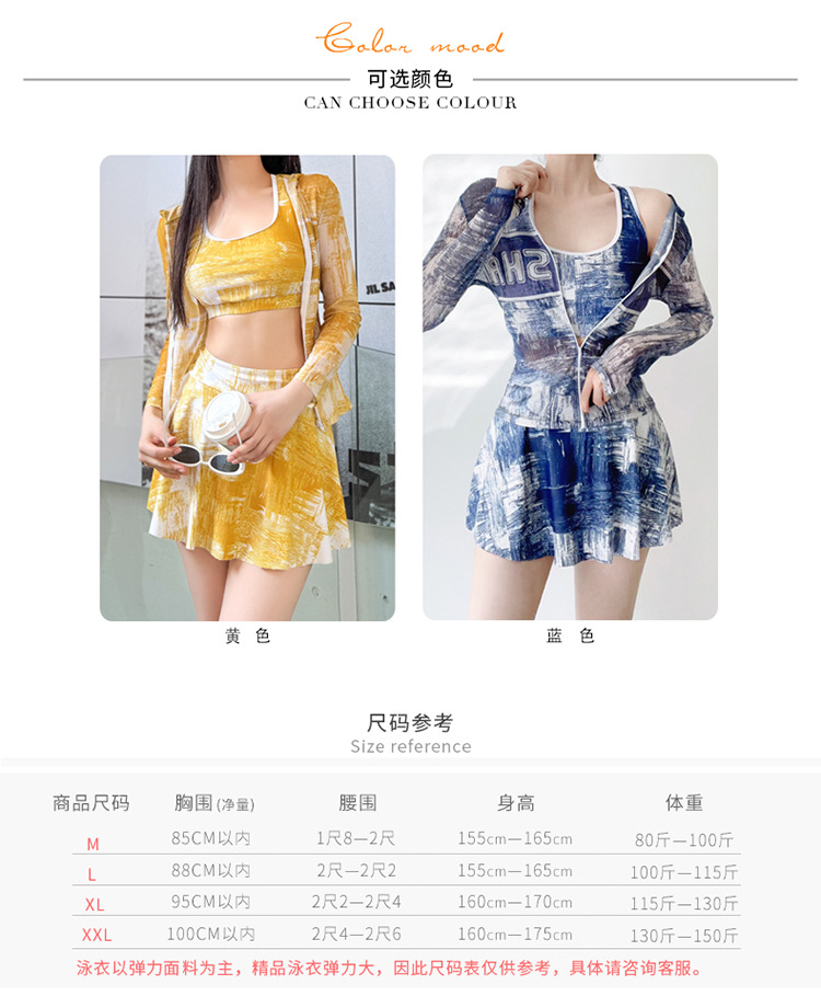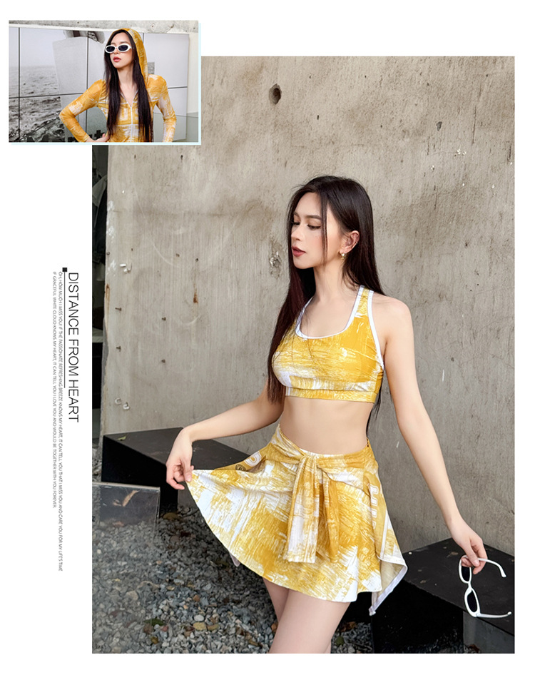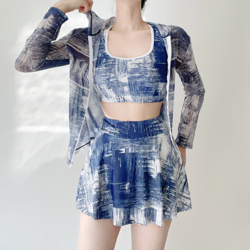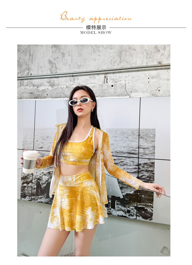 2025 새로운 수영복 여성 스플릿 스커트 블라우스 보수적 인 태양 보호 운동복 3 피스 세트 슬림 배 덮음 온천스토어 가기