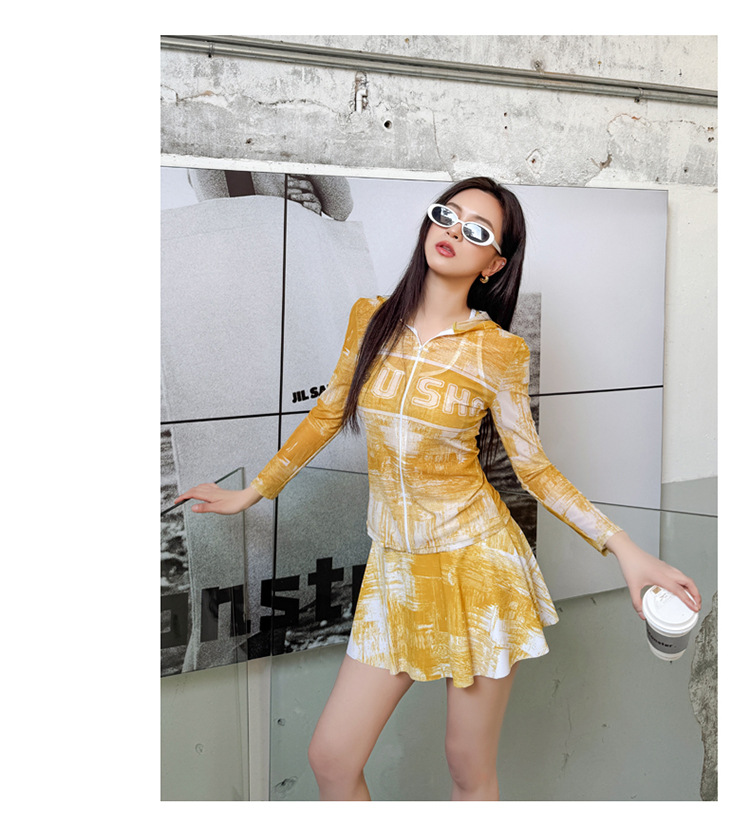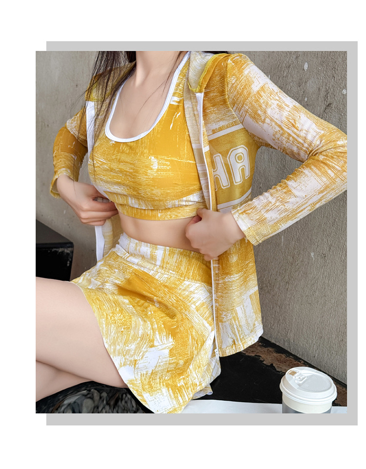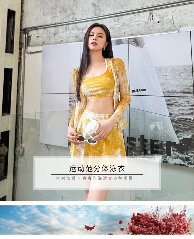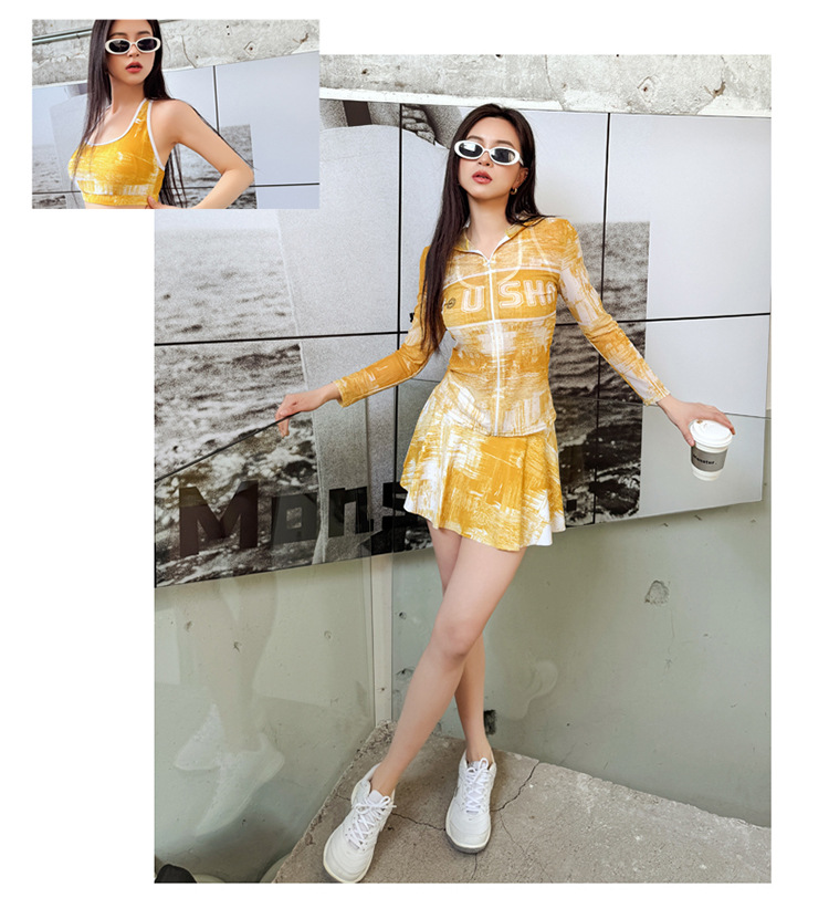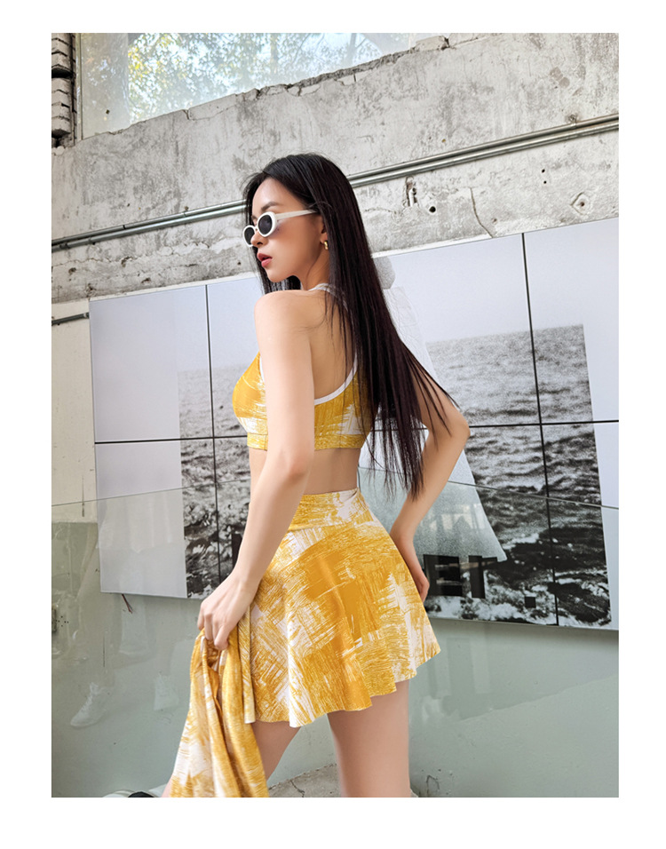 2025 새로운 수영복 여성 스플릿 스커트 블라우스 보수적 인 태양 보호 운동복 3 피스 세트 슬림 배 덮음 온천스토어 가기