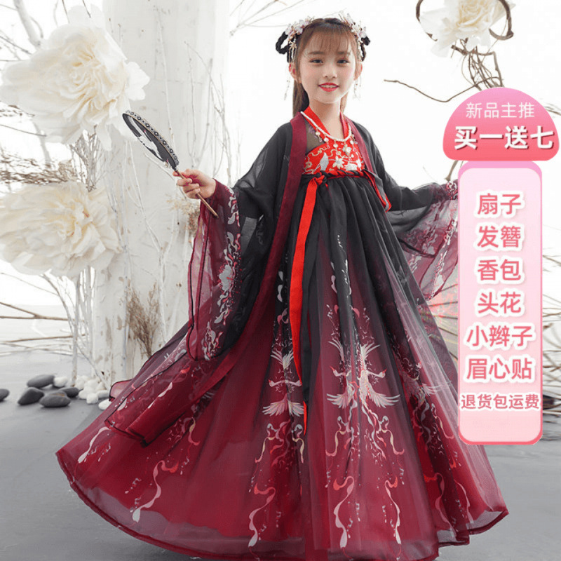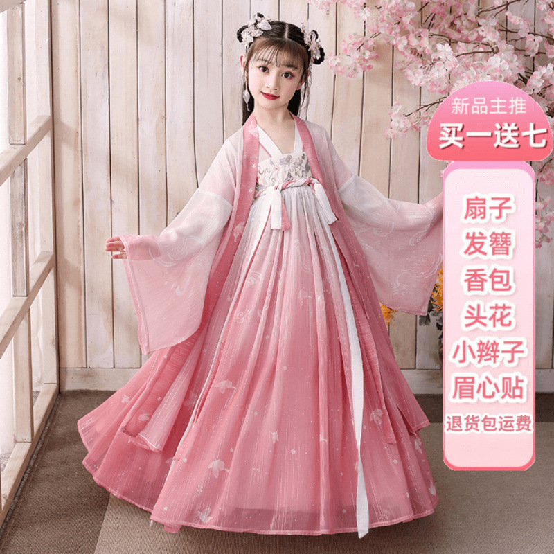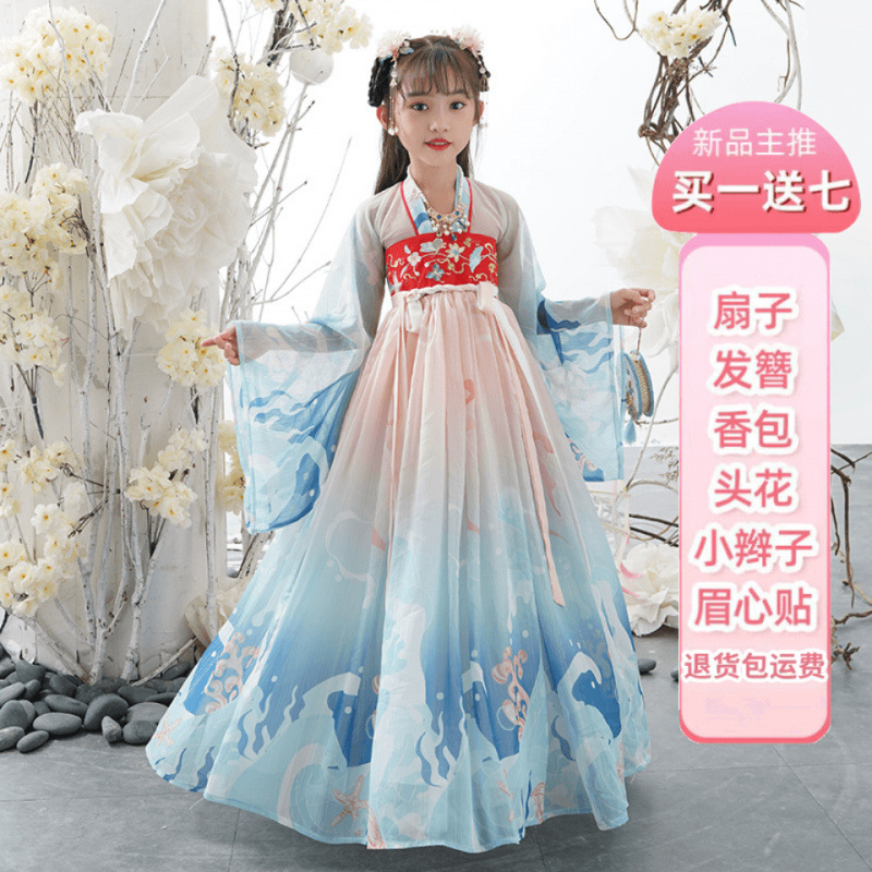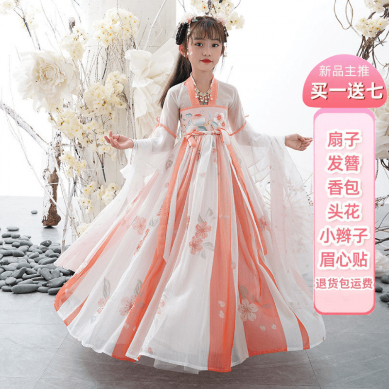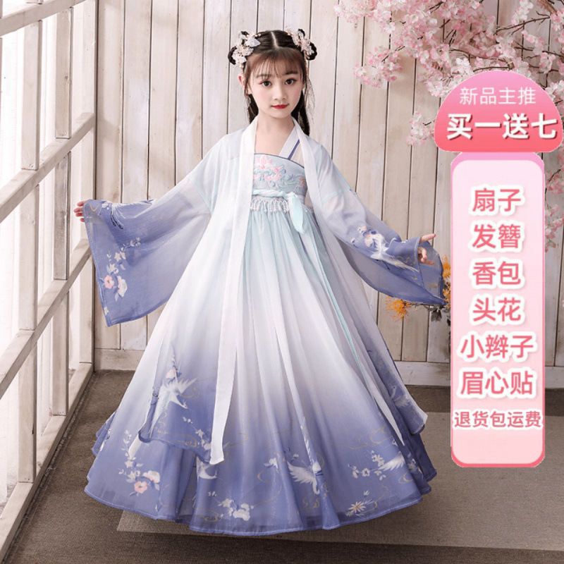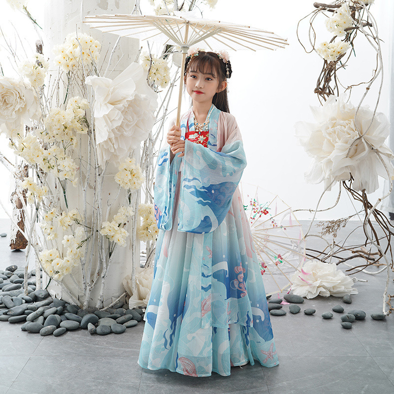 여아용 한복, 봄, 가을 의상, 슈퍼 요정, 큰 소매 셔츠, 중국 스타일, 여아용 고대 스타일, 여름 스타일, 어린이용 고급 한복