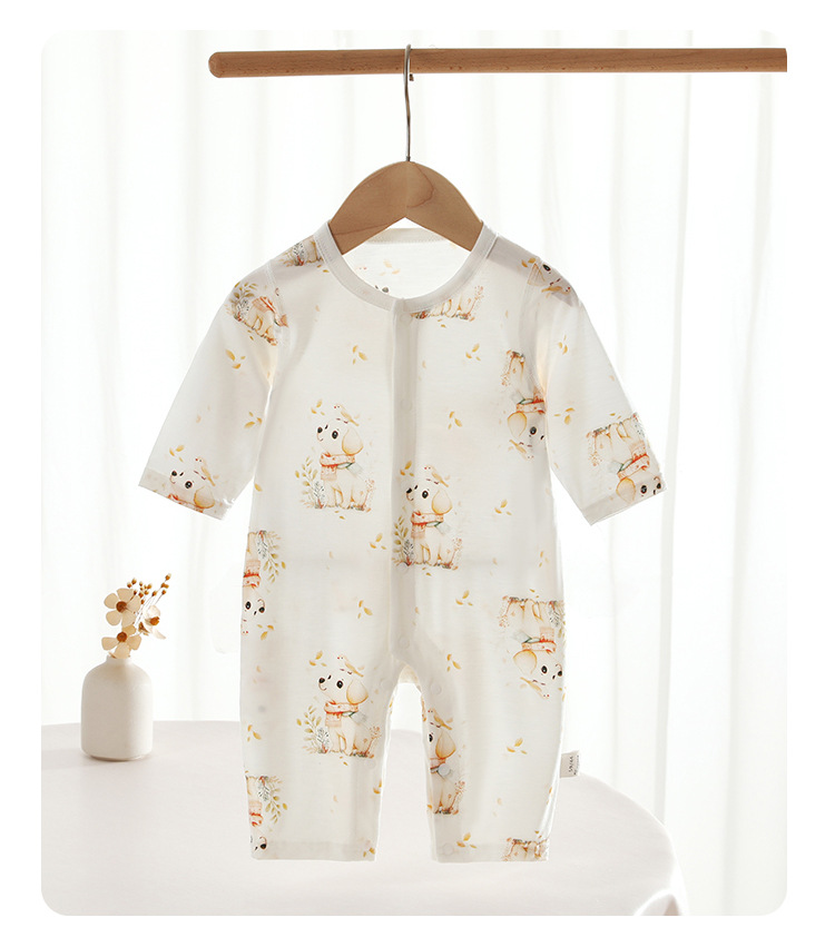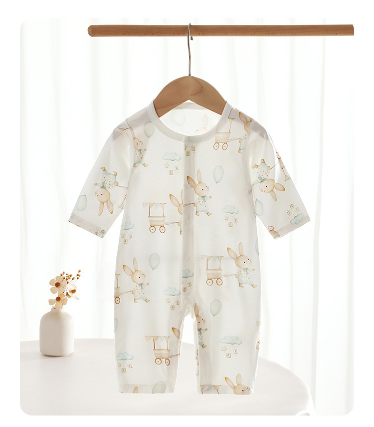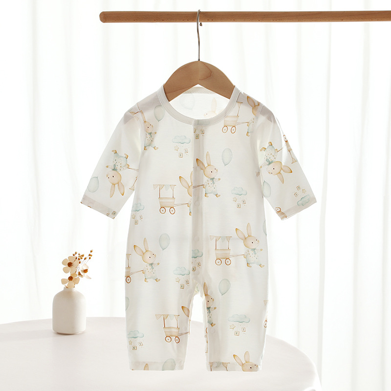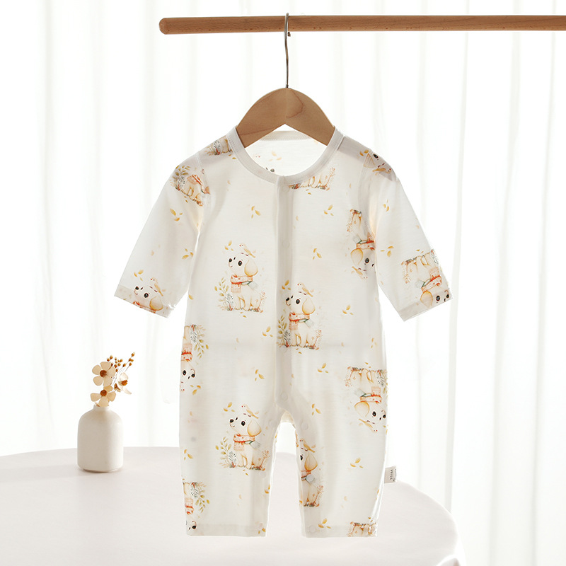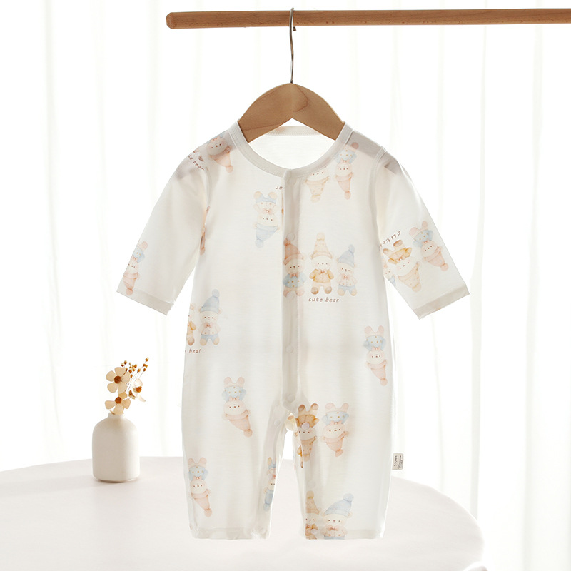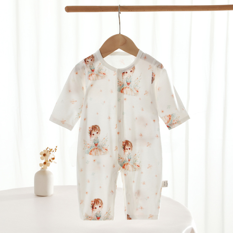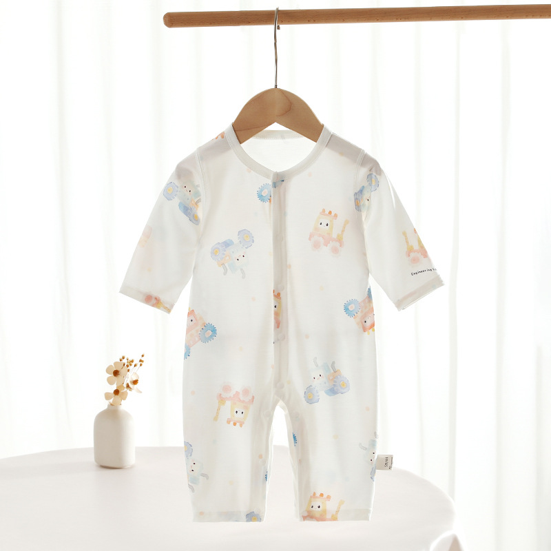 Jingqi 아기 점프 슈트 여름 얇은 뼈없는 신생아 옷 여름 긴팔 에어컨 옷 여름 옷스토어 가기