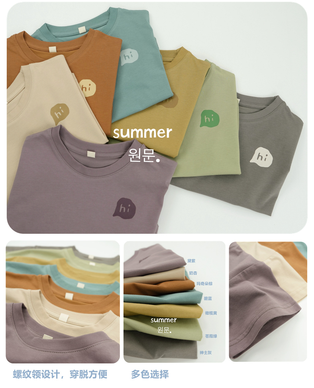 어린이 반소매 티셔츠 여름 2025 새로운 남녀 어린이 한국 스타일 작은 신선한 편지 순면 반소매 탑스토어 가기
