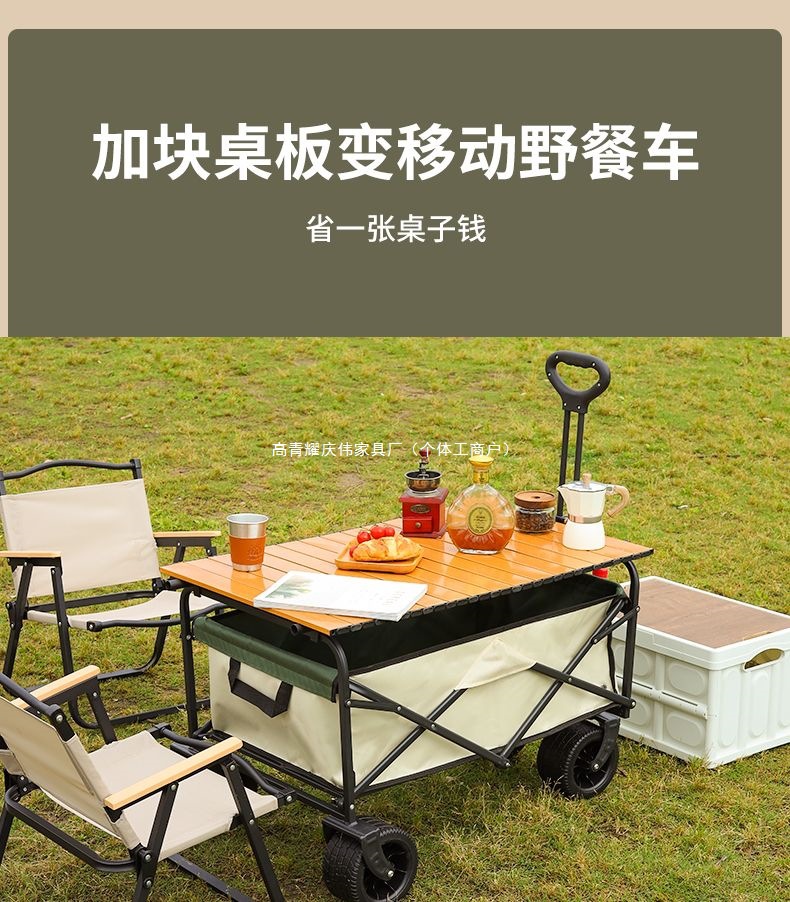 • 캠프카 + 접이식 테이블 - 대형 트레일러 탱크 휠(블랙)