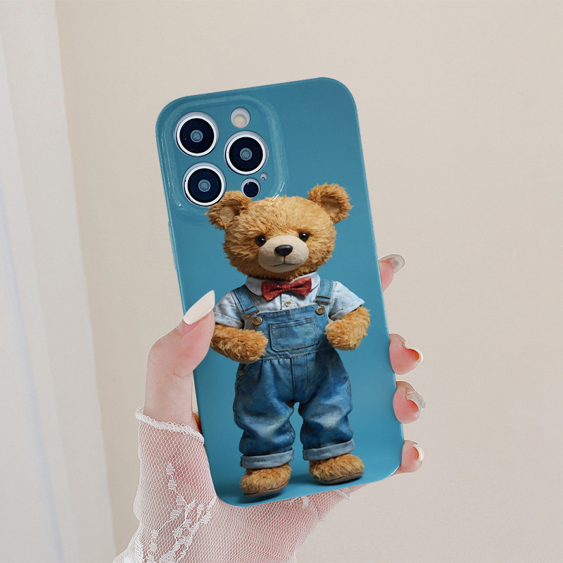 귀여운 데님 스트랩 곰 iphone15promax 전화 케이스 귀여운 애플 14 하이 엔드 센스 틈새