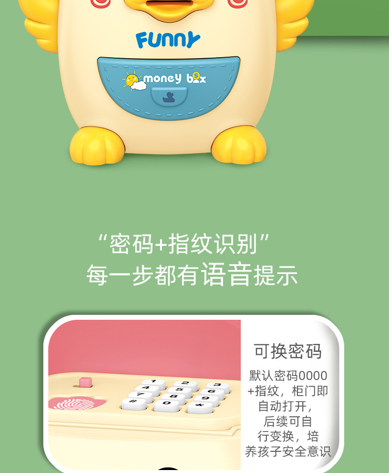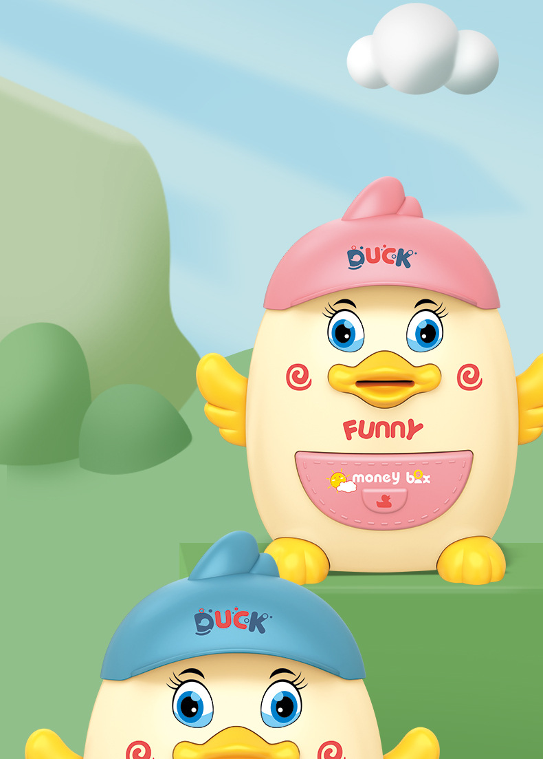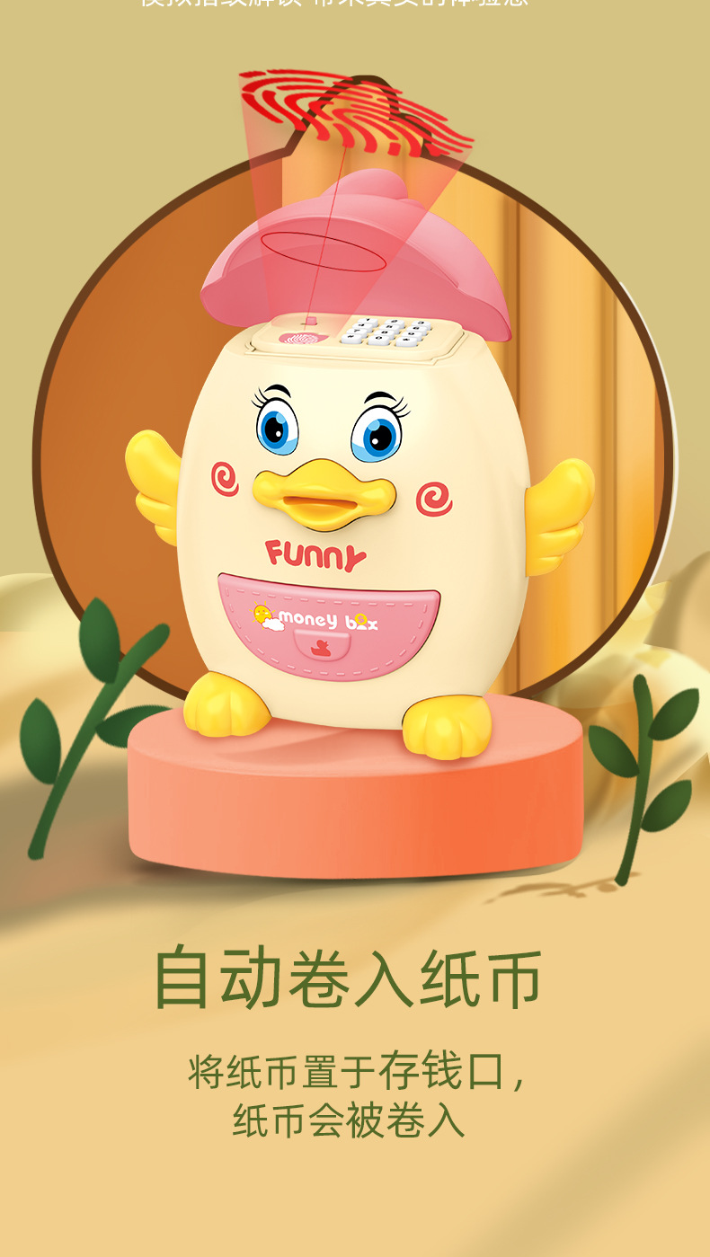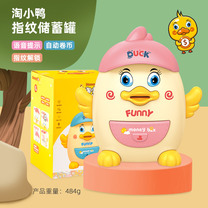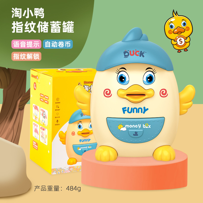 어린이 만화 오리 저금통 자동 동전 롤링 터치 감지 잠금 해제 비밀번호 상자 다기능 저금통 장난감스토어 가기