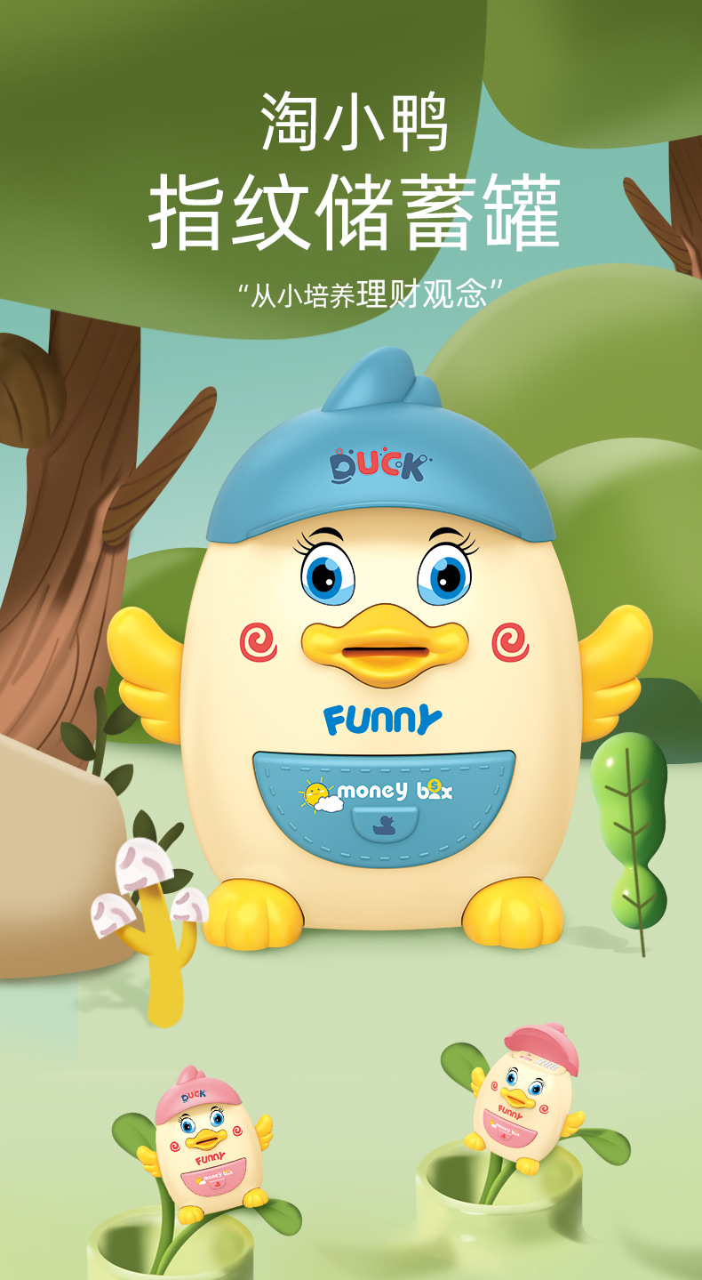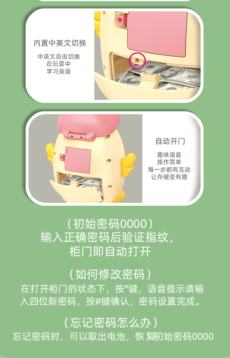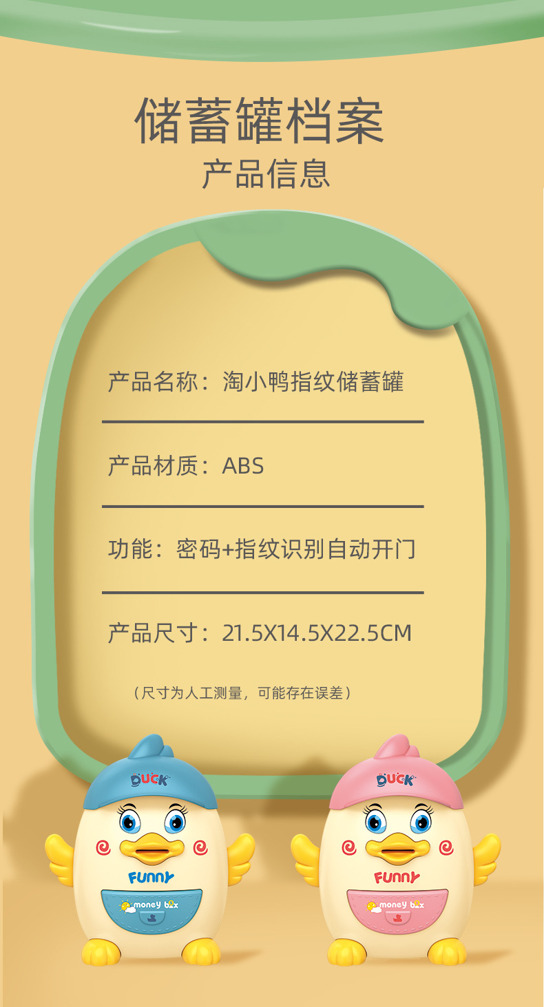 어린이 만화 오리 저금통 자동 동전 롤링 터치 감지 잠금 해제 비밀번호 상자 다기능 저금통 장난감스토어 가기