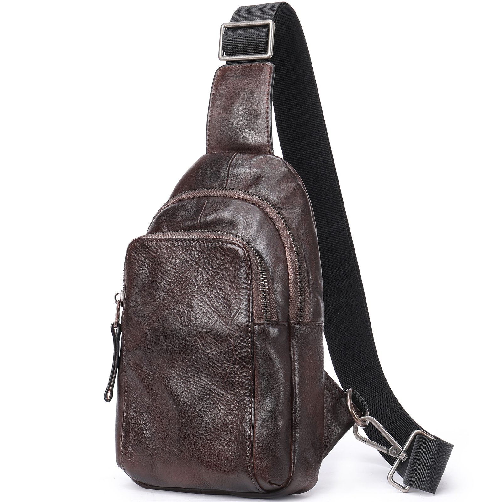 탑 레이어 소 가죽 디자인 주름 손 그립 패턴 남성용 가슴 가방 레트로 올 매치 메신저 가방 야외 가슴 가방 도매스토어 가기