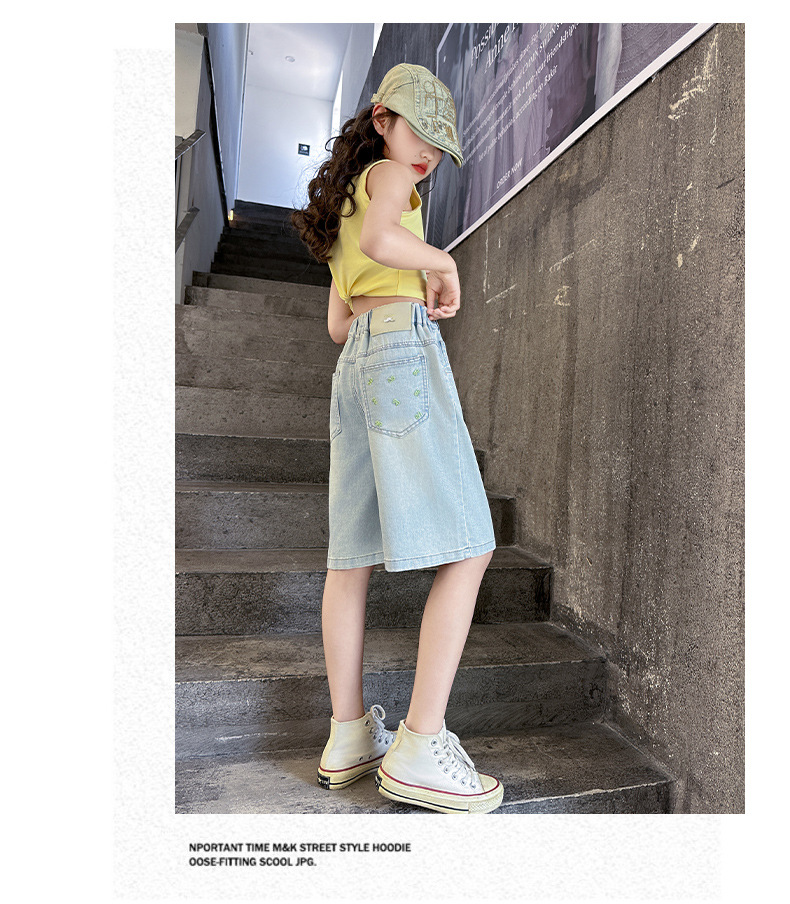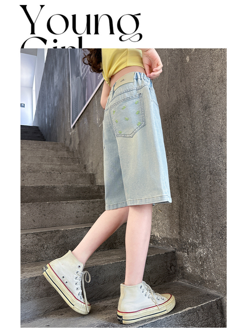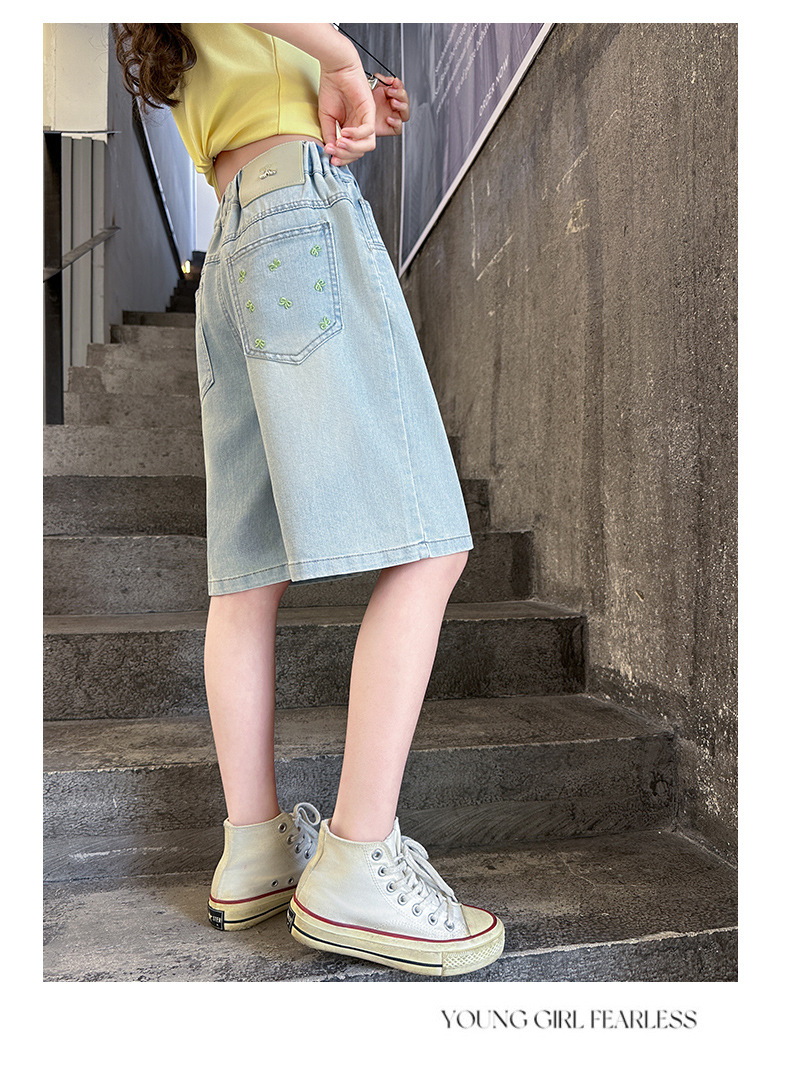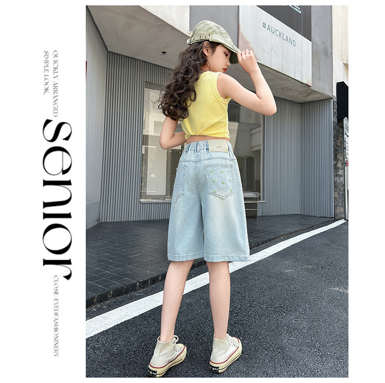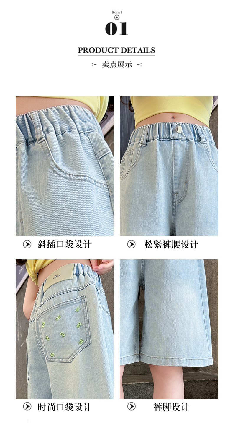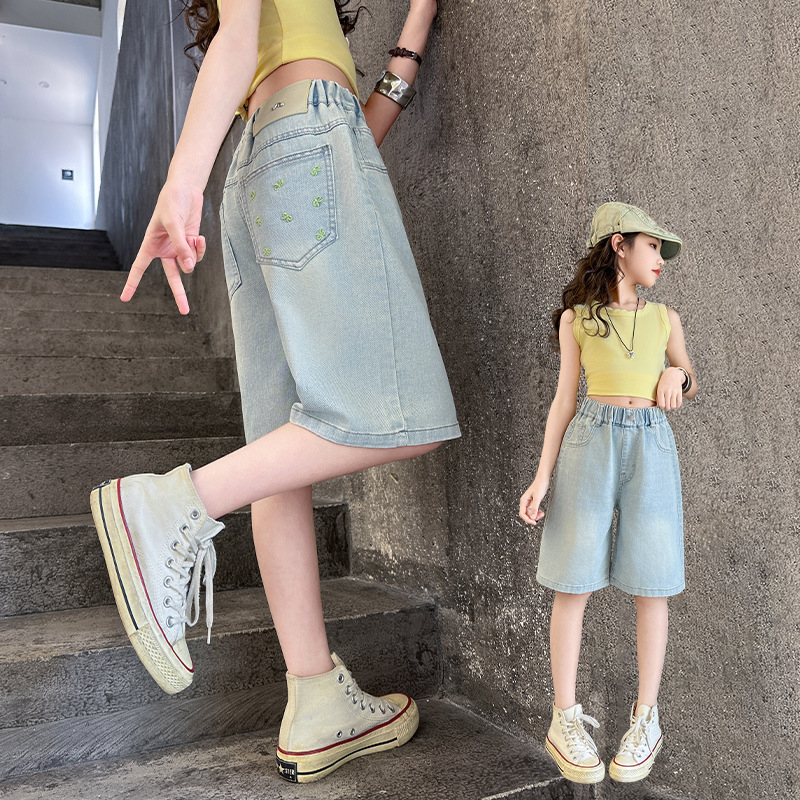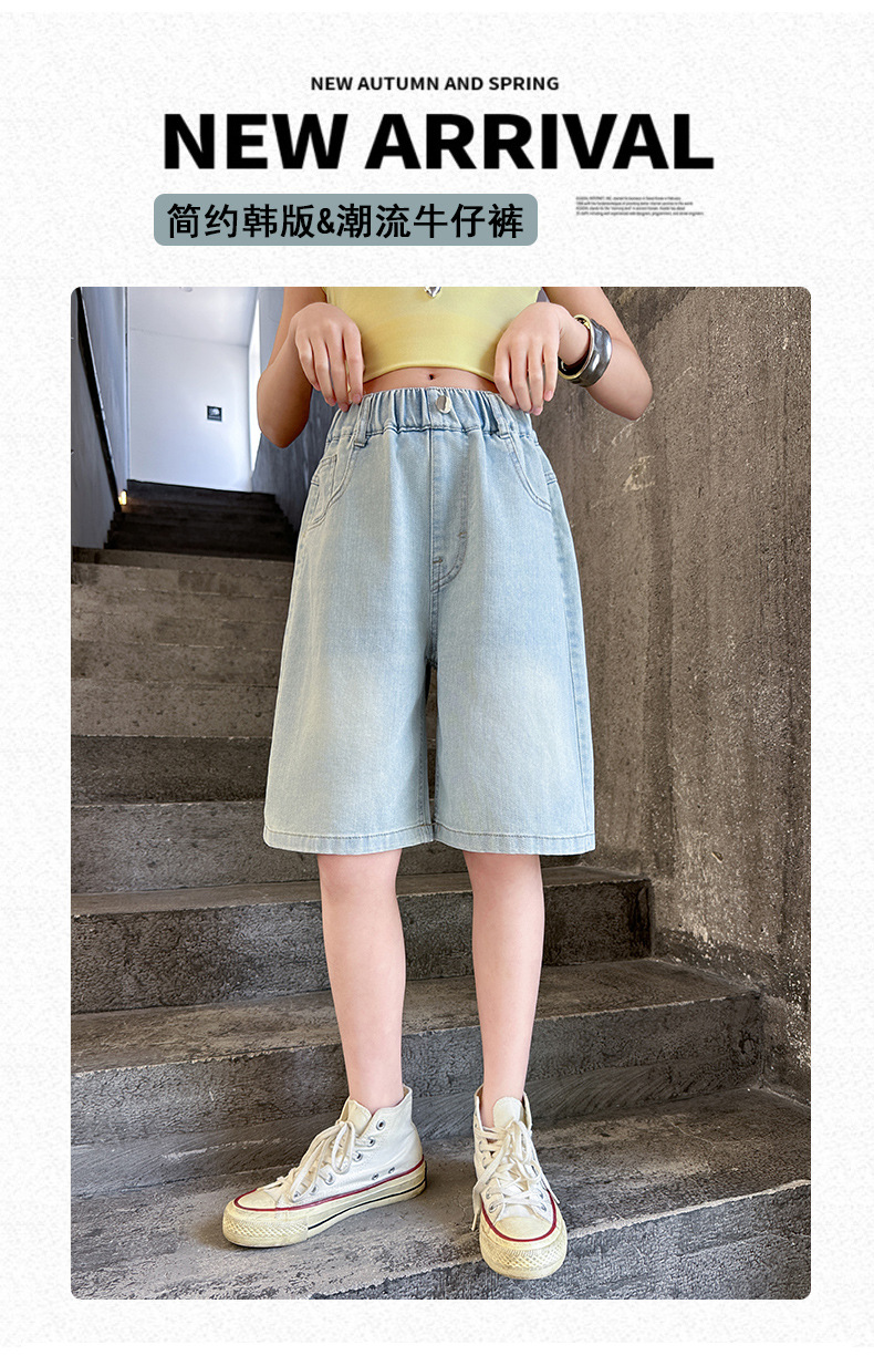 2026 아동 여아 데님 팬츠 얇은 학생용 새 스타일 바지 여름 스타일리쉬 여아 중대형 아동용 5부 바지스토어 가기