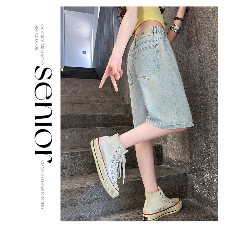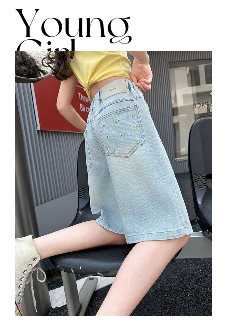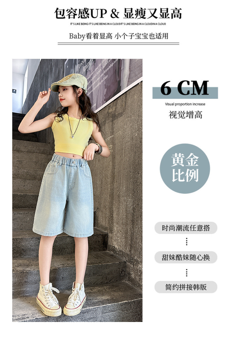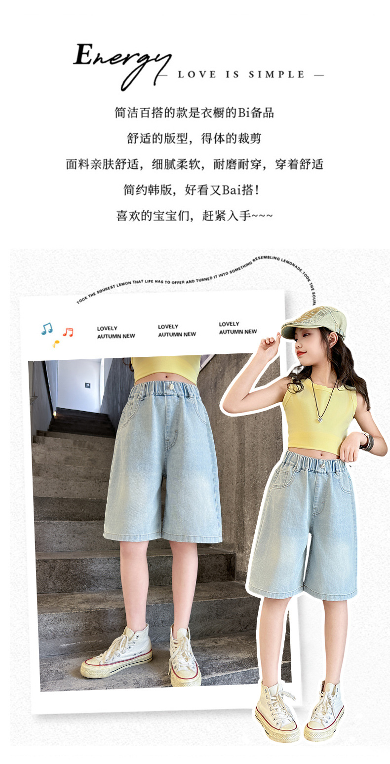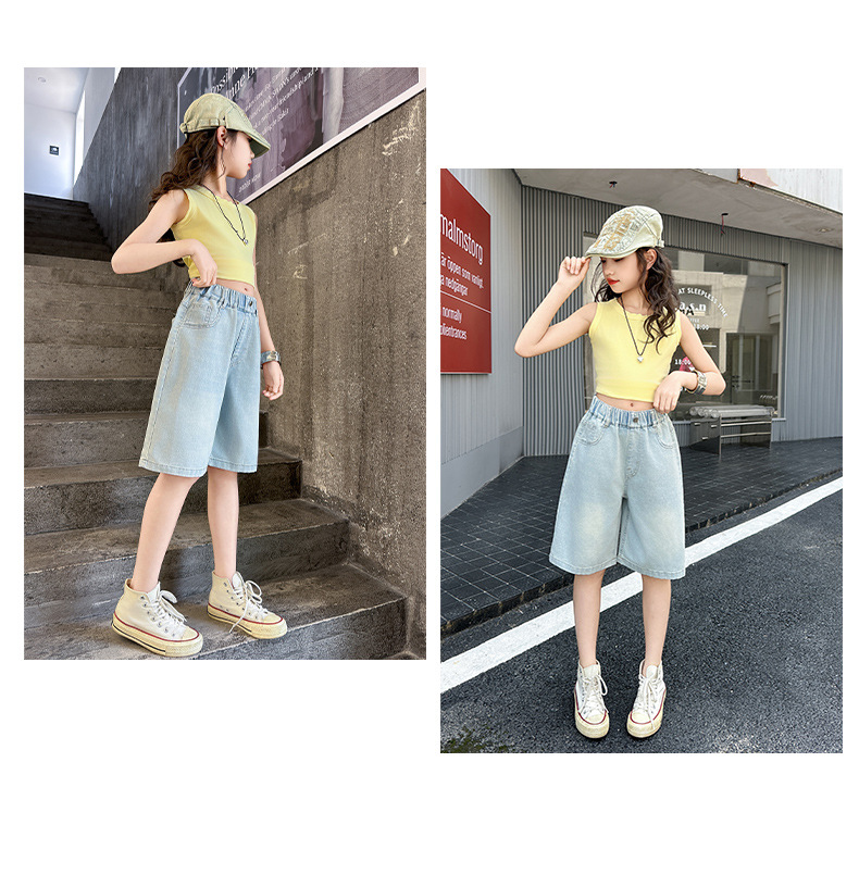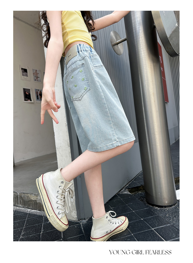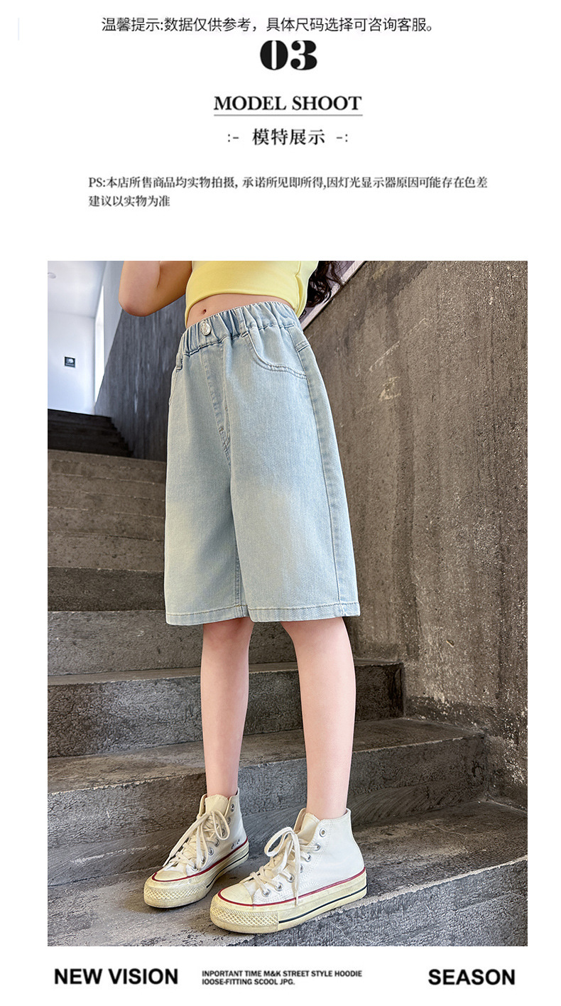 2026 아동 여아 데님 팬츠 얇은 학생용 새 스타일 바지 여름 스타일리쉬 여아 중대형 아동용 5부 바지스토어 가기