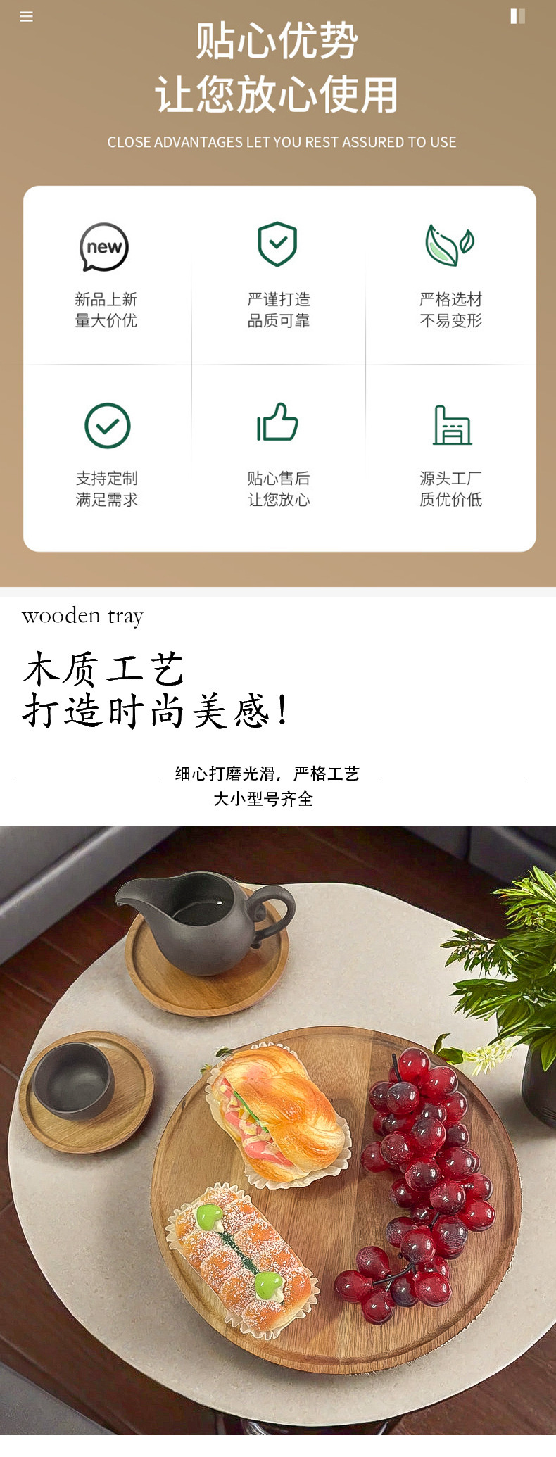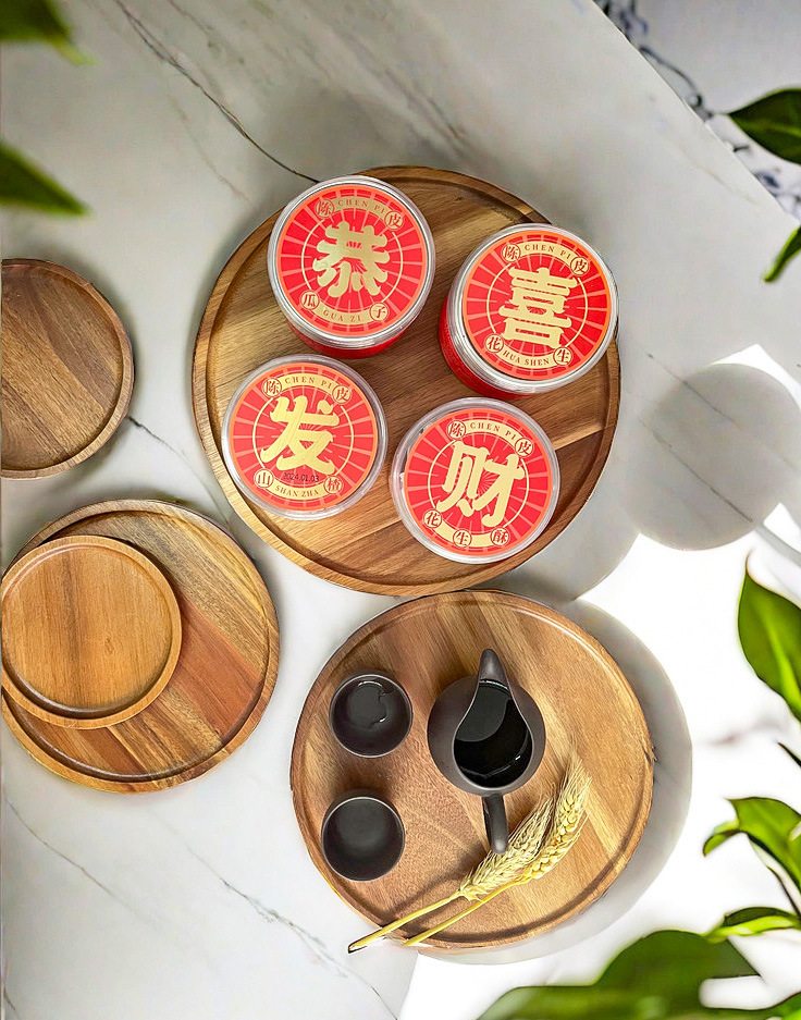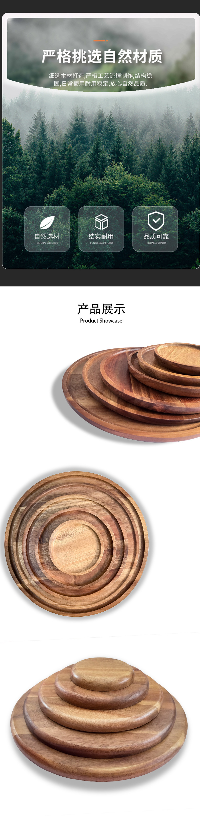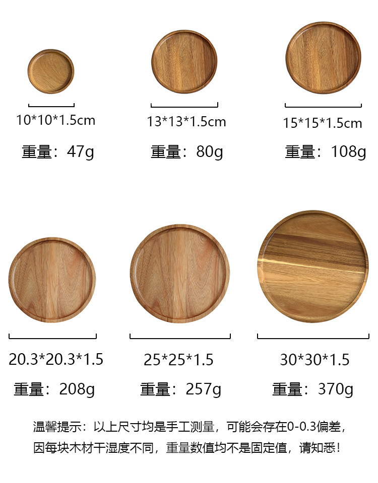 일본 아카시아 나무 라운드 대형 나무 트레이 호텔 차 컵 나무 저녁 식사 접시 가정용 단단한 나무 접시 작은 나무 접시