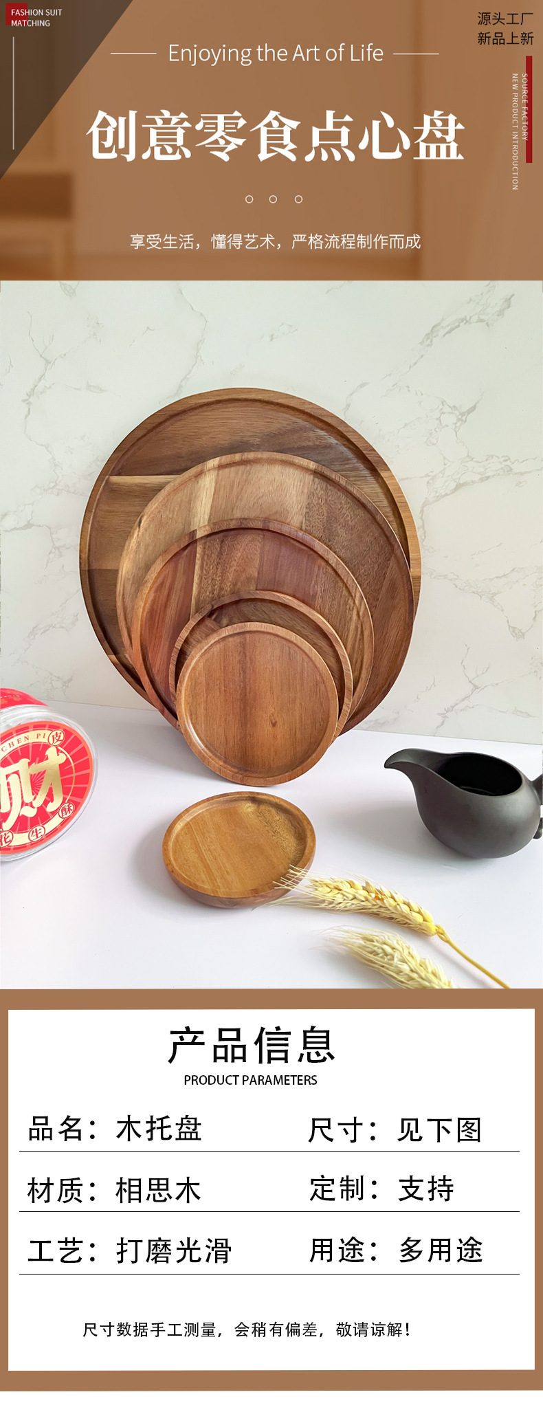 일본 아카시아 나무 라운드 대형 나무 트레이 호텔 차 컵 나무 저녁 식사 접시 가정용 단단한 나무 접시 작은 나무 접시스토어 가기