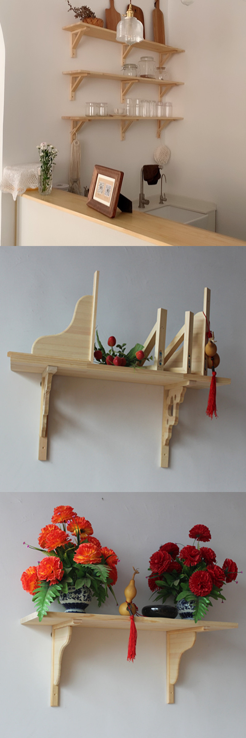 벽 지지대, 원목 선반, 일자형 칸막이 선반, 삼각형 브래킷, 원목 선반 브래킷, 심플한 무료 배송 목재