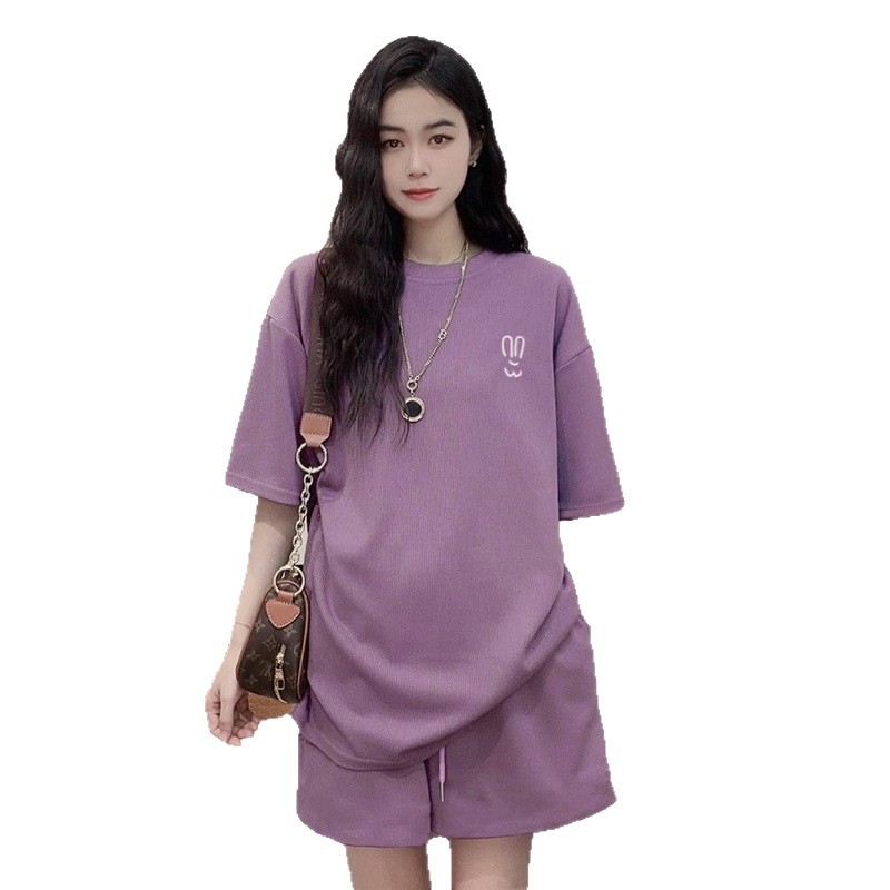 2025 여름 새로운 패션 느슨한 새로운 반팔 티셔츠 세트 여성용 와이드 레그 반바지 캐주얼 스포츠웨어 투피스 세트스토어 가기