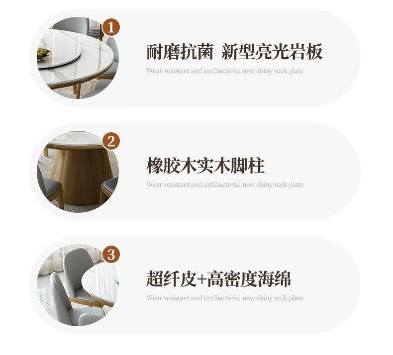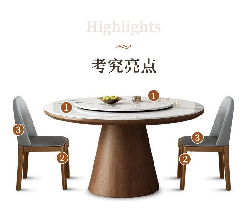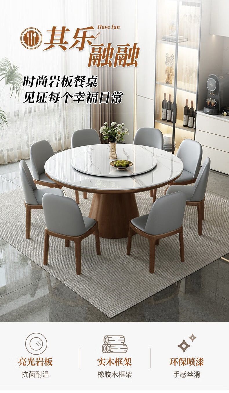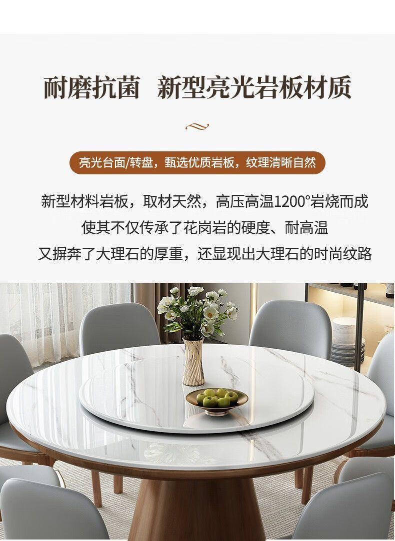 슬레이트 식탁과 의자 조합, 현대적이고 단순하며 가벼운 럭셔리 가정용 회전판 대형 원형 테이블 고급 단단한 원형 식탁과 의자스토어 가기
