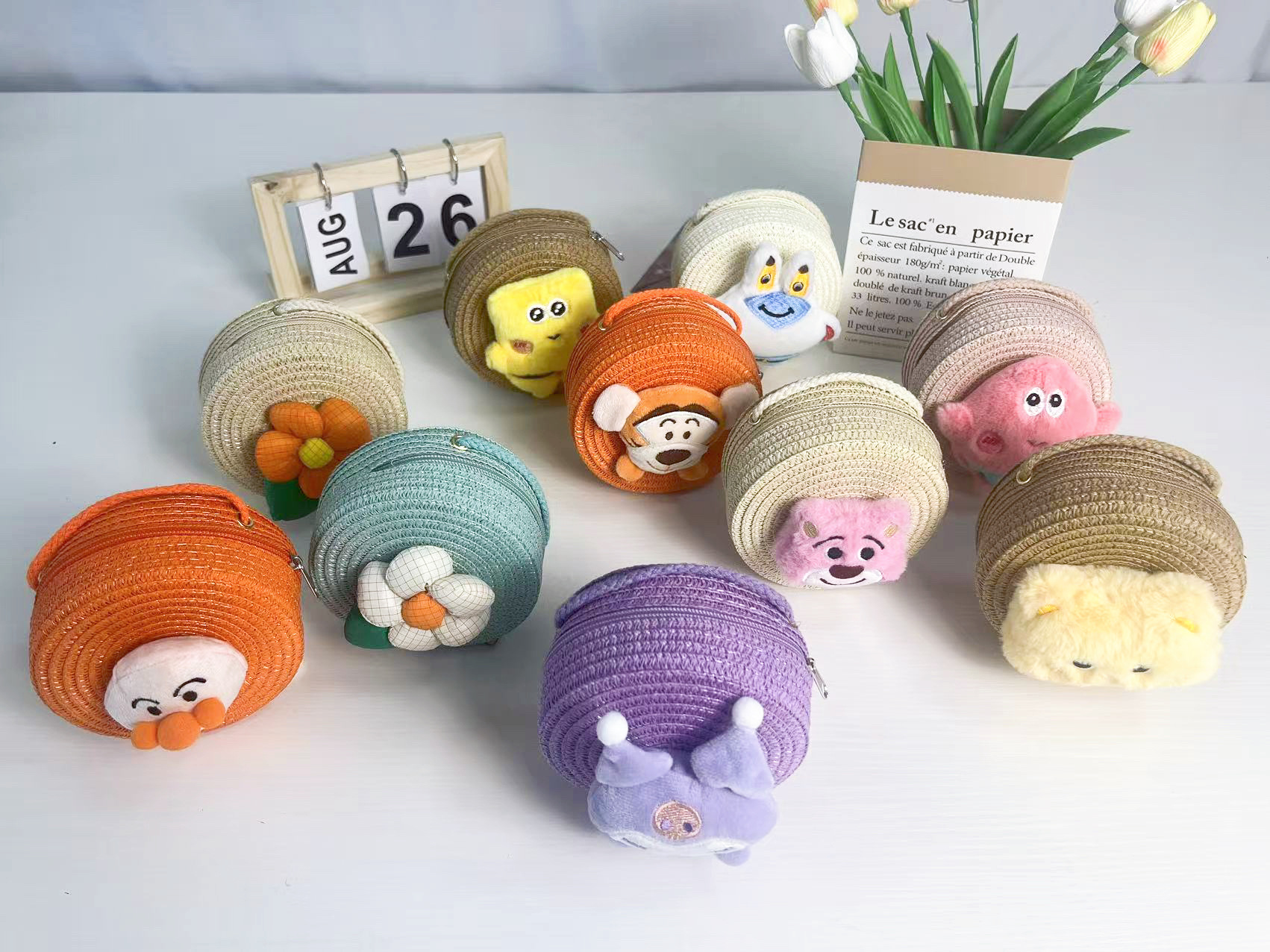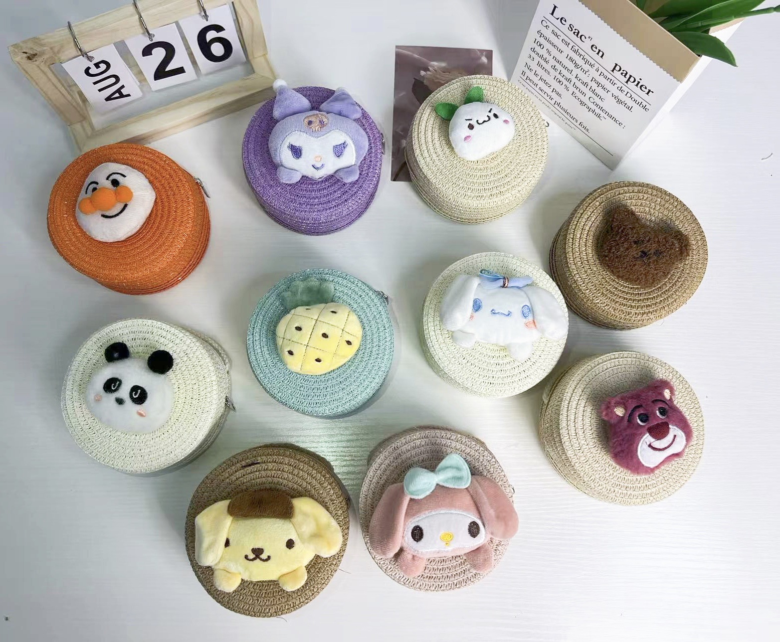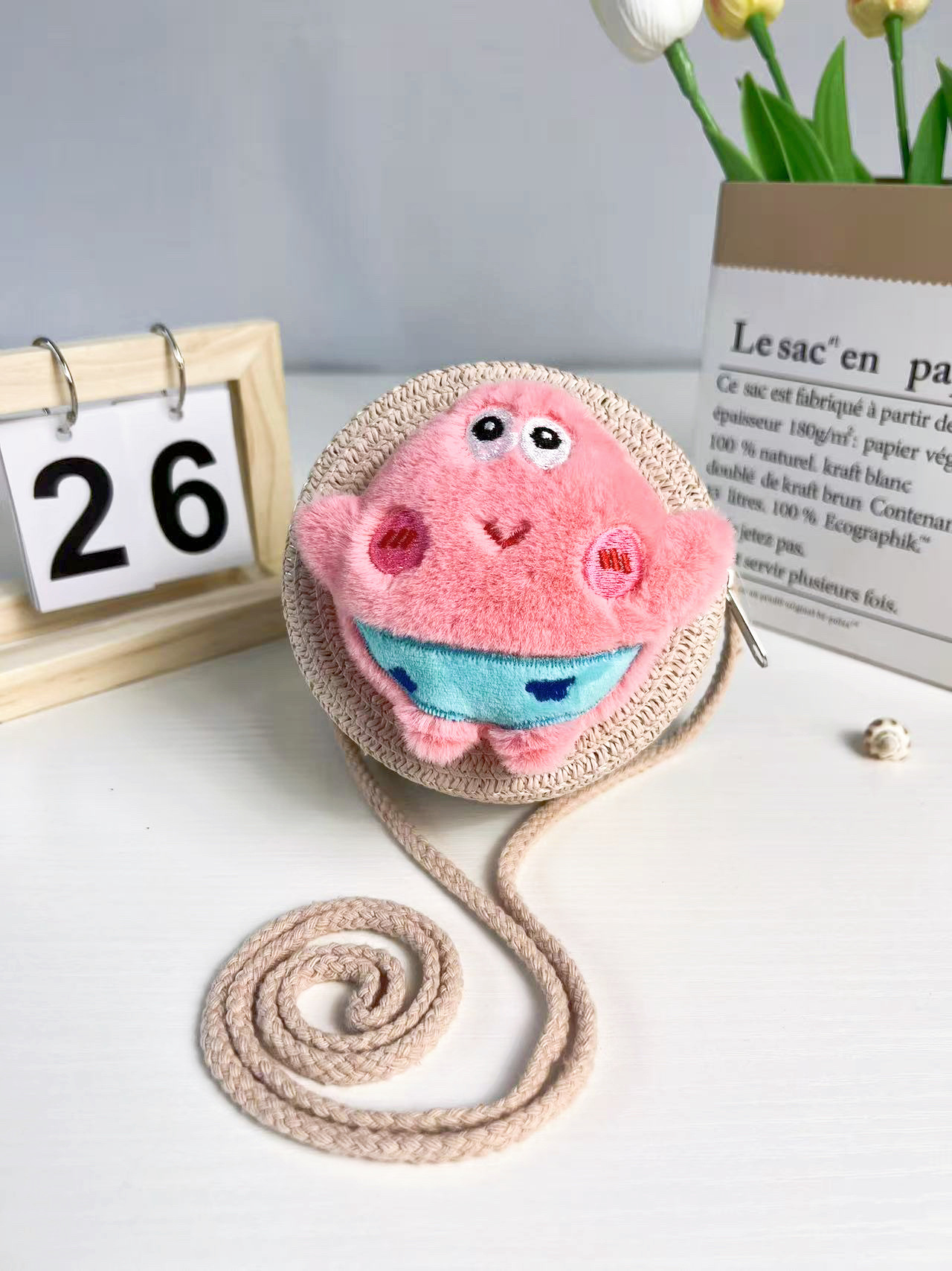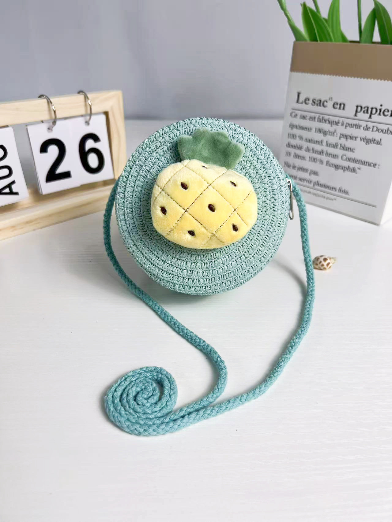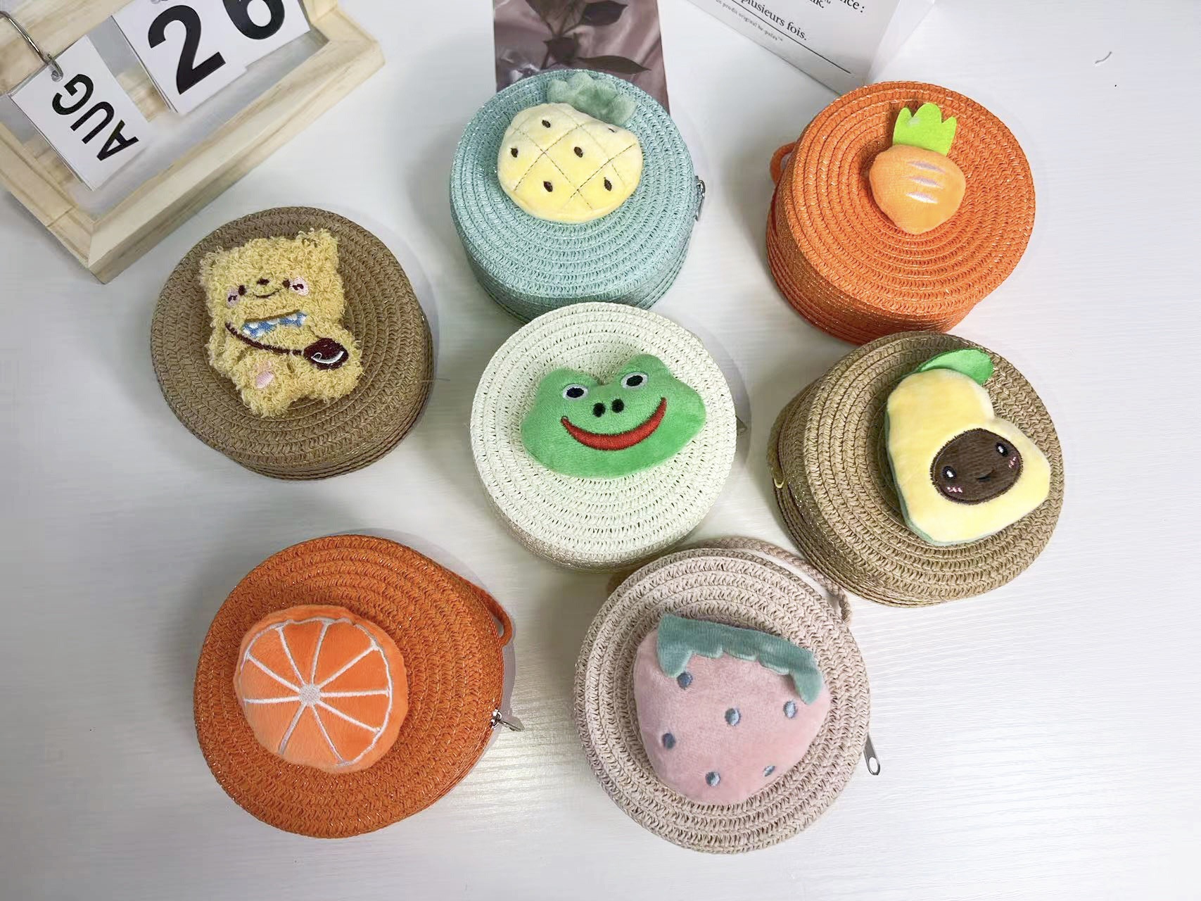 어린이 밀짚 가방 만화 작은 가방 라운드 가방 여름 해변 달콤한 소녀 아기 크로스 바디 여행 귀여운 동전 지갑스토어 가기