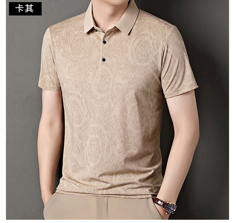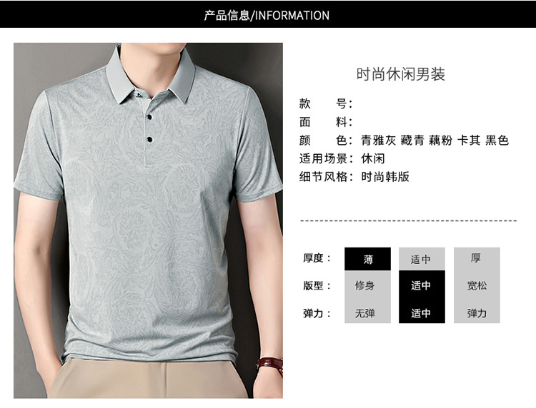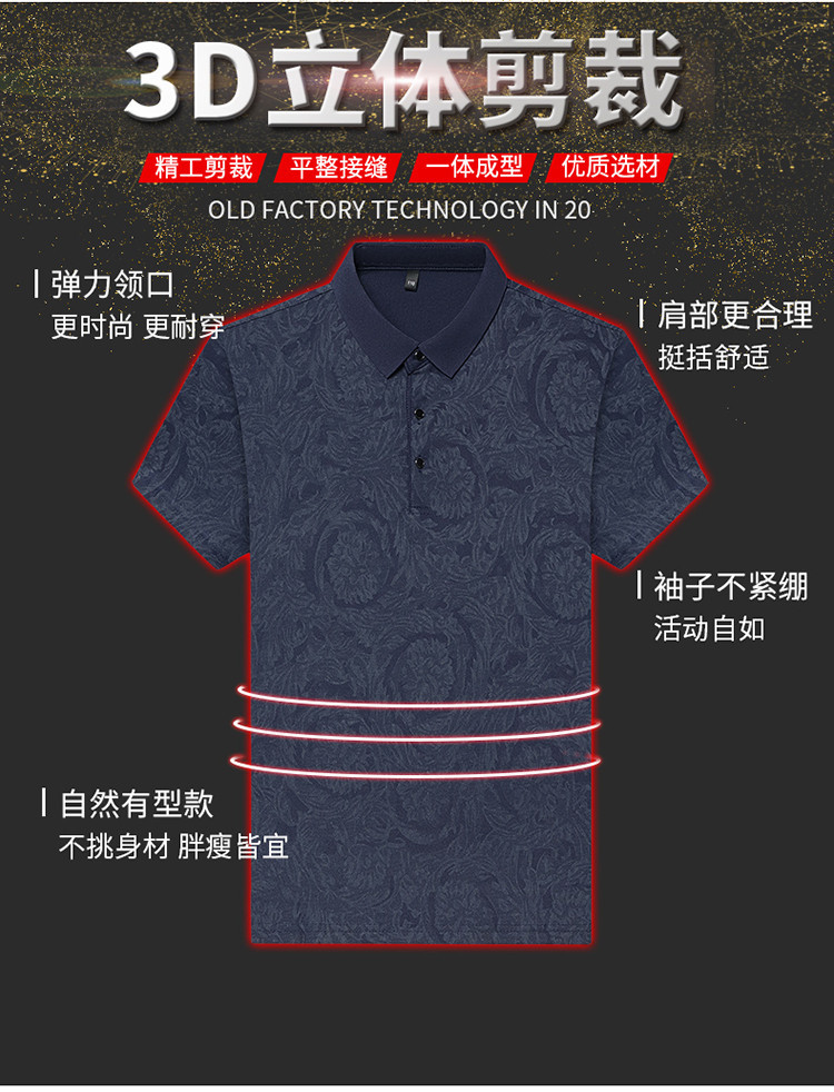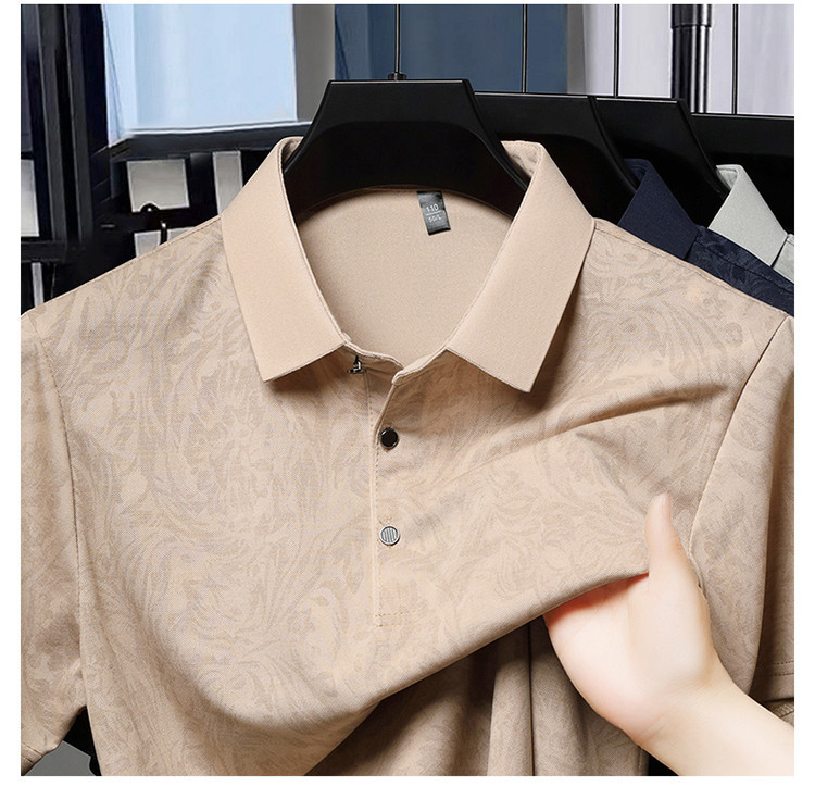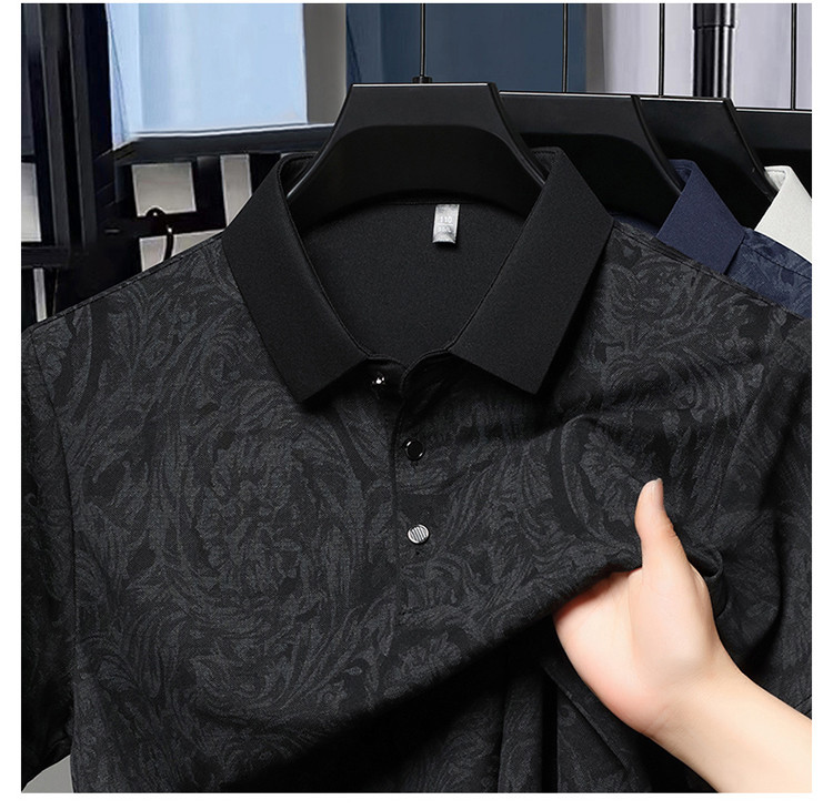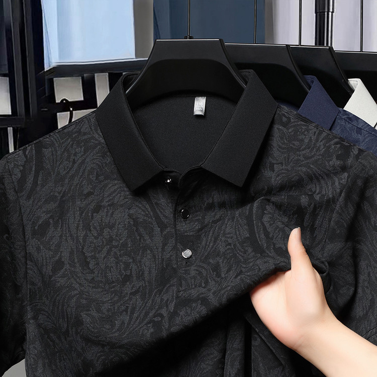 여름 새로운 반팔 티셔츠 남성용 라르 인쇄 캐주얼 비즈니스 남성 중년 및 노인 탑 반팔 폴로 셔츠스토어 가기