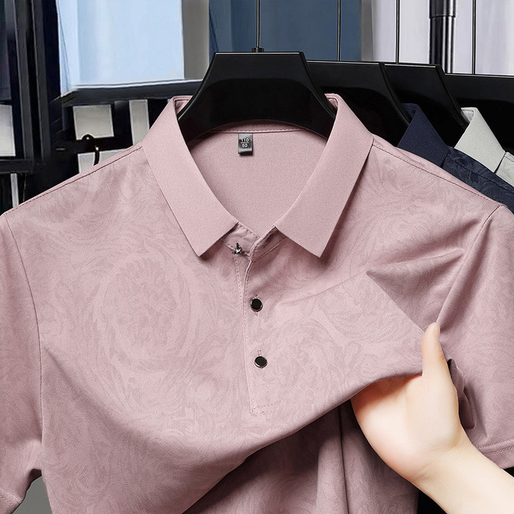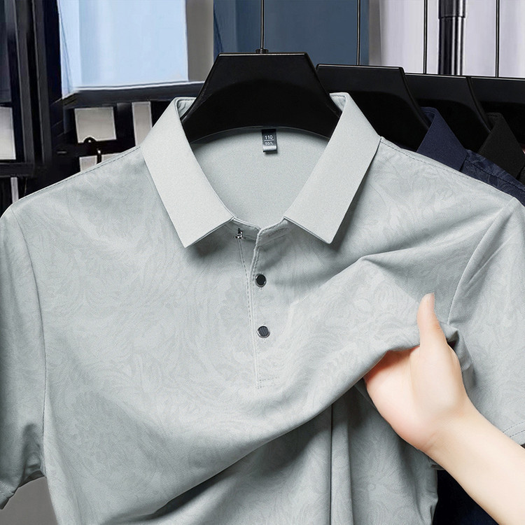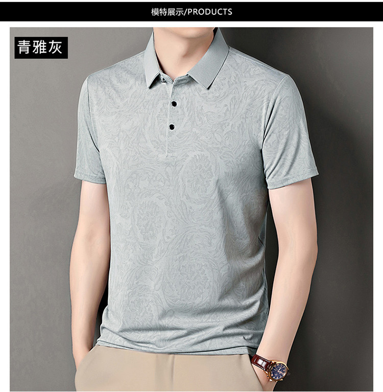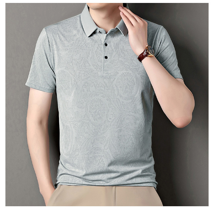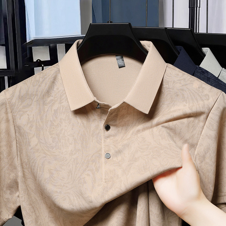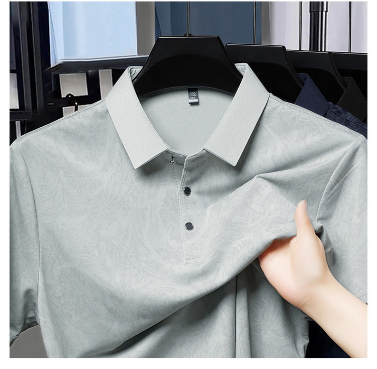 여름 새로운 반팔 티셔츠 남성용 라르 인쇄 캐주얼 비즈니스 남성 중년 및 노인 탑 반팔 폴로 셔츠스토어 가기
