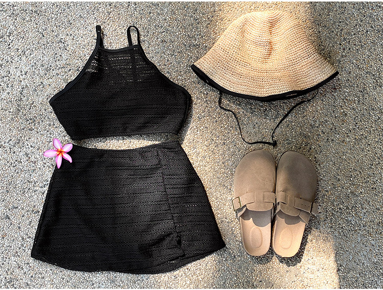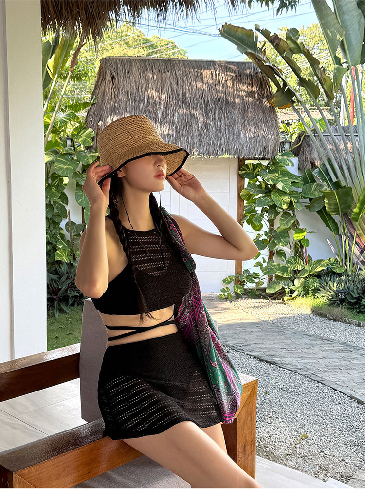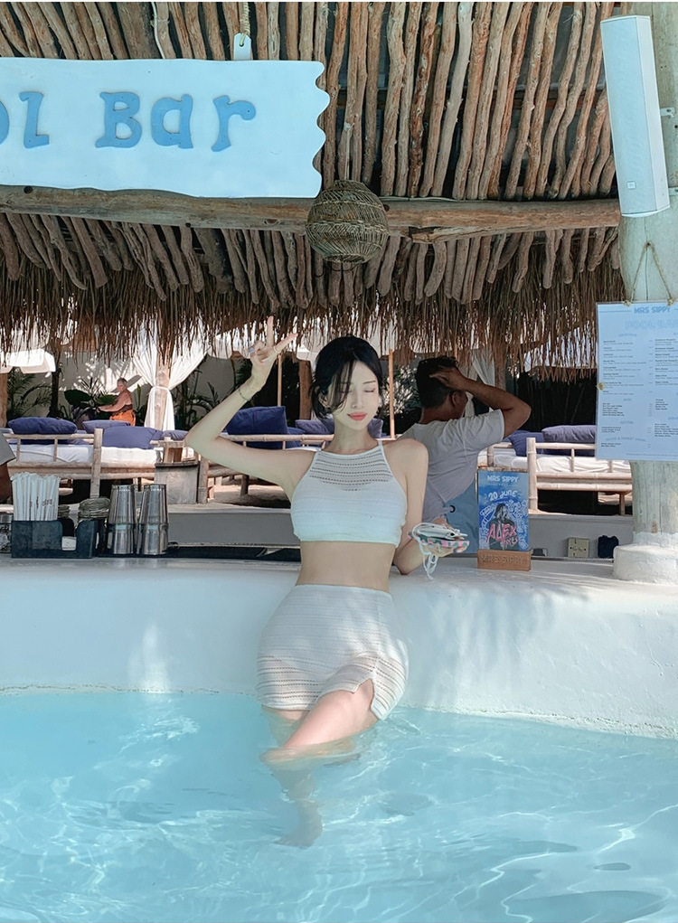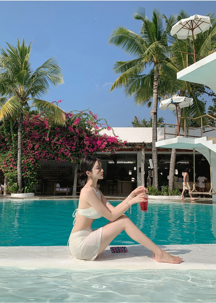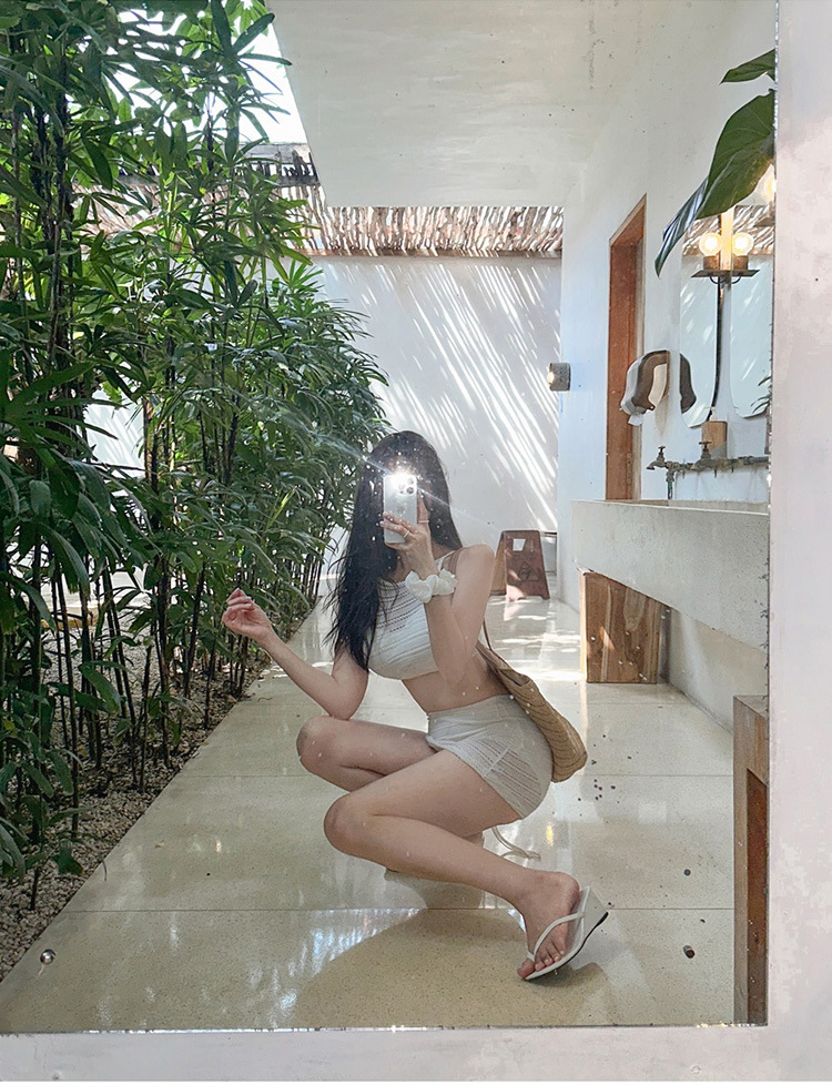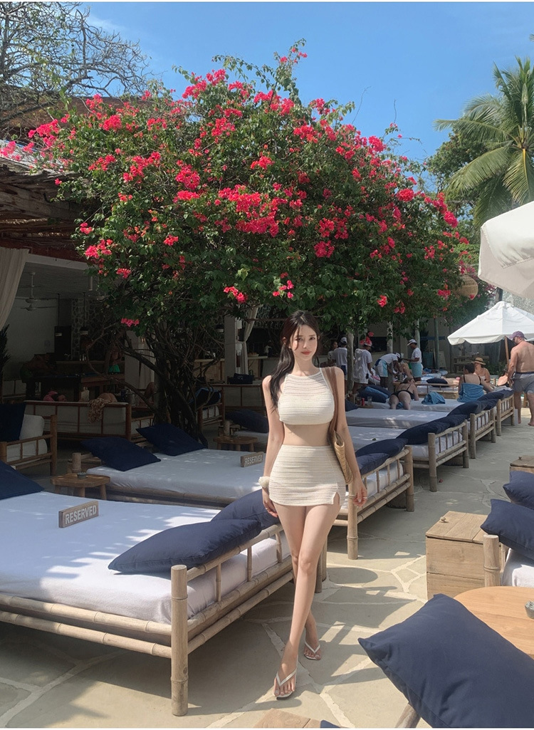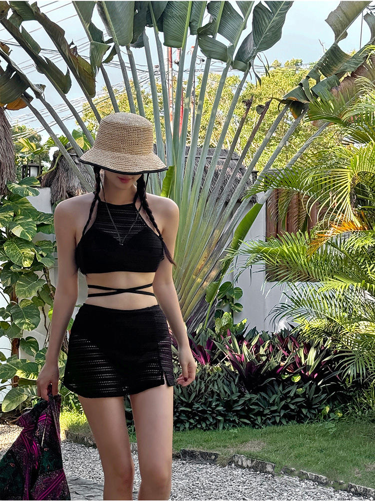 2025 인터넷 연예인 신상 한국식 레이스 메쉬 고급 버전 순수한 욕망 스타일 스플릿 스트랩 스커트 수영복 3종 세트