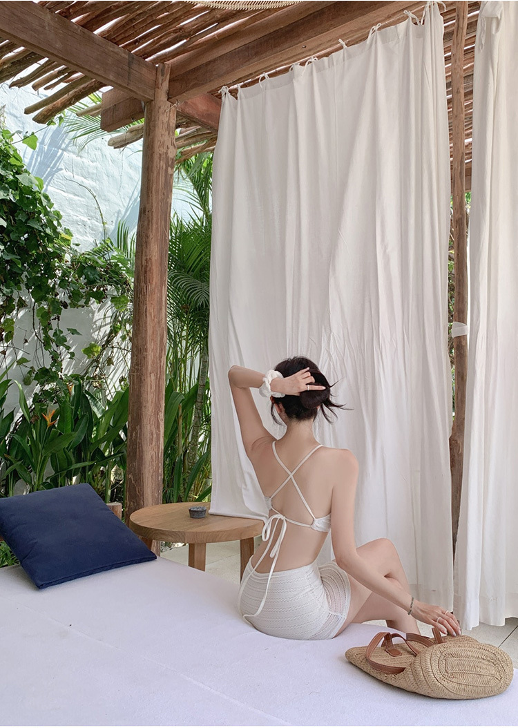2025 인터넷 연예인 신상 한국식 레이스 메쉬 고급 버전 순수한 욕망 스타일 스플릿 스트랩 스커트 수영복 3종 세트스토어 가기