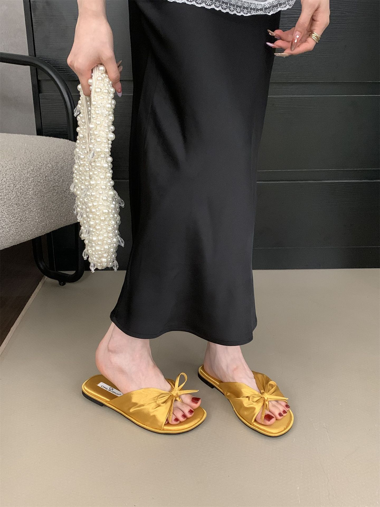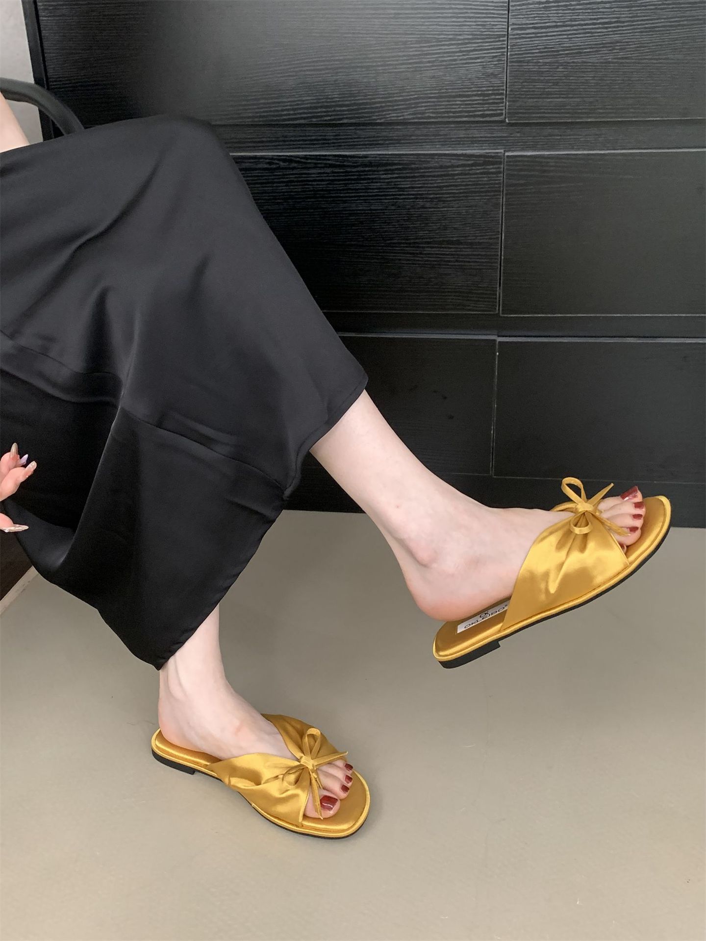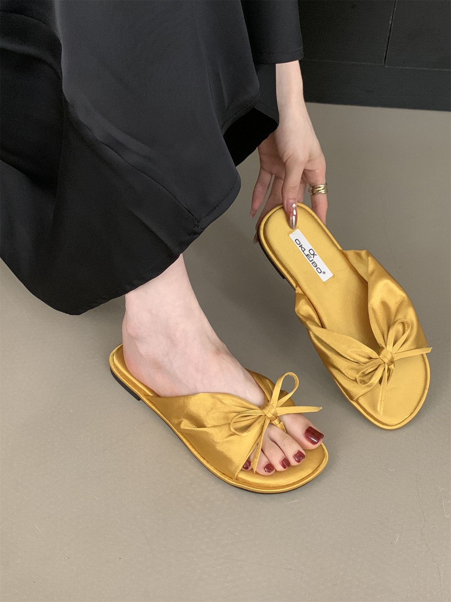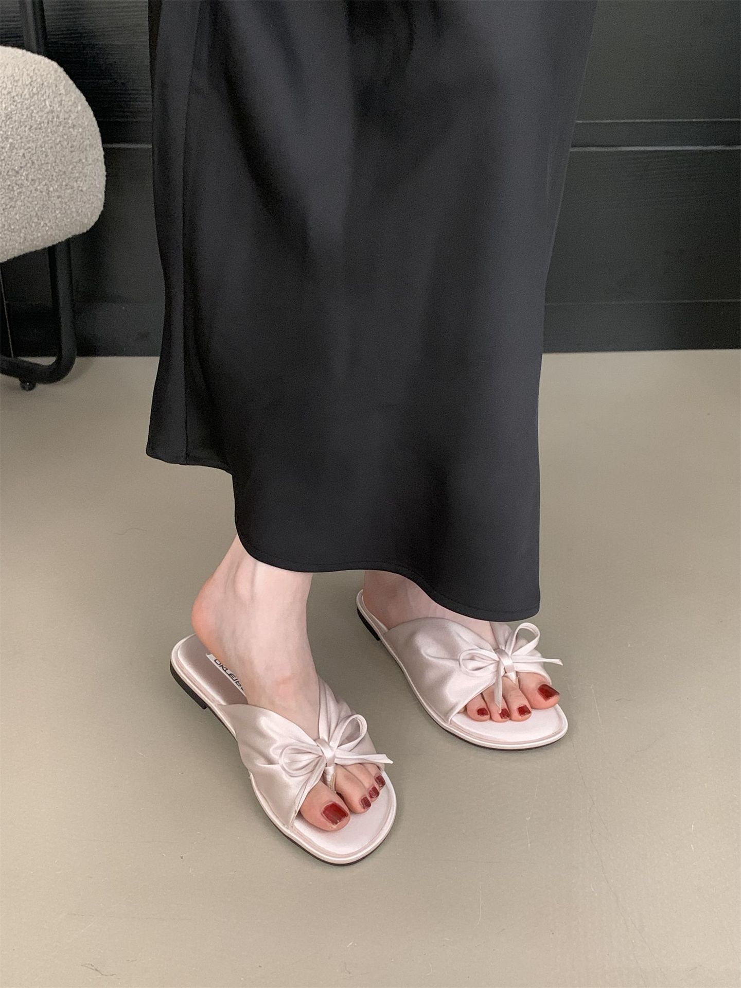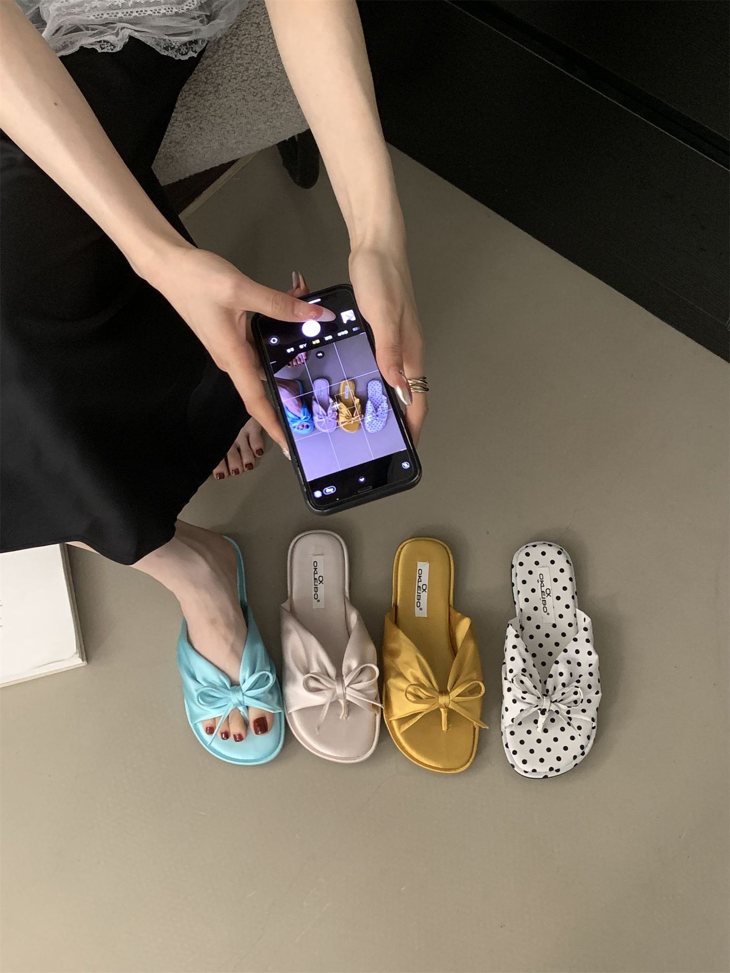 한국판 요정 우아한 샌들 2025 새로운 겉옷 부드러운 밑창 나비 신발 플랫 바닥 비치 오픈 발가락 샌들