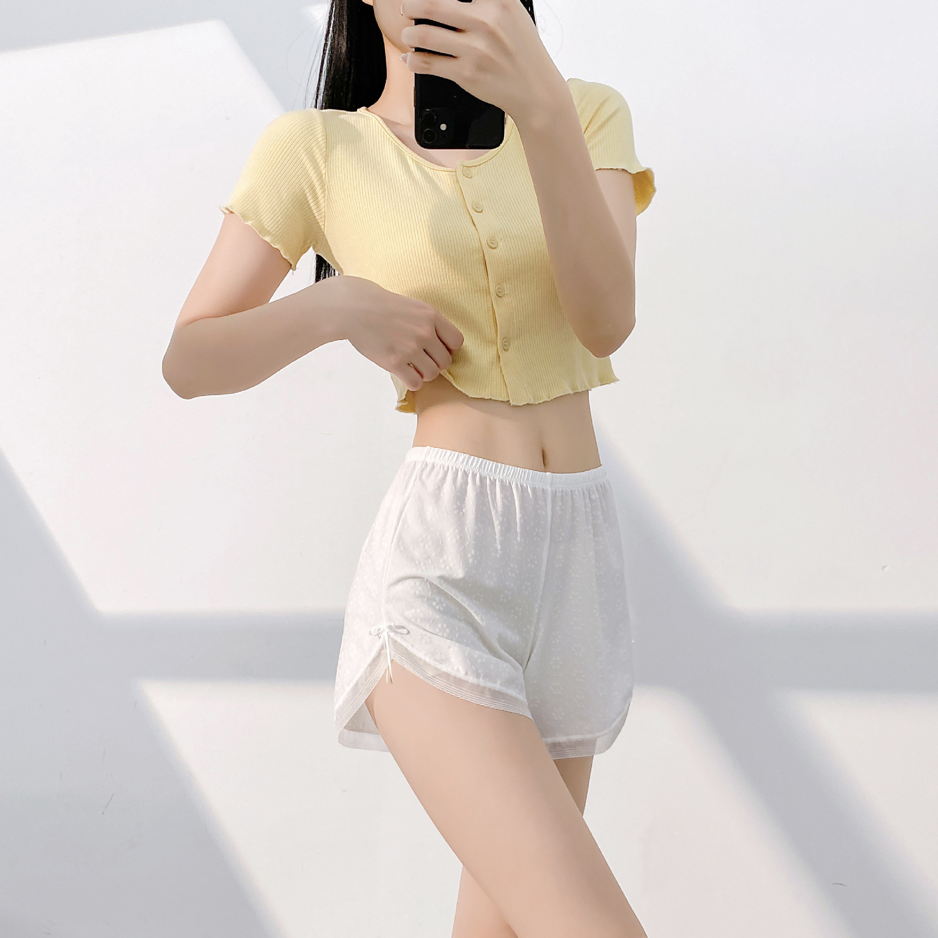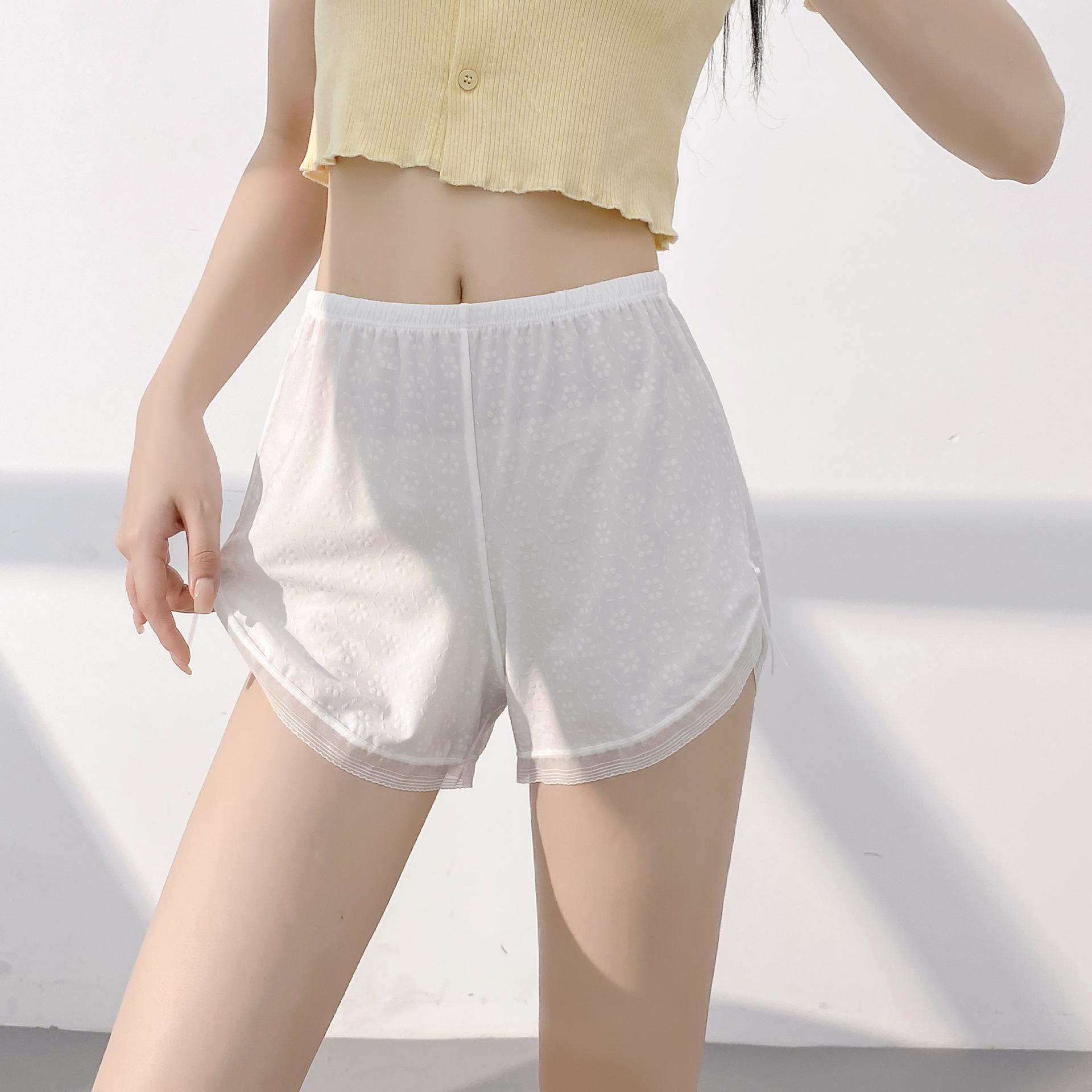 심플걸~여성용 작은 꽃무늬 나일론 안전바지, 집에서 노출 방지, 3점 레깅스, 여성용 반바지스토어 가기
