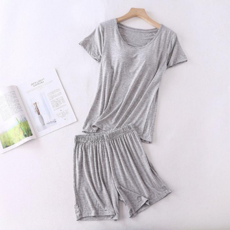 파자마 여성 여름 반팔 세트 플러스 사이즈 원피스 노웨어 브라 반소매 루즈 반바지
