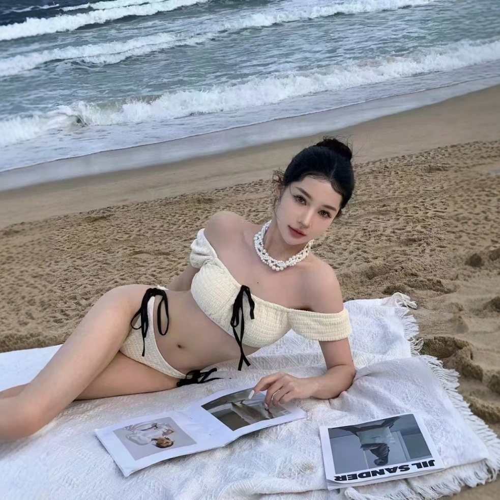수영복 온천 여성 하이 엔드 센스 스플릿 컬러 비키니 슬리밍 작은 가슴 수영복 Instagram 스타일 순수 수영복스토어 가기