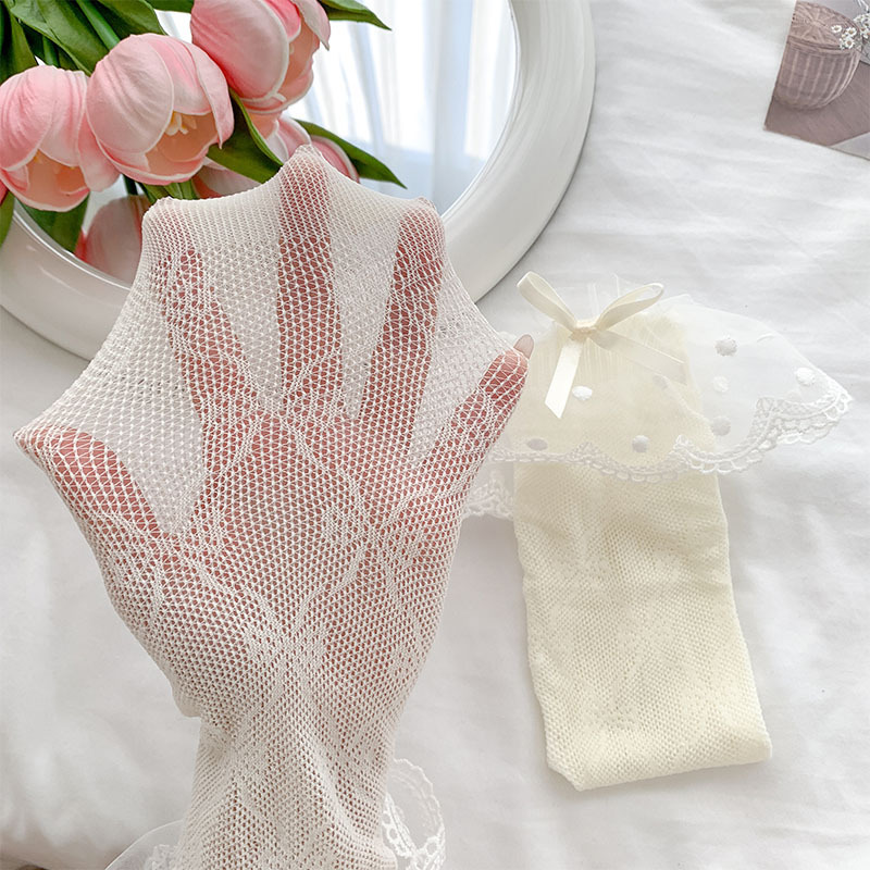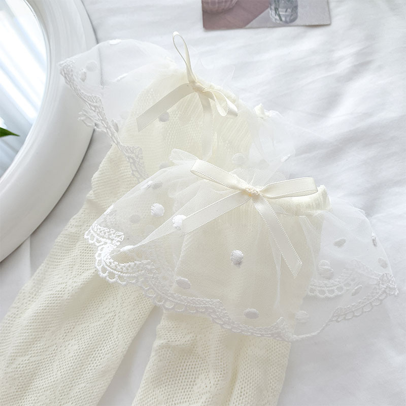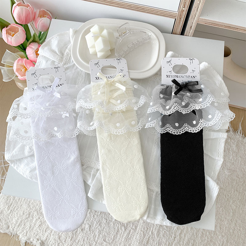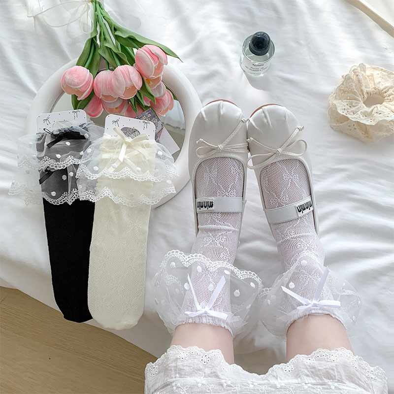 로리타 폴카 도트 레이스 양말 여성 일본식 귀여운 공주 스타일 봄과 여름 달콤한 나비 매듭 종아리 양말