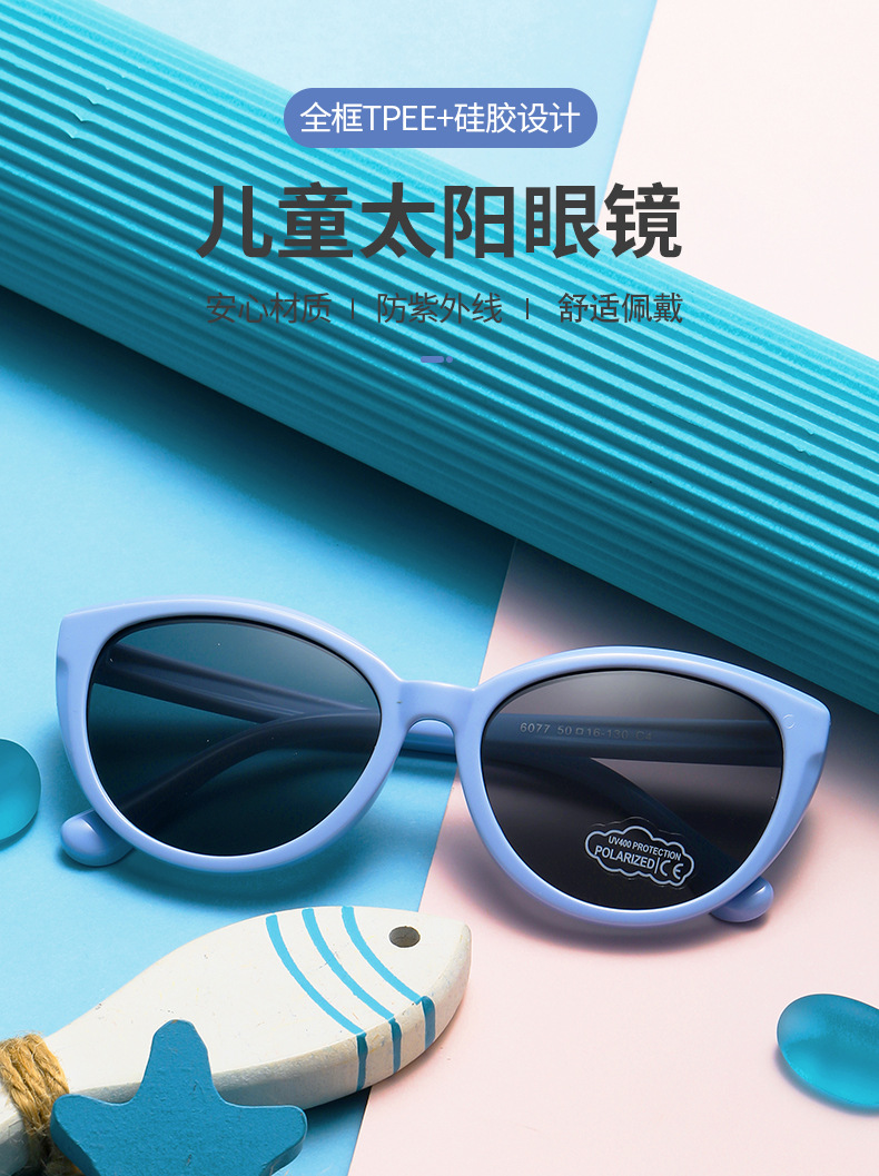 2025 새로운 어린이 선글라스 패션 풀 프레임 부드러운 실리콘 편광 선글라스 태양 보호 UV 6077