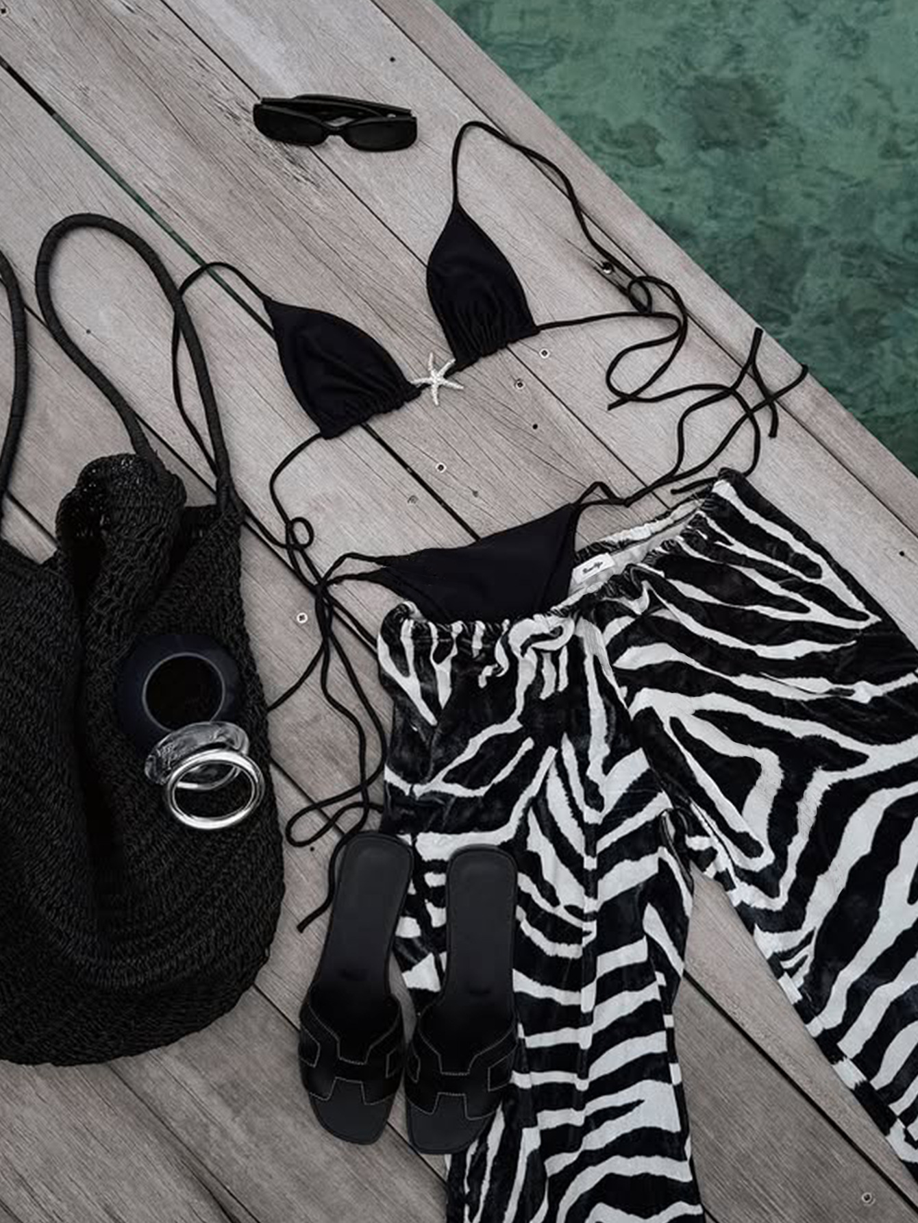 2025 새로운 핫 세일 얼룩말 패턴 메쉬 바지 3 조각 비키니 수영복 여성 비키니 섹시한 대외 무역