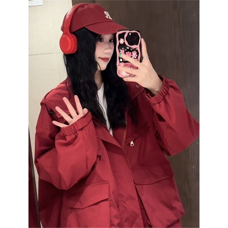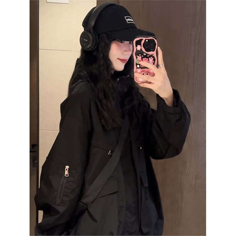 여성을위한 미국 복고풍 야외 후드 재킷 봄, 가을 산 스타일 기능성 스타일 작업복 스포츠 재킷 탑