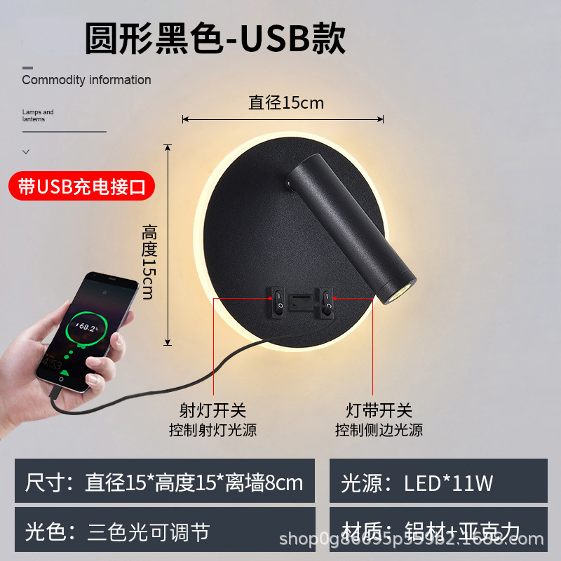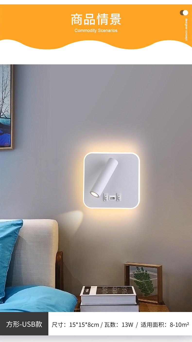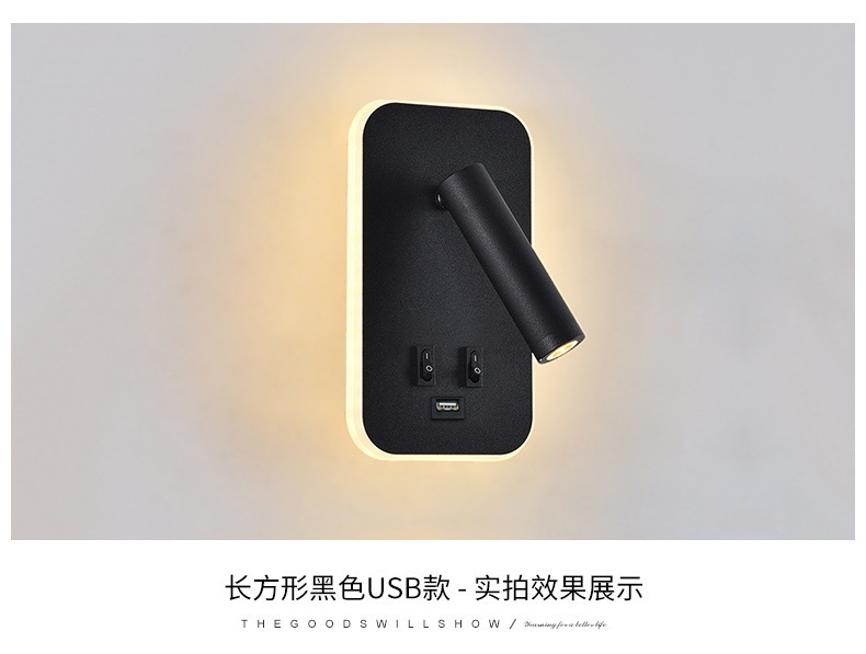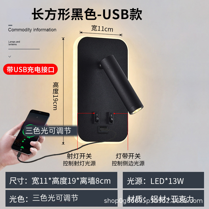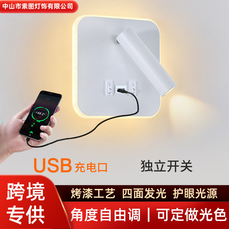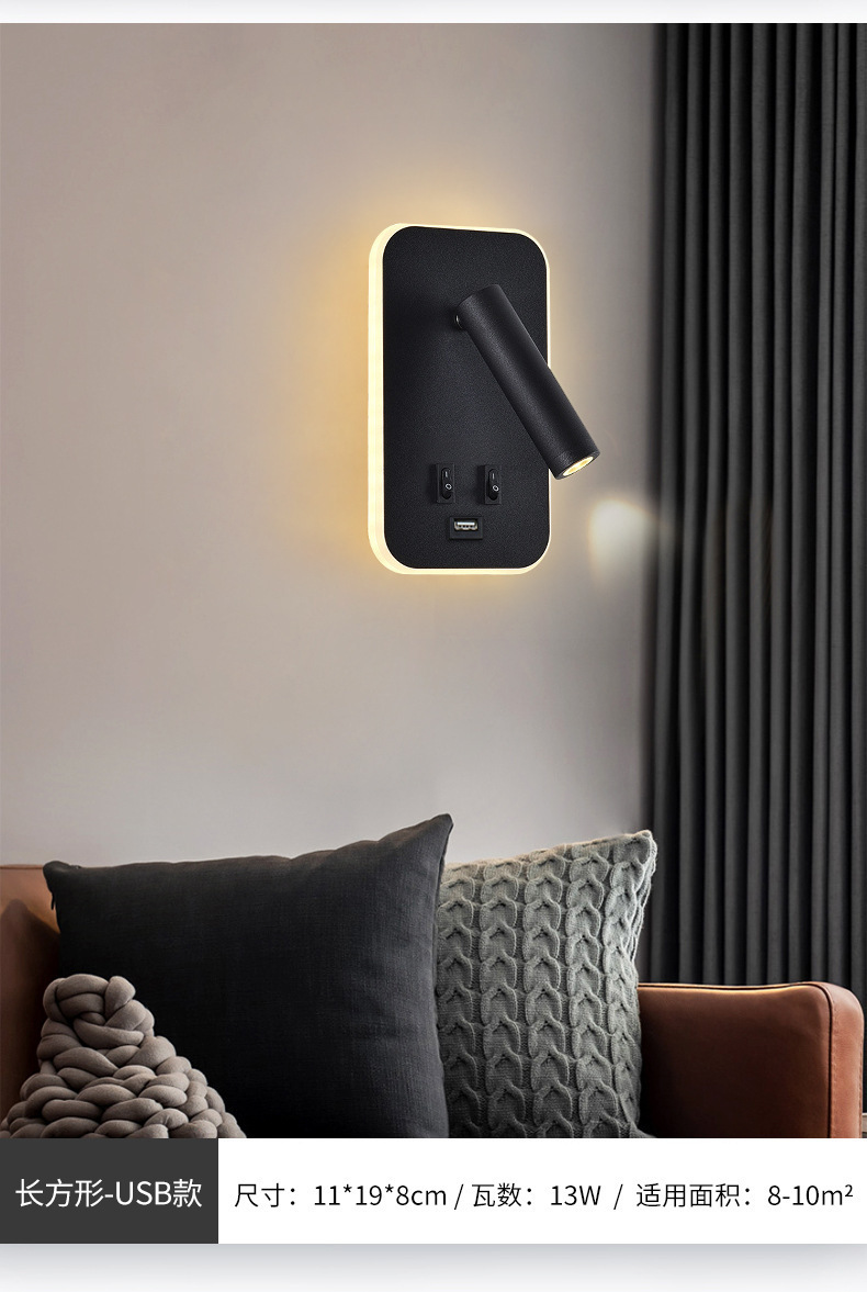 국경 간 북유럽 미니멀리스트 호텔 머리맡 램프 새로운 USB 충전식 머리맡 벽 램프 침실 연구 LED 독서 램프스토어 가기