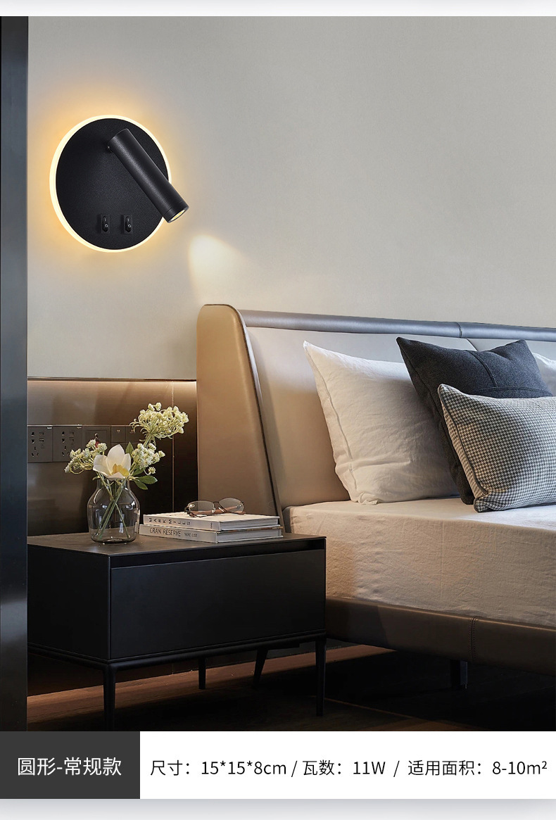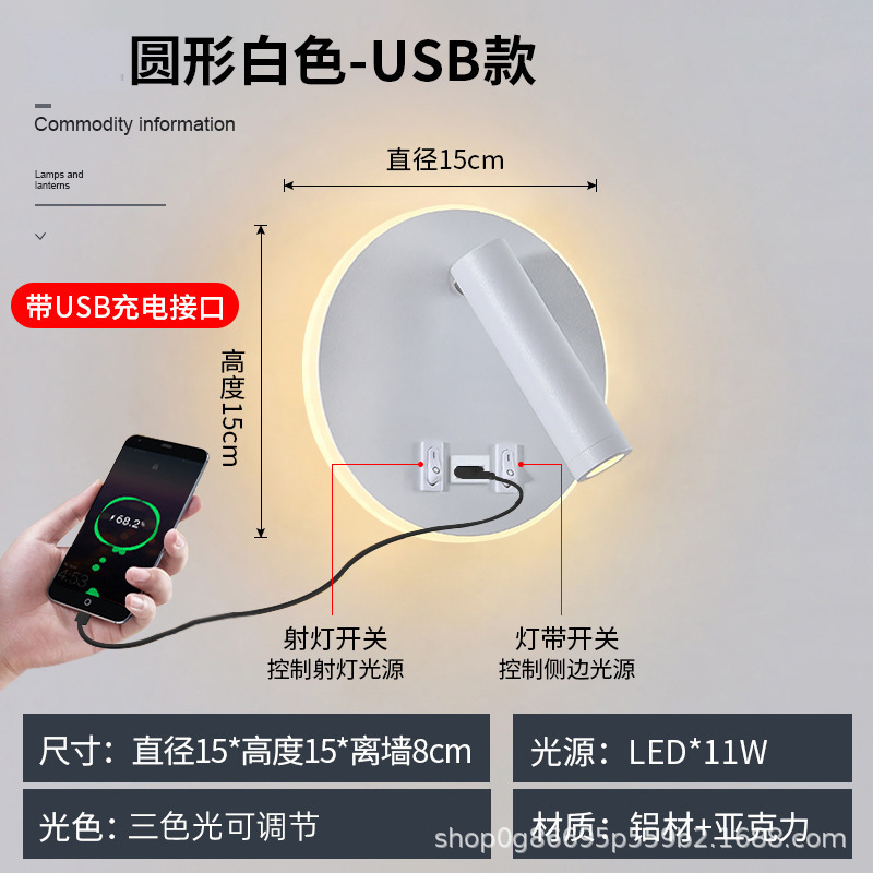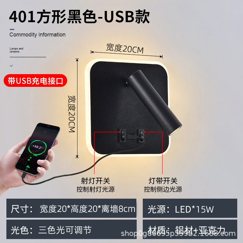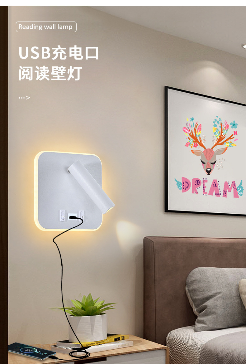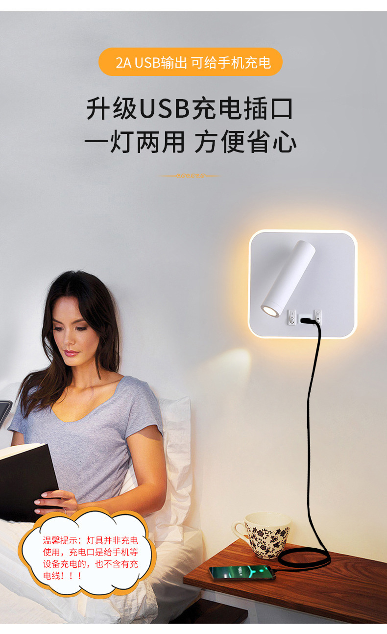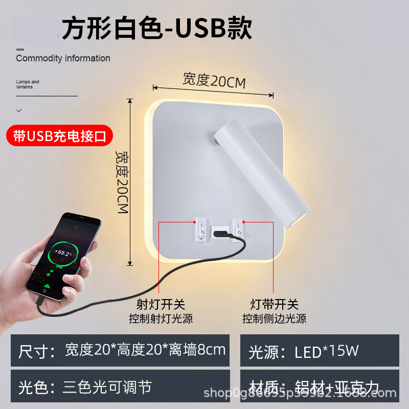 국경 간 북유럽 미니멀리스트 호텔 머리맡 램프 새로운 USB 충전식 머리맡 벽 램프 침실 연구 LED 독서 램프스토어 가기