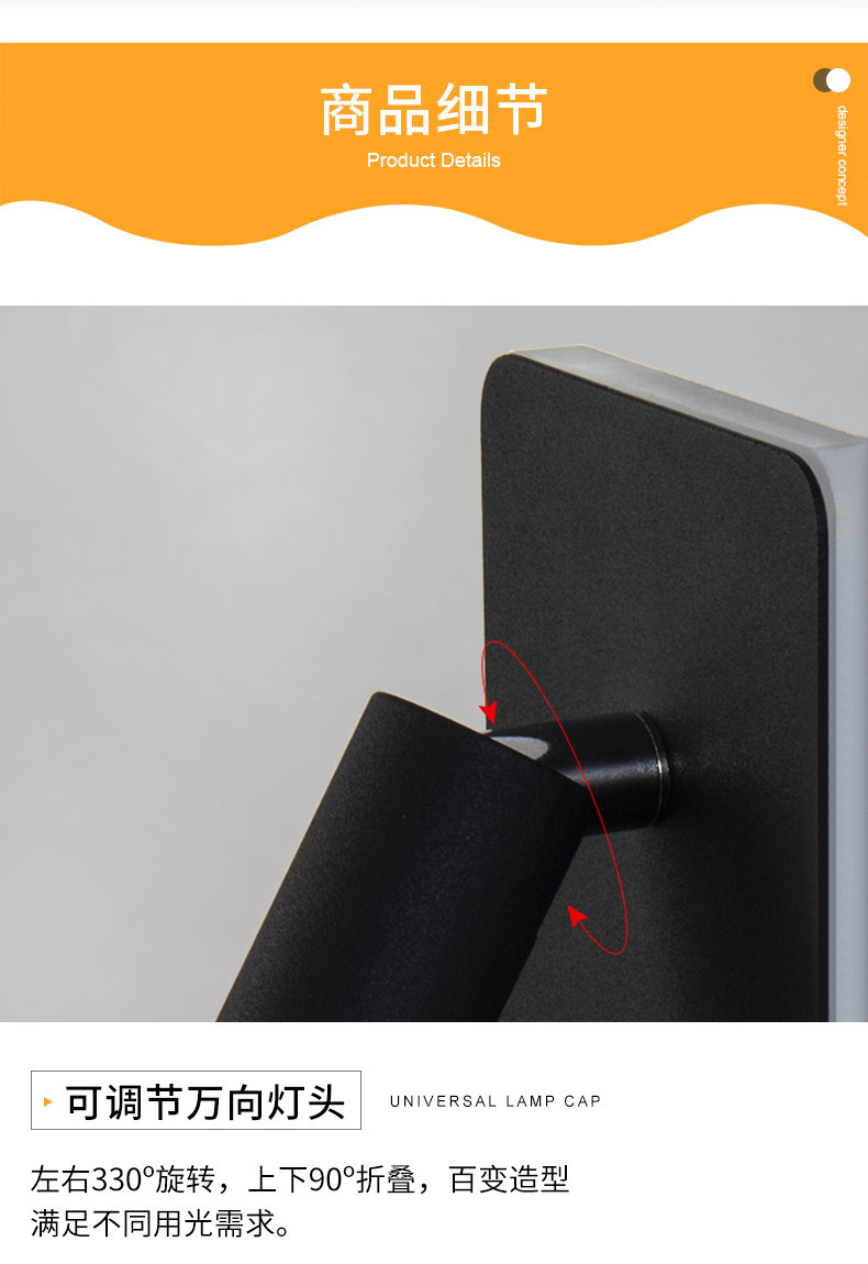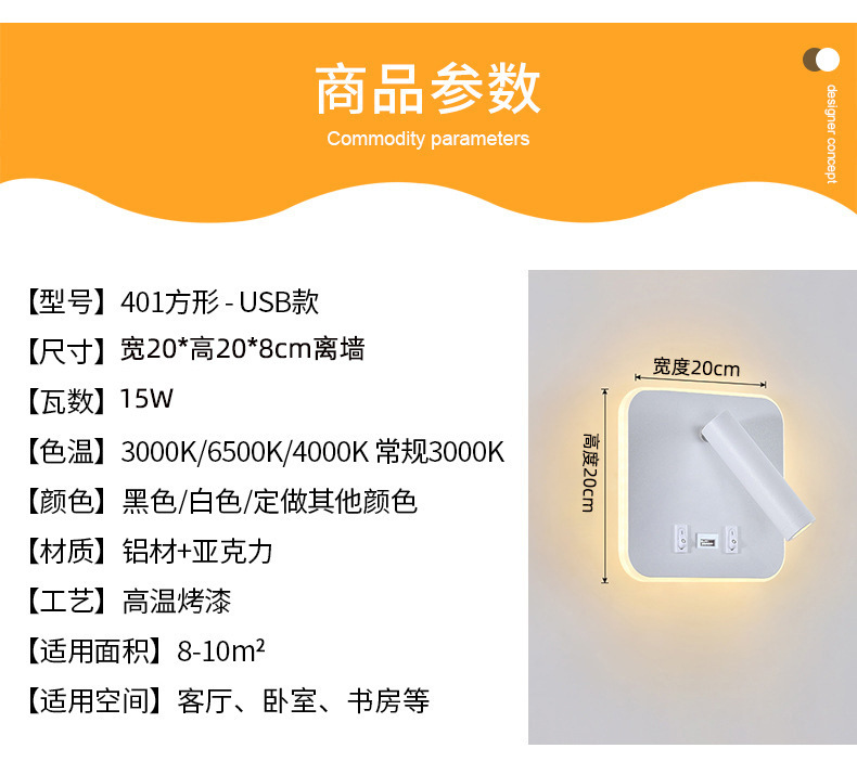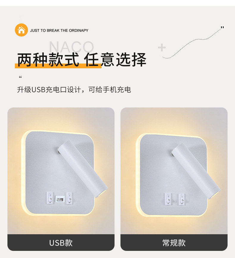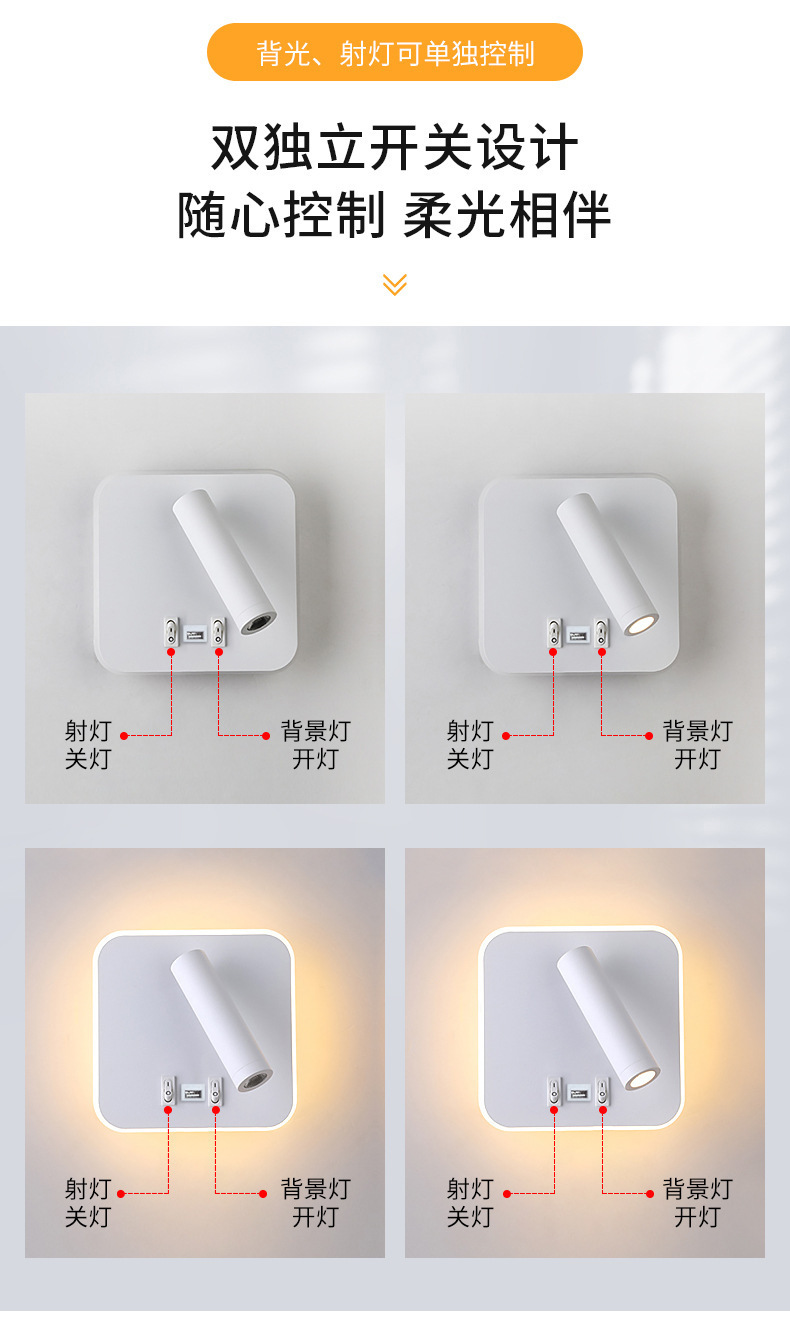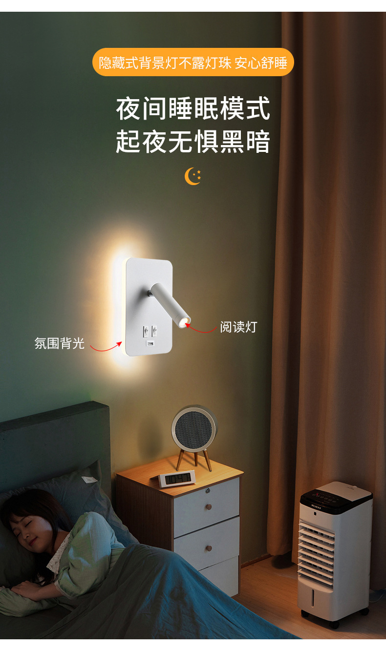 국경 간 북유럽 미니멀리스트 호텔 머리맡 램프 새로운 USB 충전식 머리맡 벽 램프 침실 연구 LED 독서 램프스토어 가기