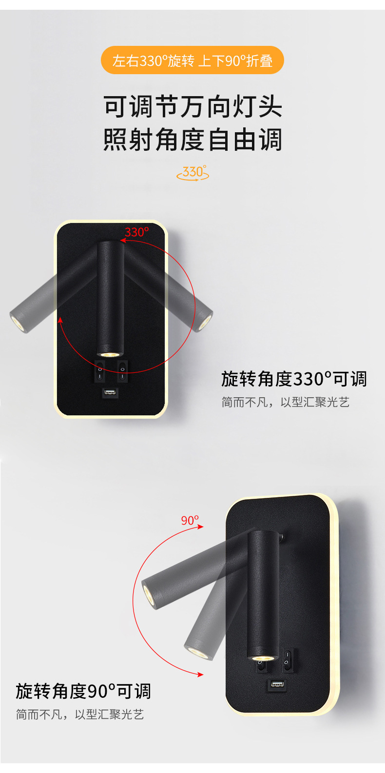 국경 간 북유럽 미니멀리스트 호텔 머리맡 램프 새로운 USB 충전식 머리맡 벽 램프 침실 연구 LED 독서 램프