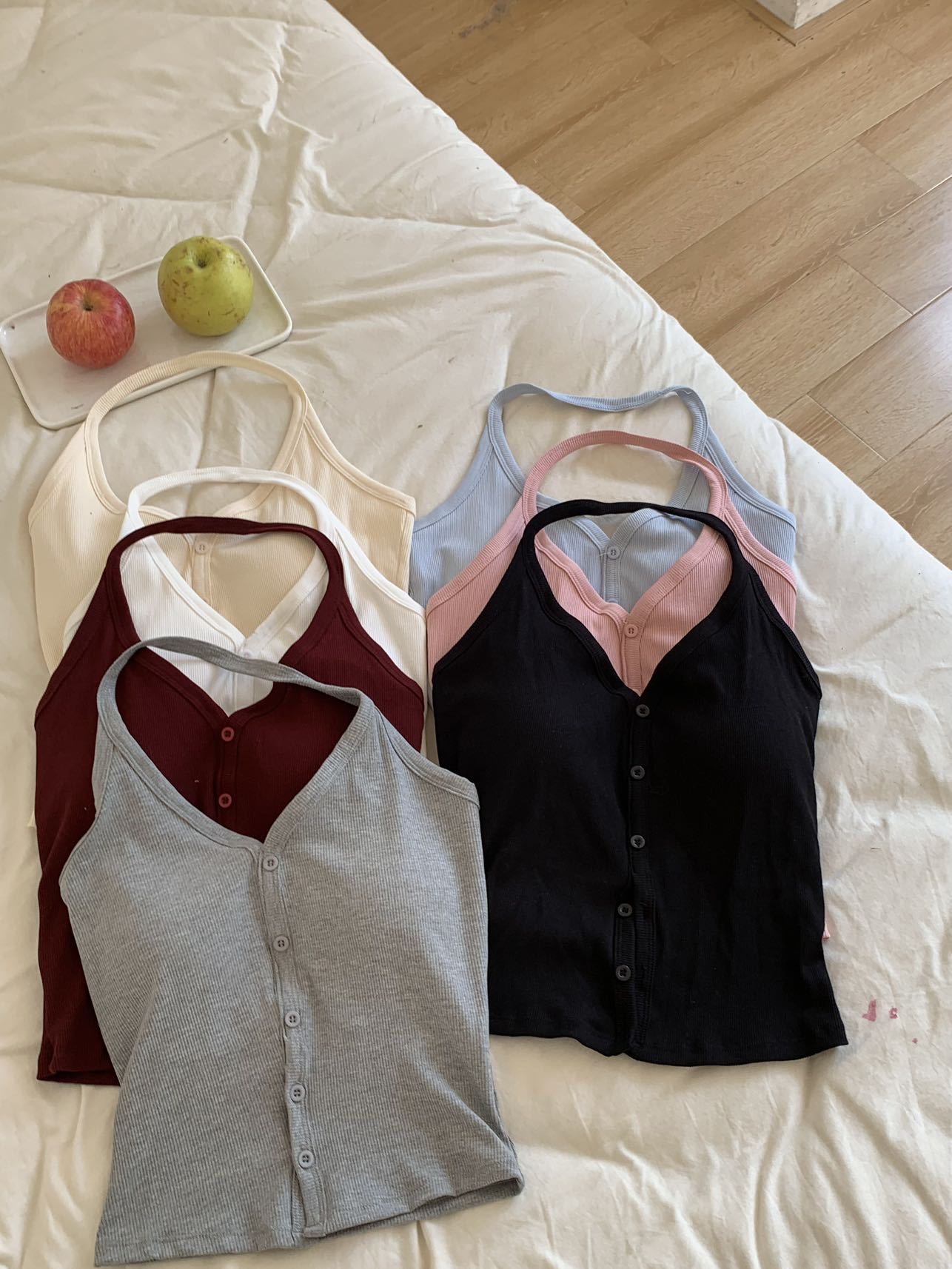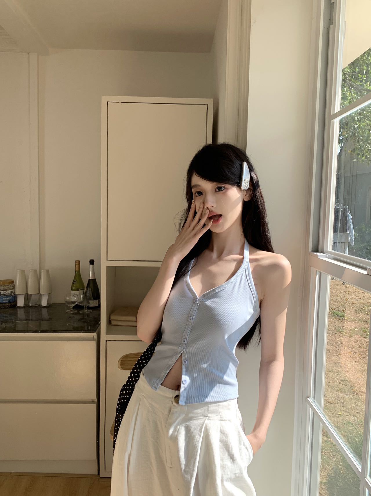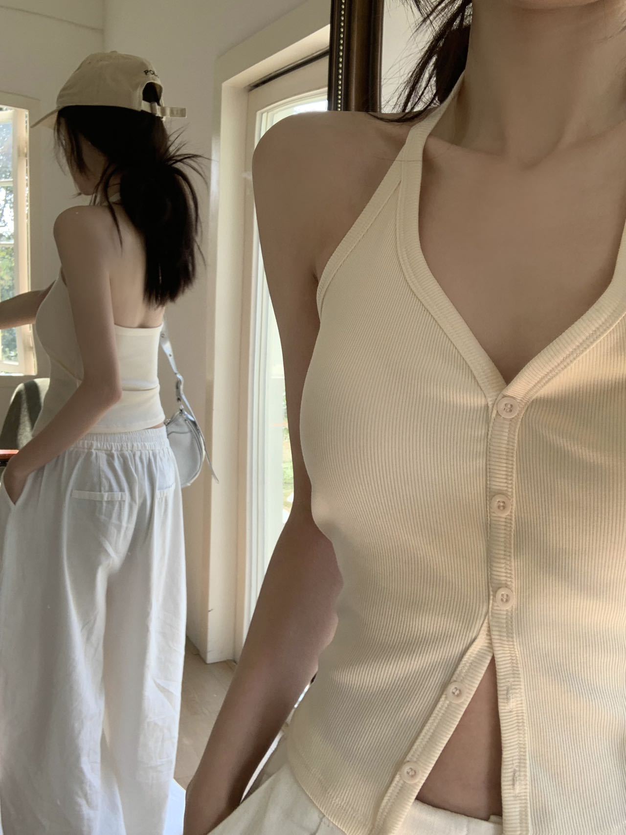디자인 홀터넥 브이넥 싱글 브레스트 가슴 패드 탑, 다용도 민소매 여름 핫걸 슬림 아우터 백리스 슬링스토어 가기