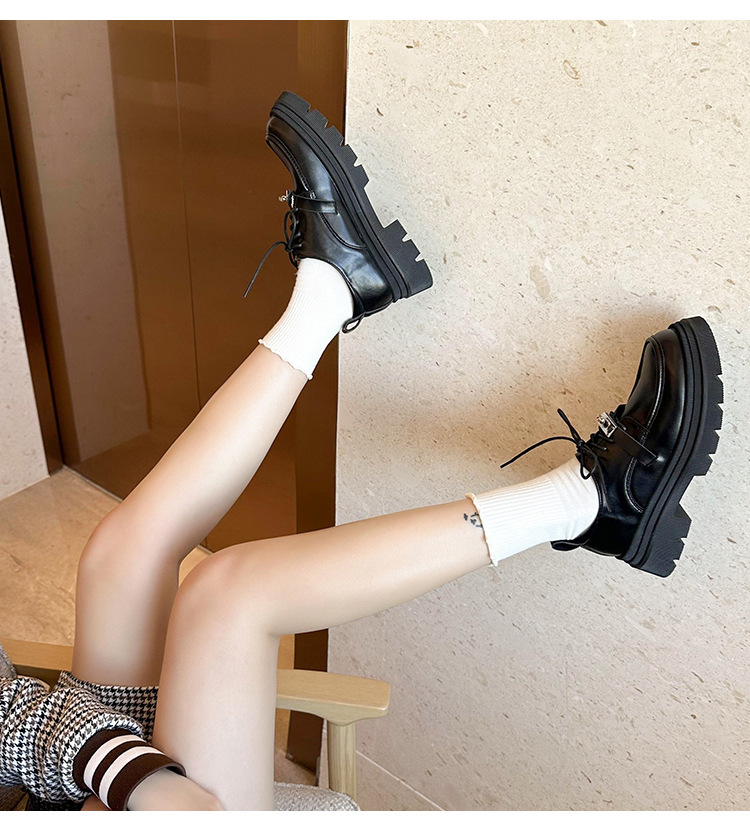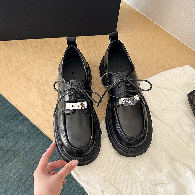 고층 금속 실버 잠금 영국 스타일 레이스 업 신발 두꺼운 힐링 플랫폼 금속 버클 가죽 신발 여성용스토어 가기