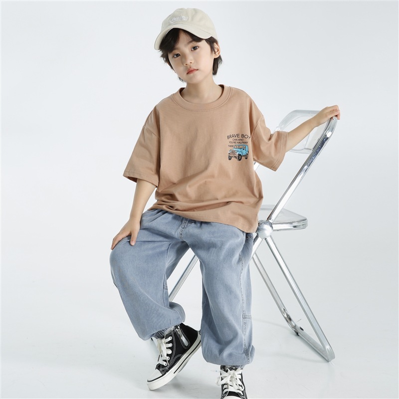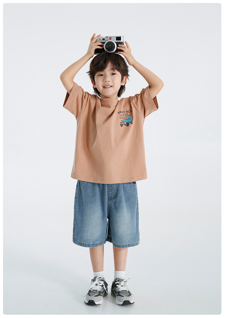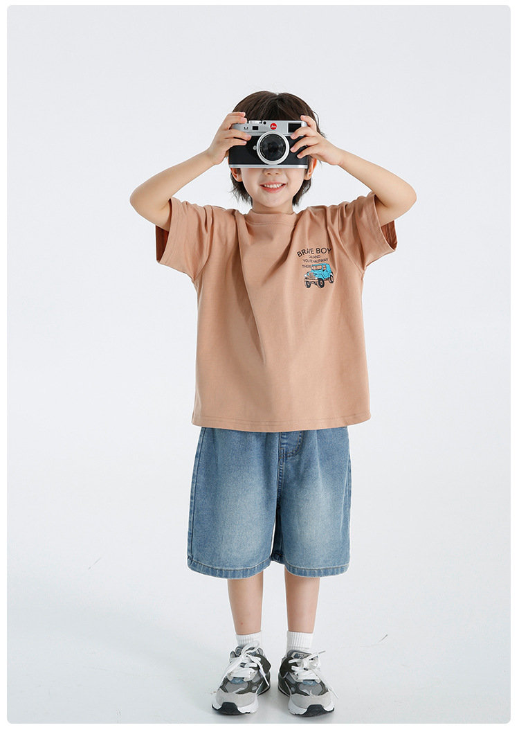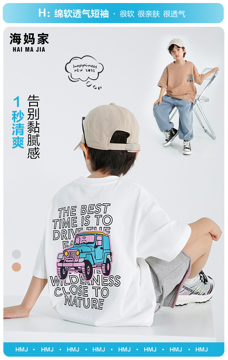 하이마 2025 년 여름 새 소년면 인쇄 반팔 티셔츠… 중대형 어린이를위한 한국 아동복 얇게