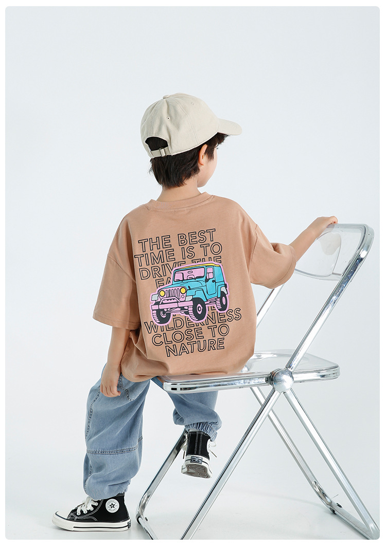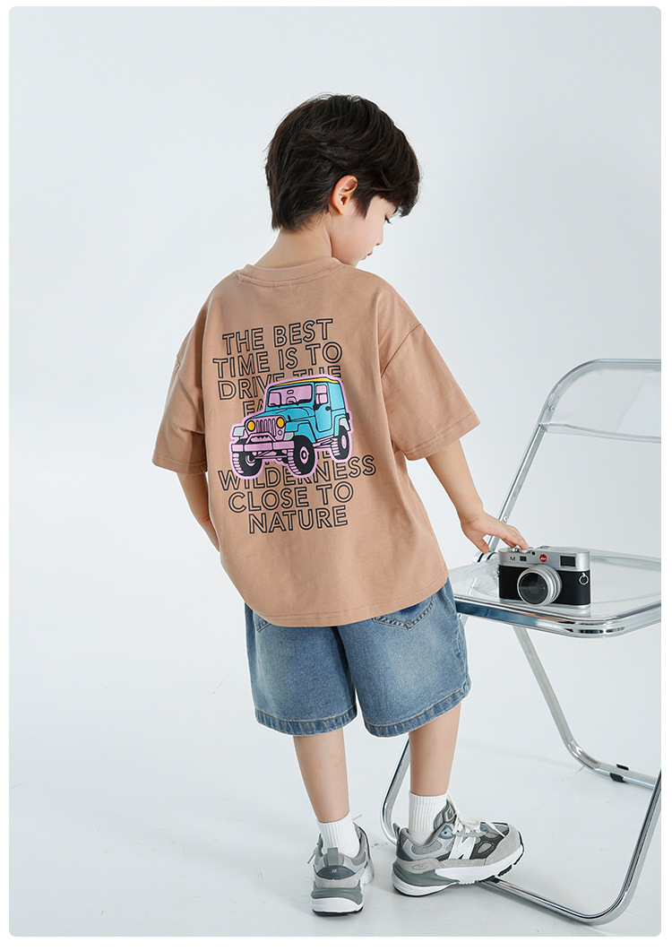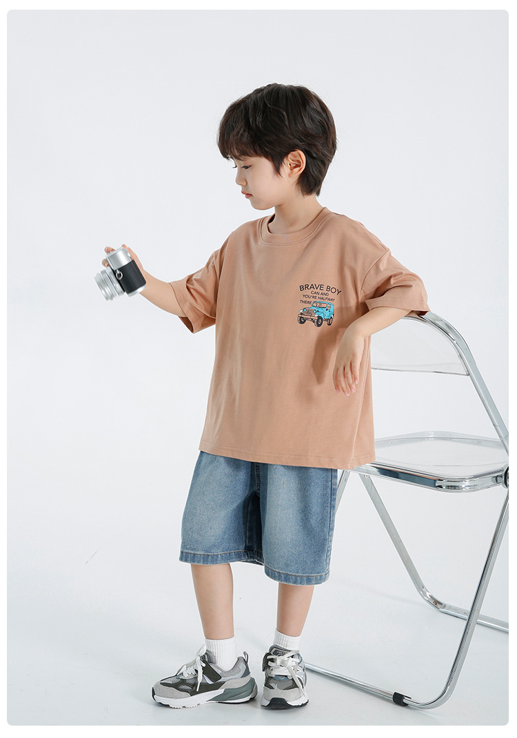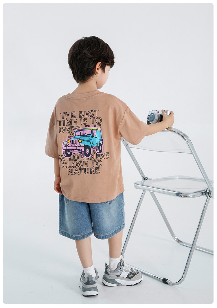 하이마 2025 년 여름 새 소년면 인쇄 반팔 티셔츠… 중대형 어린이를위한 한국 아동복 얇게