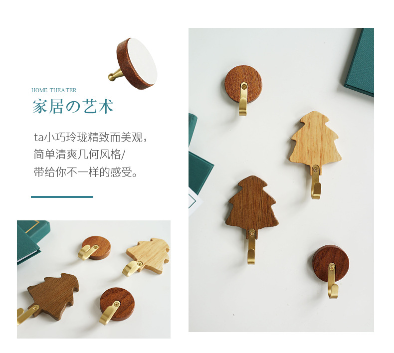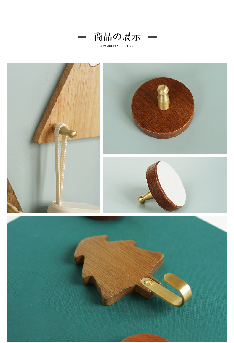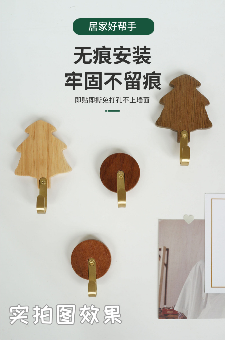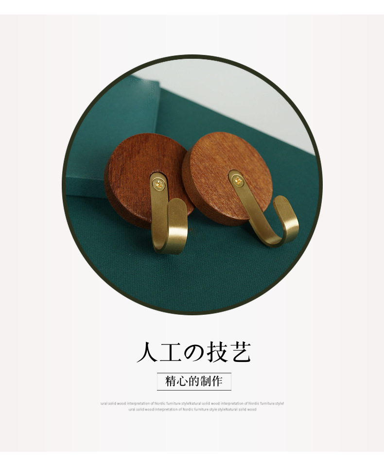 원목 후크 강력 접착제 무타공 현관 옷걸이 후크 황동 옷걸이 목공예품