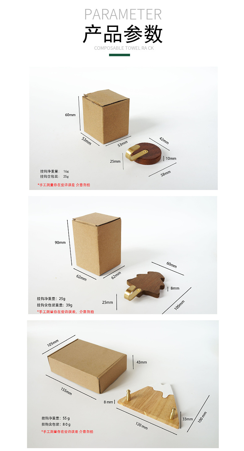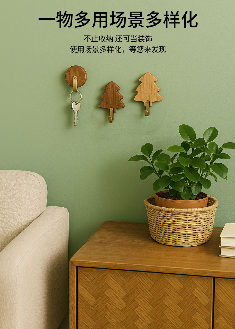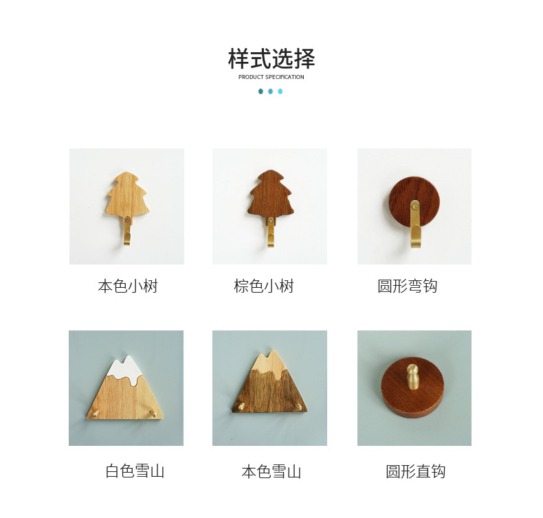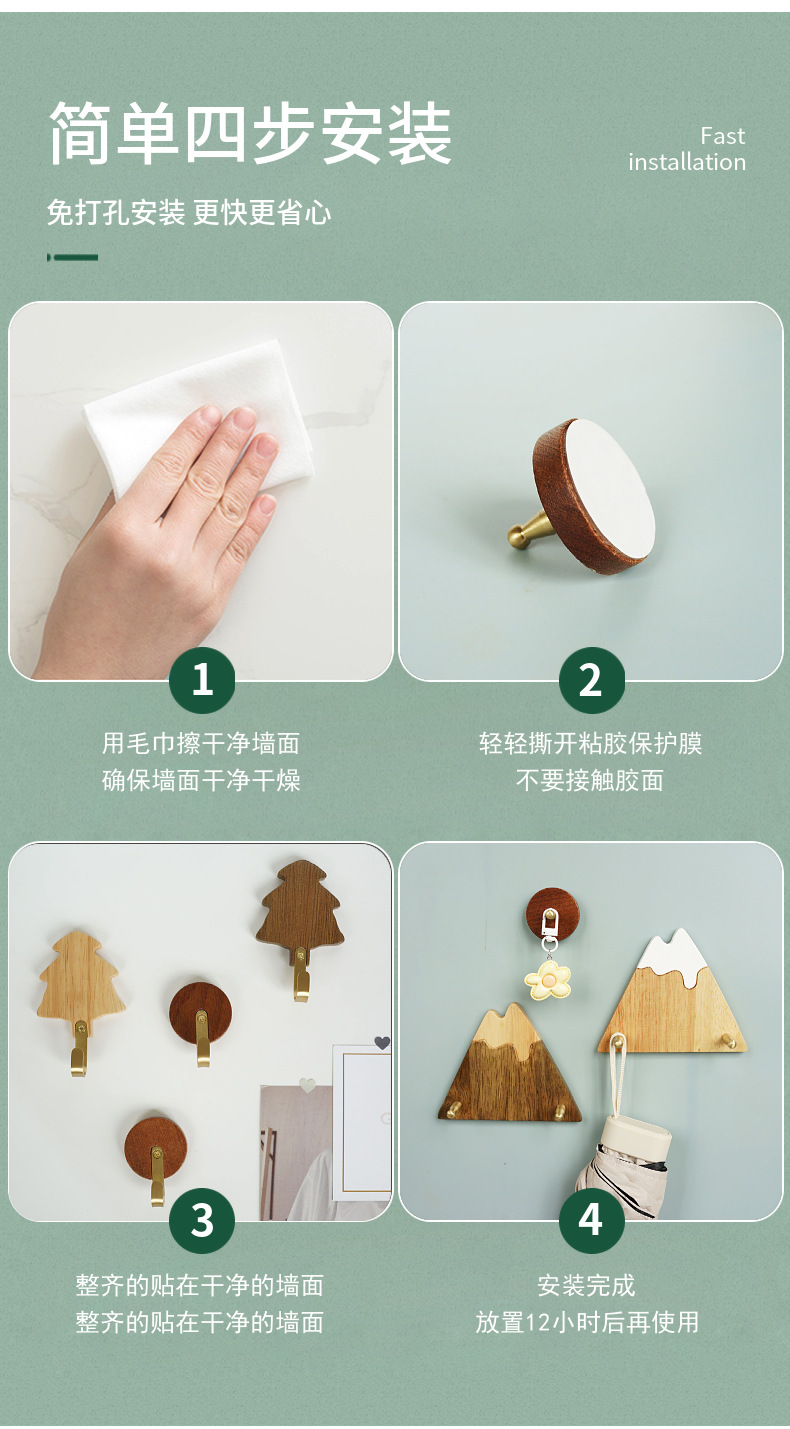 원목 후크 강력 접착제 무타공 현관 옷걸이 후크 황동 옷걸이 목공예품