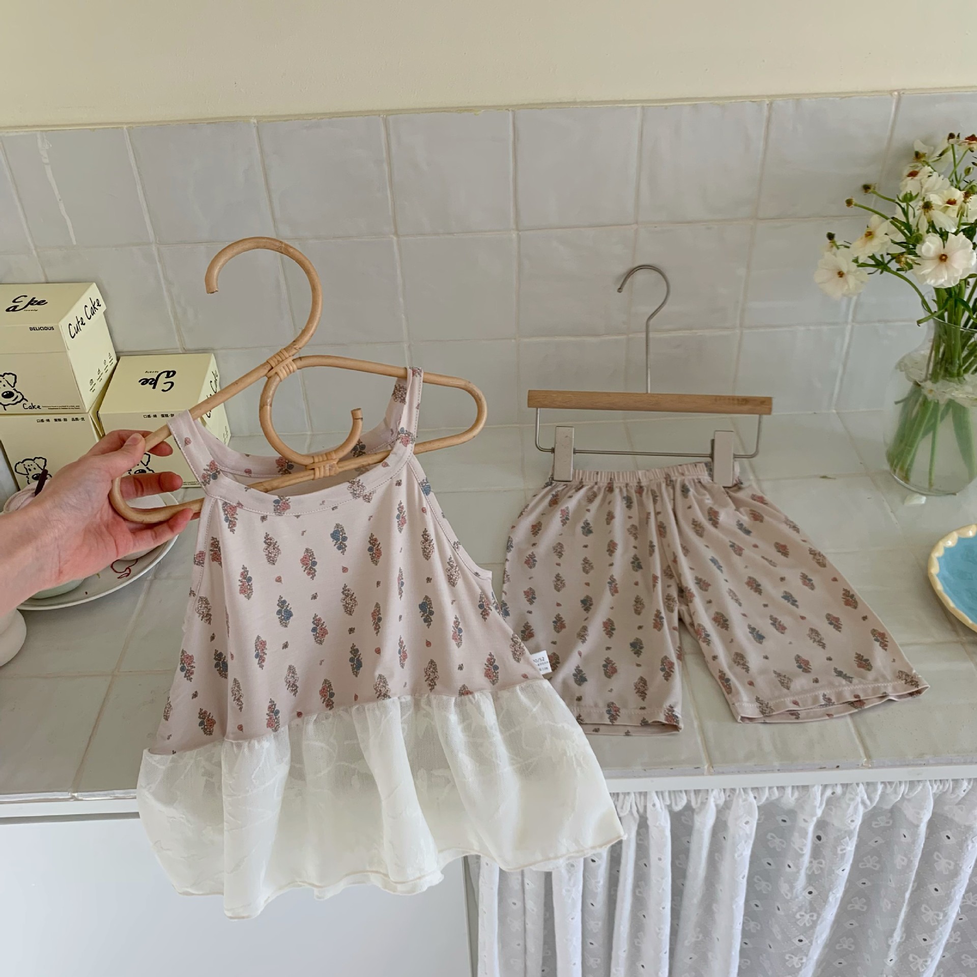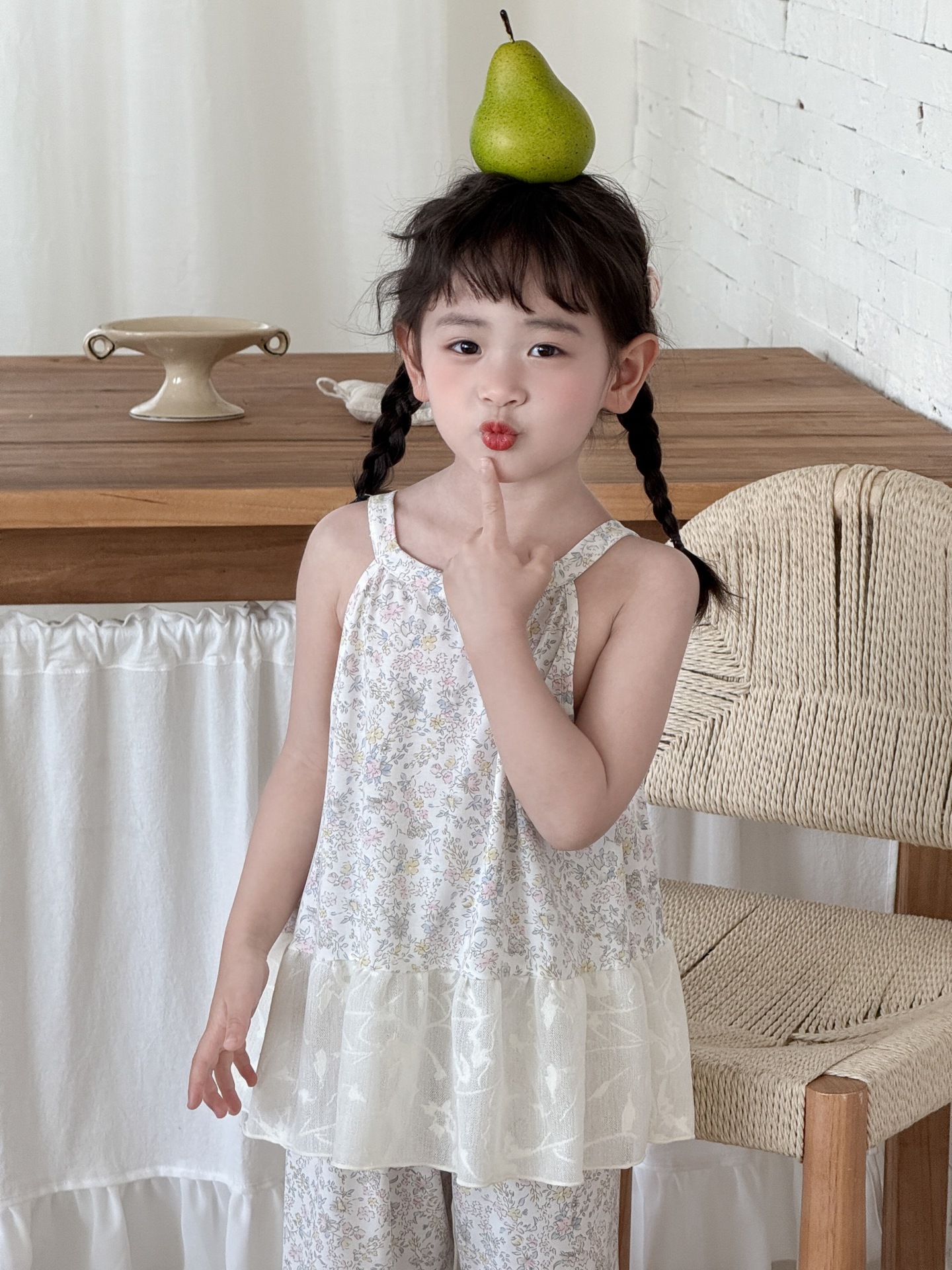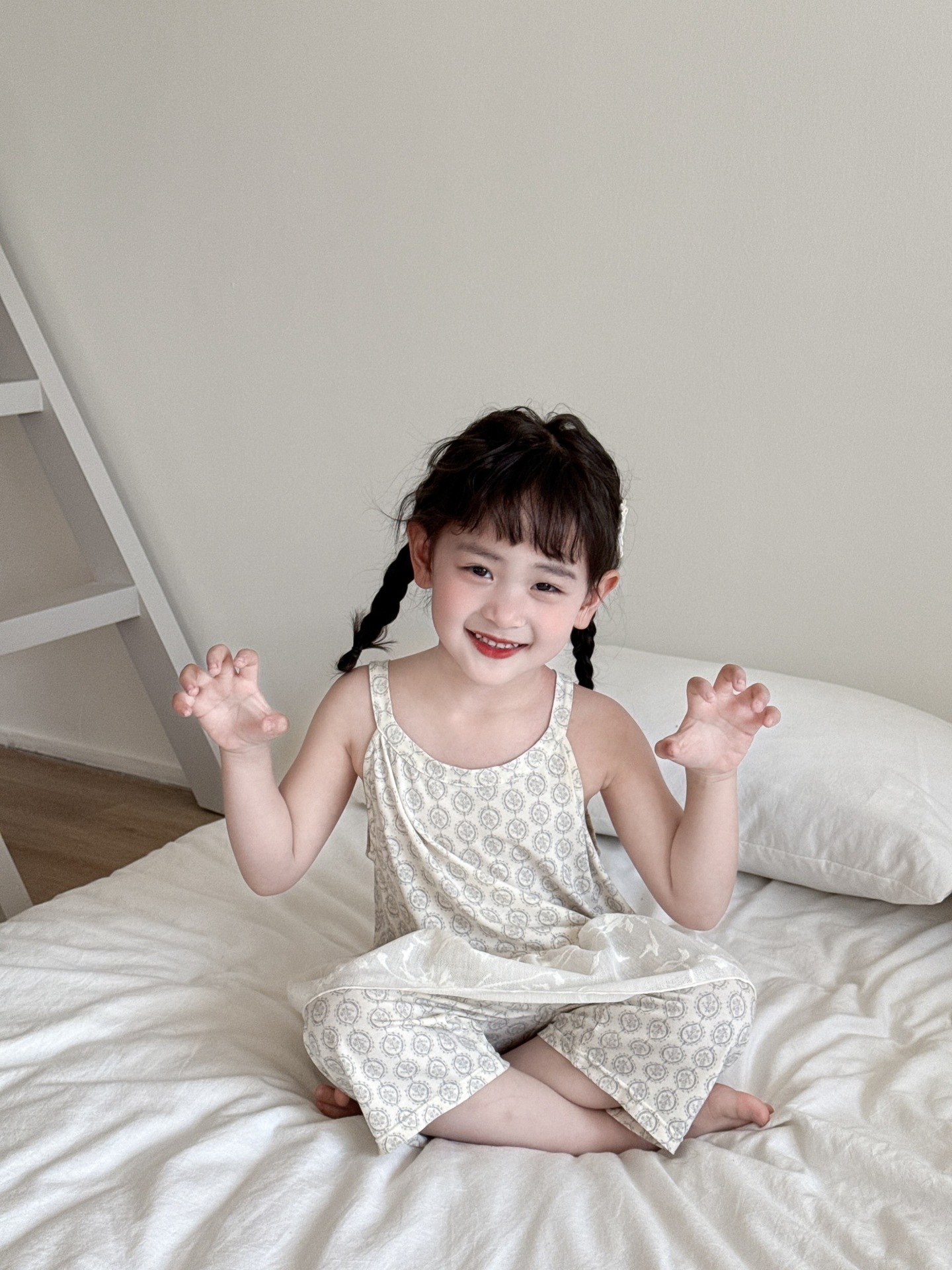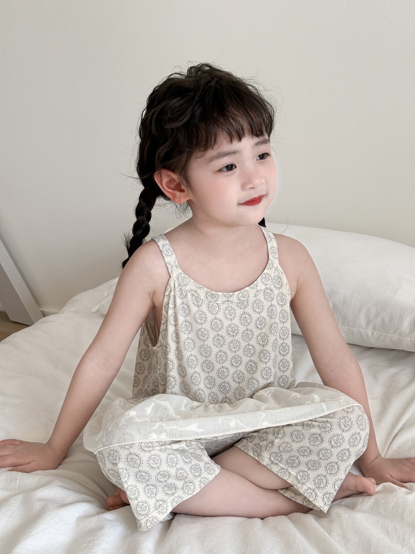 여아용 모달 잠옷, 여름 얇은 멜빵 잠옷, 포레스트 꽃무늬 탑, 와이드 팬츠 세트, 민소매 꽃무늬스토어 가기