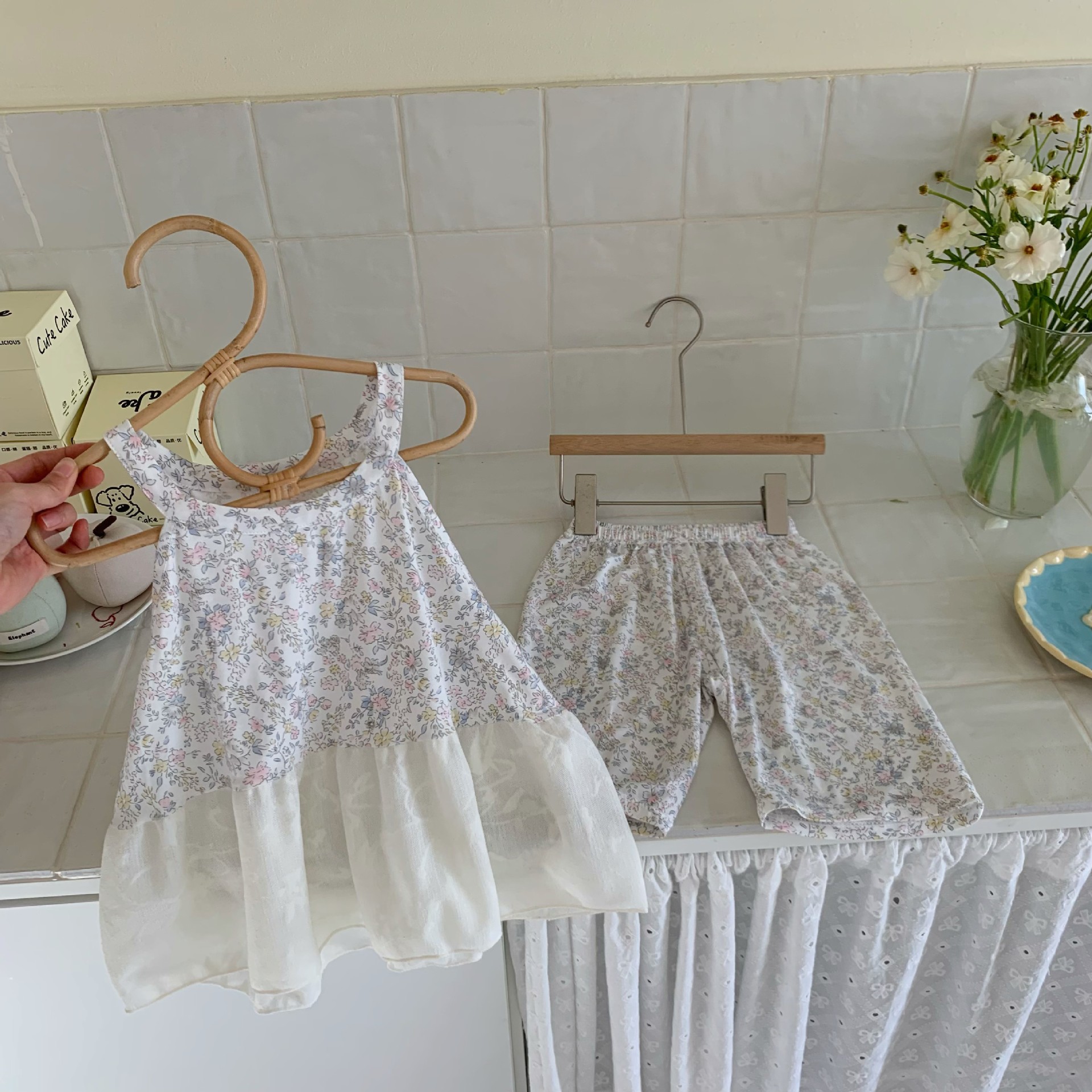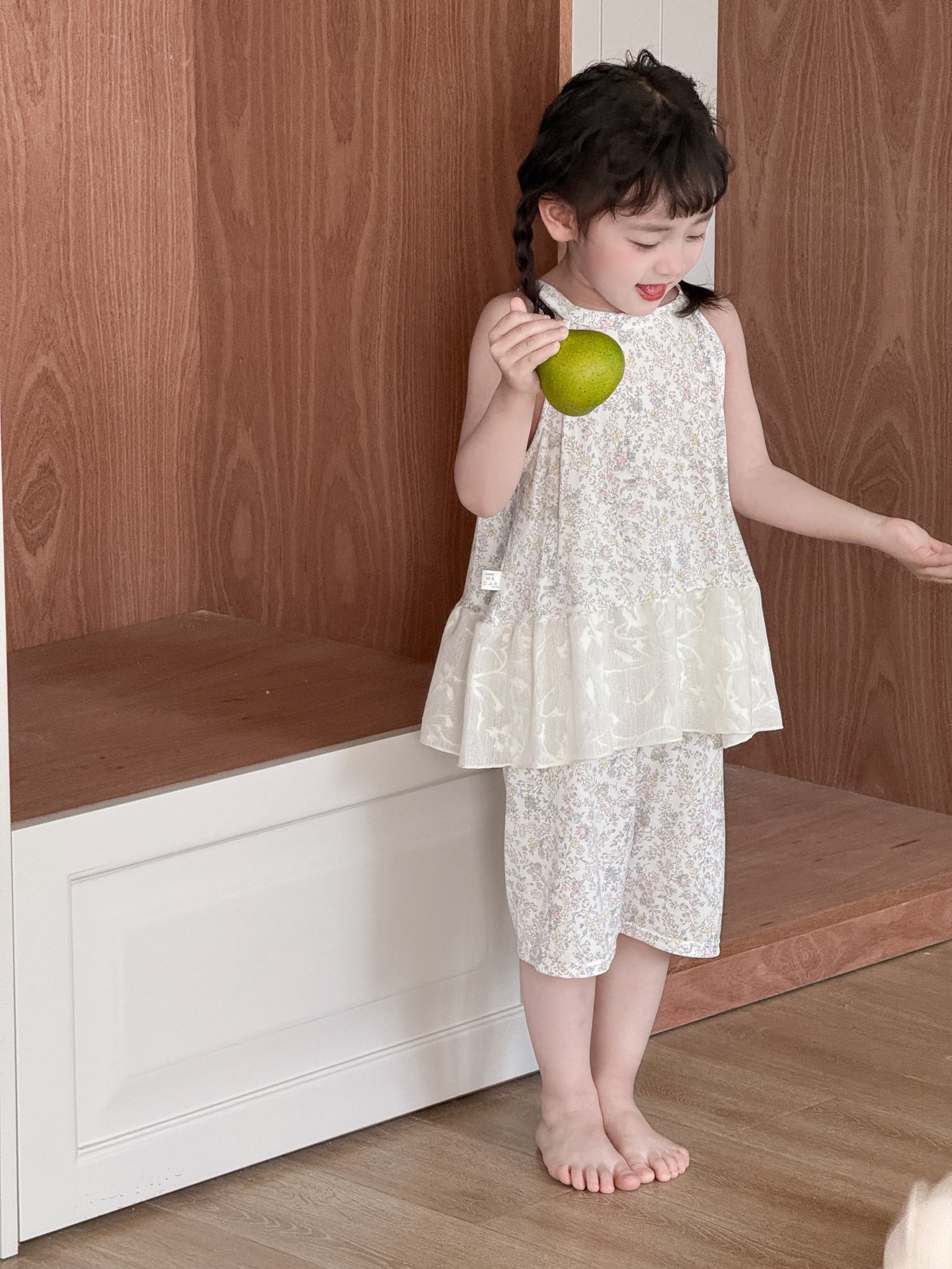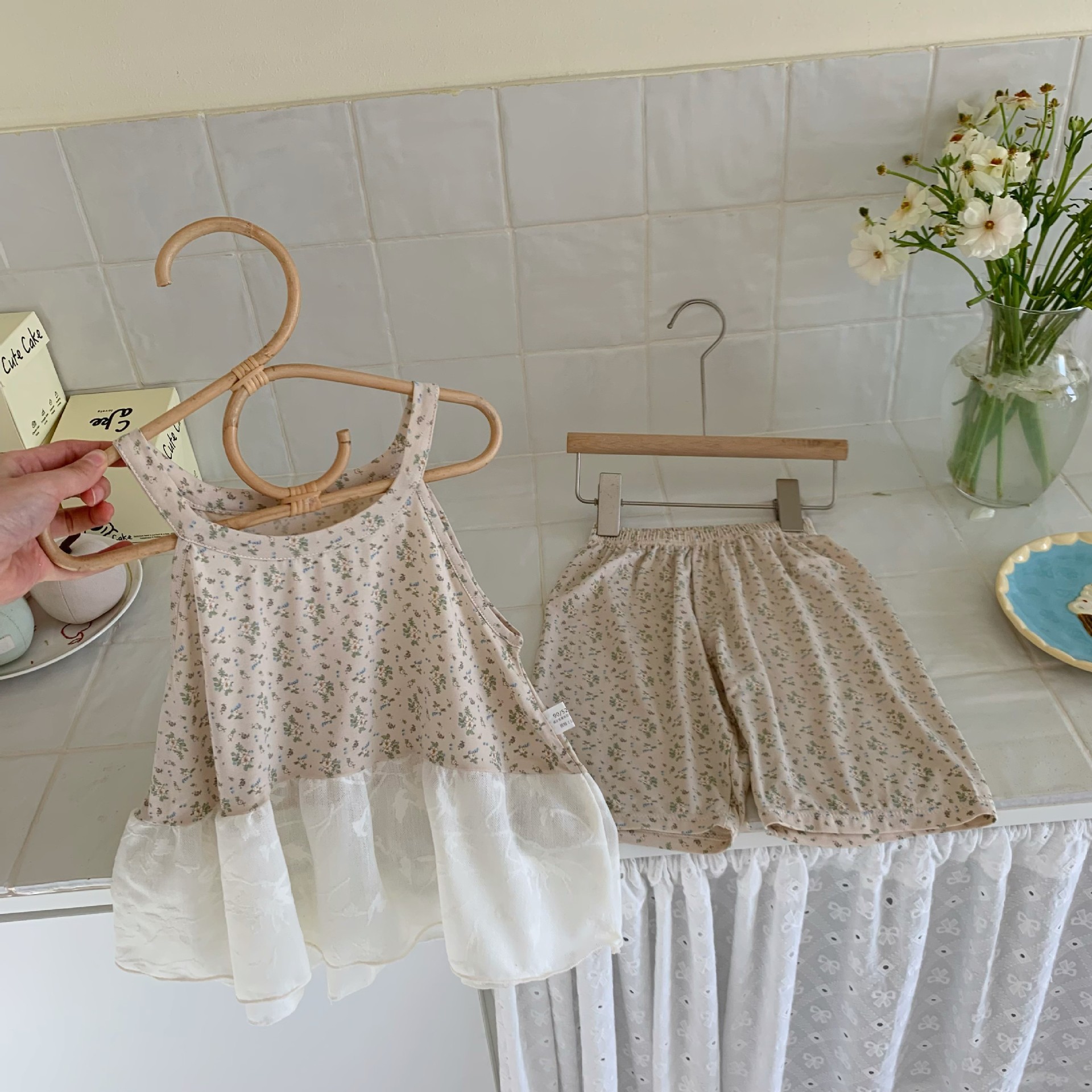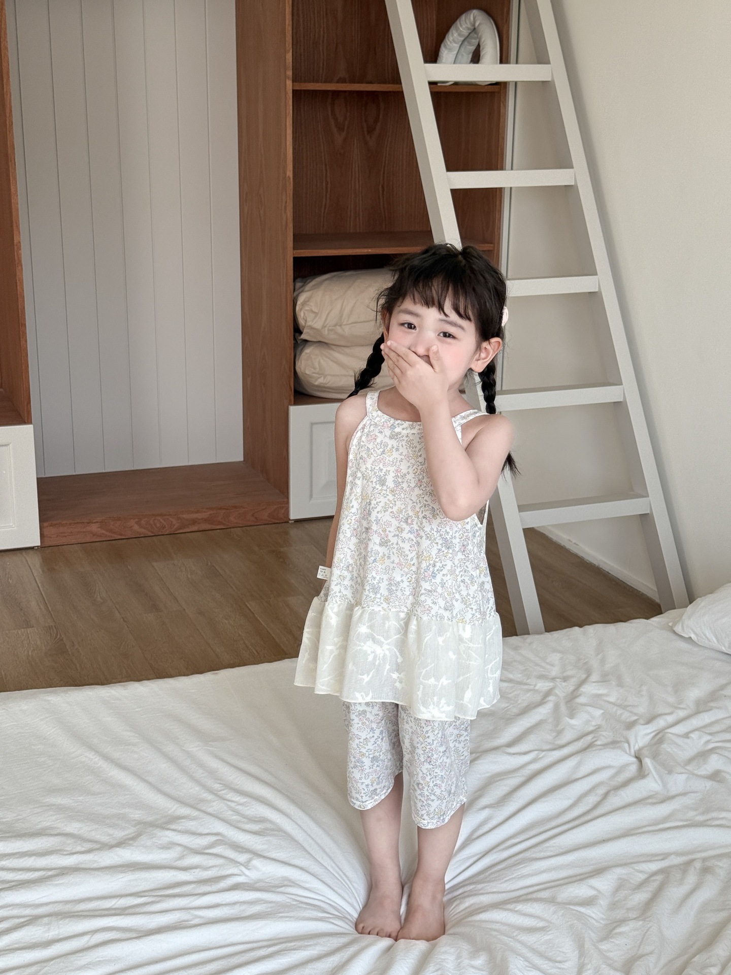 여아용 모달 잠옷, 여름 얇은 멜빵 잠옷, 포레스트 꽃무늬 탑, 와이드 팬츠 세트, 민소매 꽃무늬스토어 가기