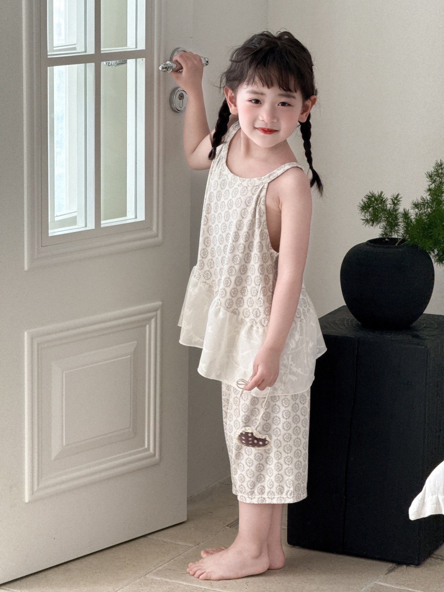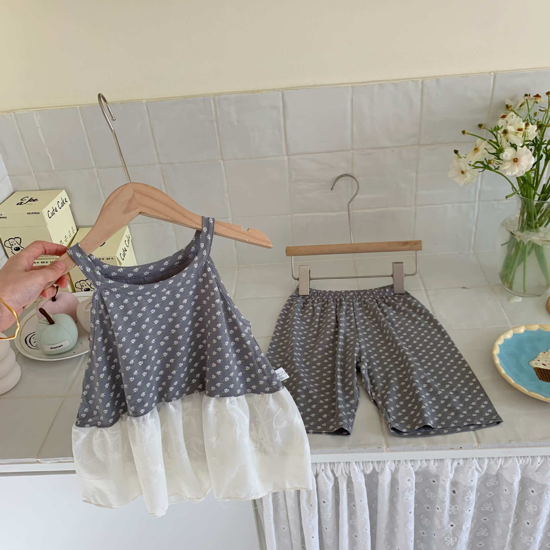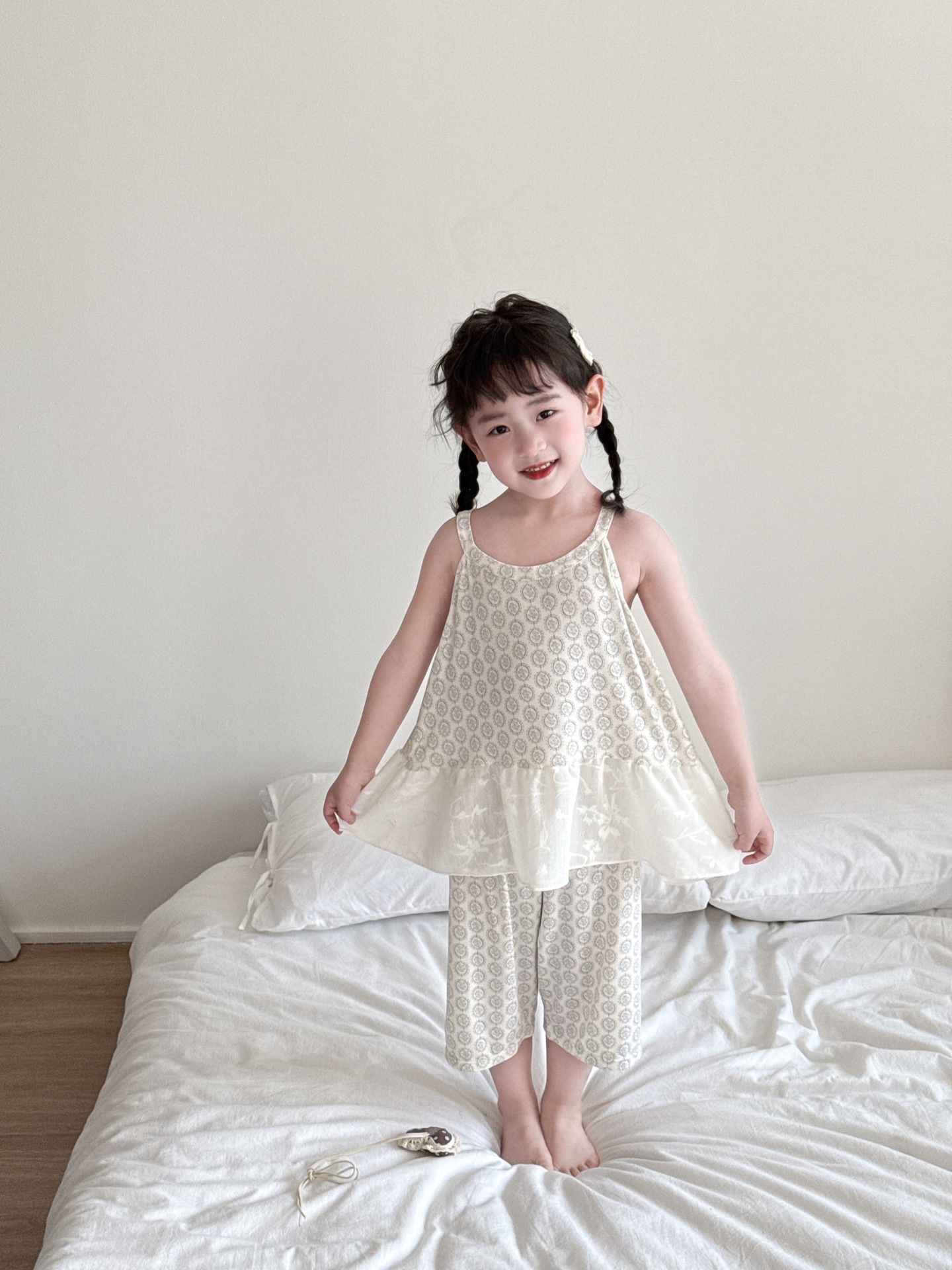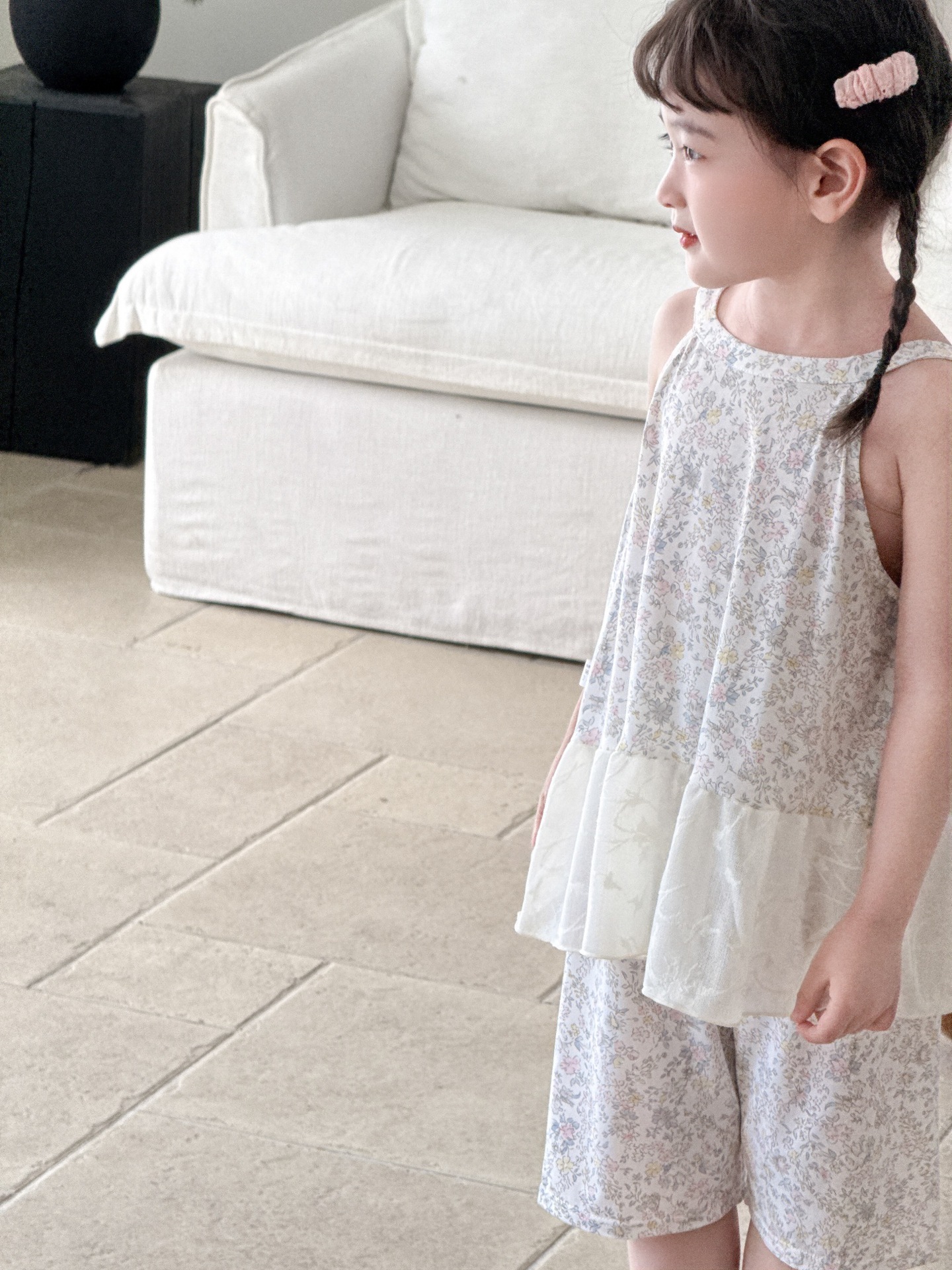 여아용 모달 잠옷, 여름 얇은 멜빵 잠옷, 포레스트 꽃무늬 탑, 와이드 팬츠 세트, 민소매 꽃무늬스토어 가기