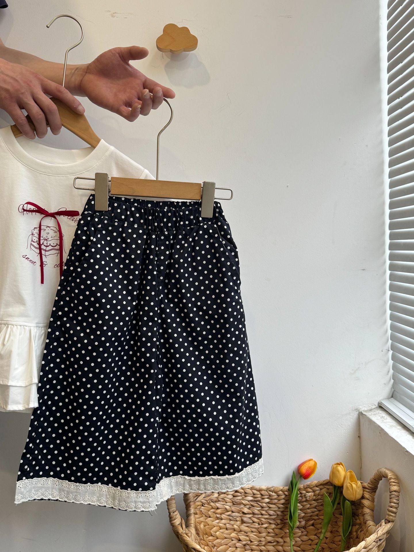 2025秋季中大女童拼接蕾丝花边牛仔裤中裤长裤设计感喇叭裤阔腿裤