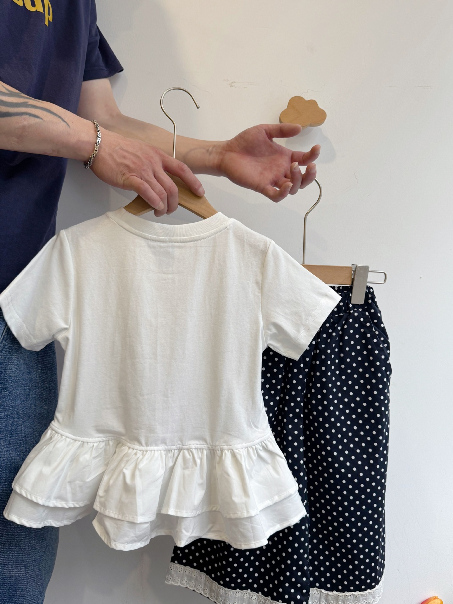 소녀 여름 세트 2025 아기 소녀 달콤한 활 러플 짧은 소매 탑 세트