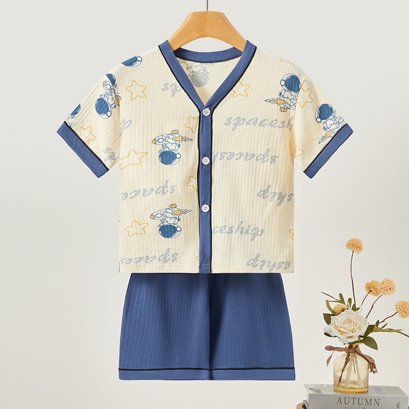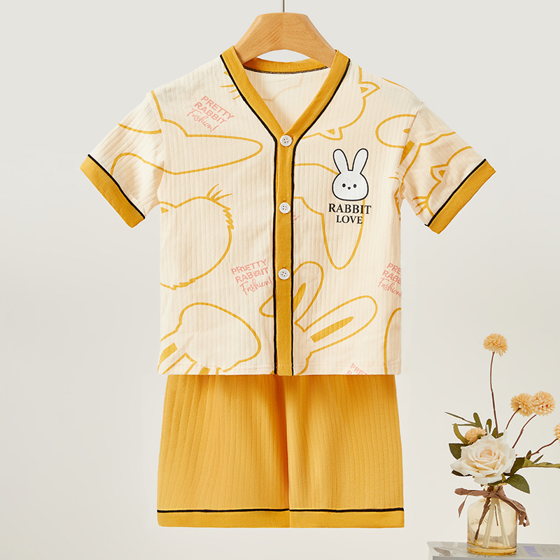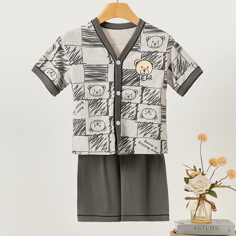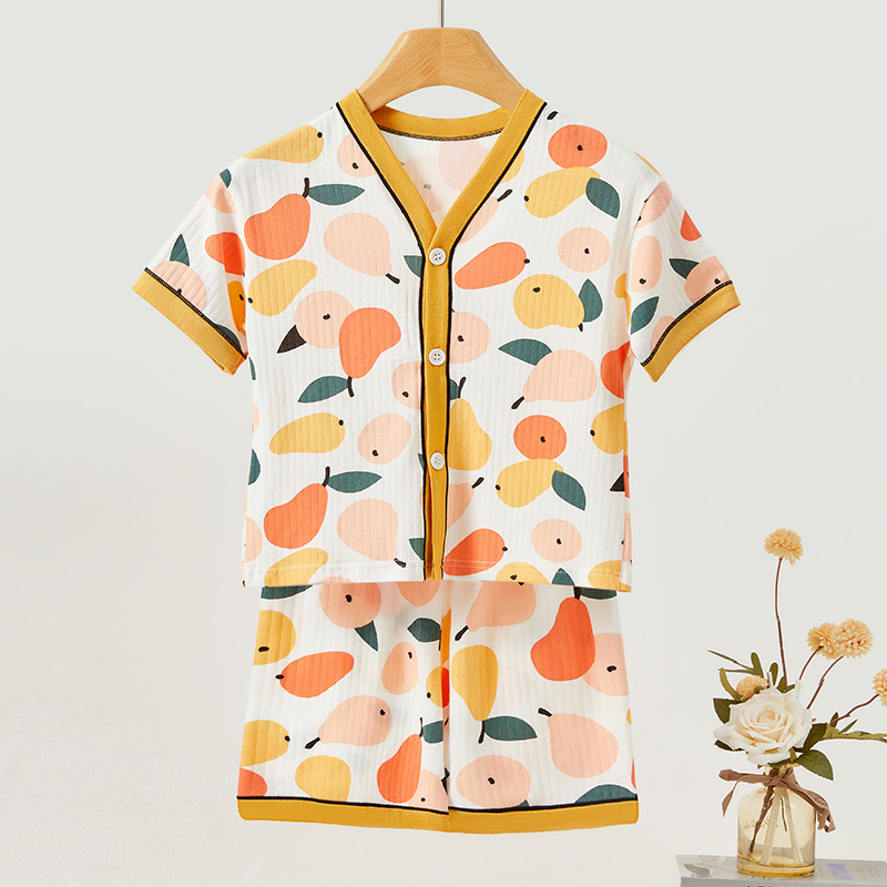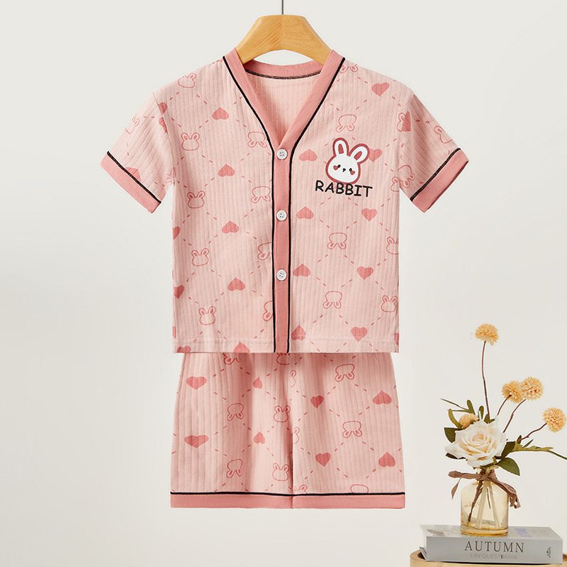 여아 잠옷, 여름 순면 아동복 세트, 부모-자식 의류, 중대형 아동용 가디건, 반팔 남아용 에어컨 의류