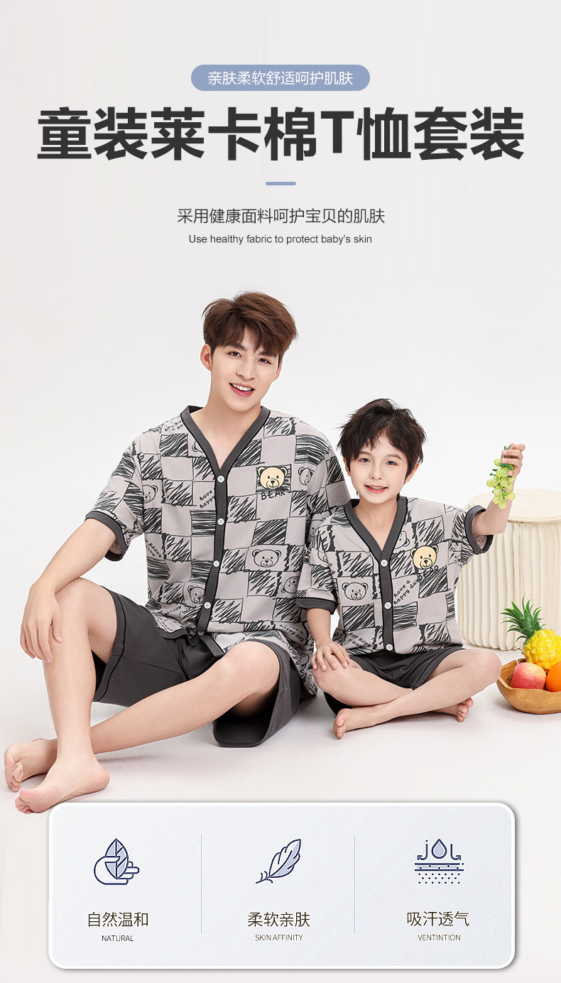 여아 잠옷, 여름 순면 아동복 세트, 부모-자식 의류, 중대형 아동용 가디건, 반팔 남아용 에어컨 의류스토어 가기