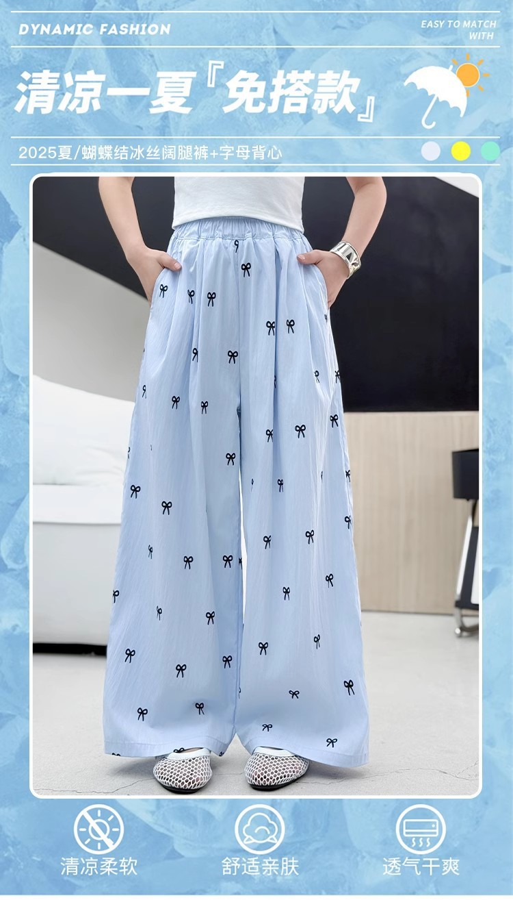 여름 새로운 스타일 2025 아이스 실크 얇은 모기 방지 바지 중대형 어린이 여름 도파민 캐주얼 루즈웨어 트렌드스토어 가기