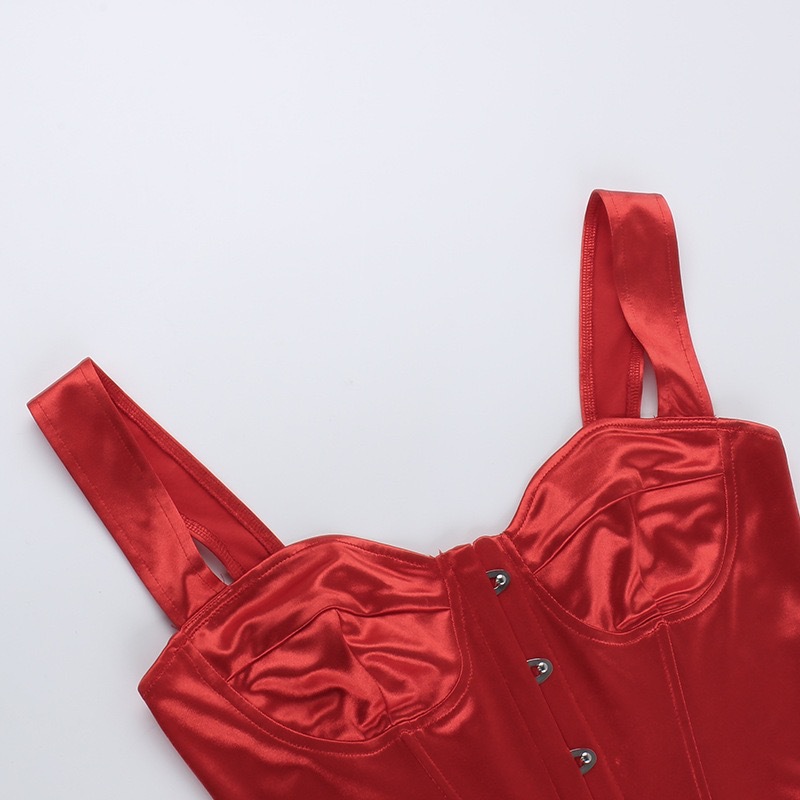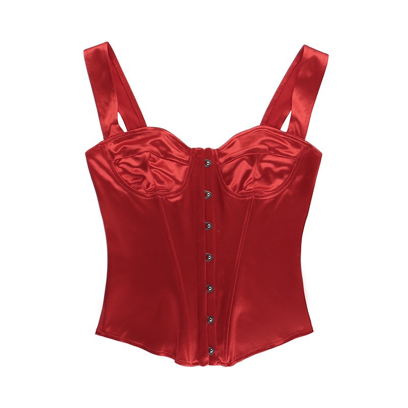 [재고 있음] 새로운 크로스보더 유럽과 미국 의류 새로운 여름 후크 버튼 민소매 슬링 백리스 버클 피쉬본 코르셋스토어 가기