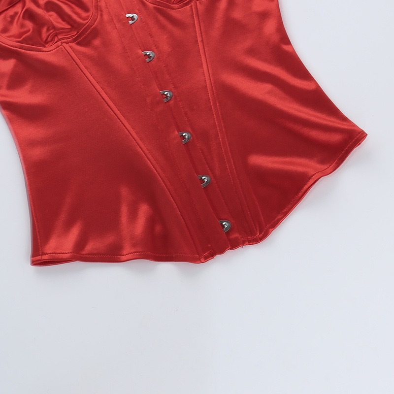 [재고 있음] 새로운 크로스보더 유럽과 미국 의류 새로운 여름 후크 버튼 민소매 슬링 백리스 버클 피쉬본 코르셋